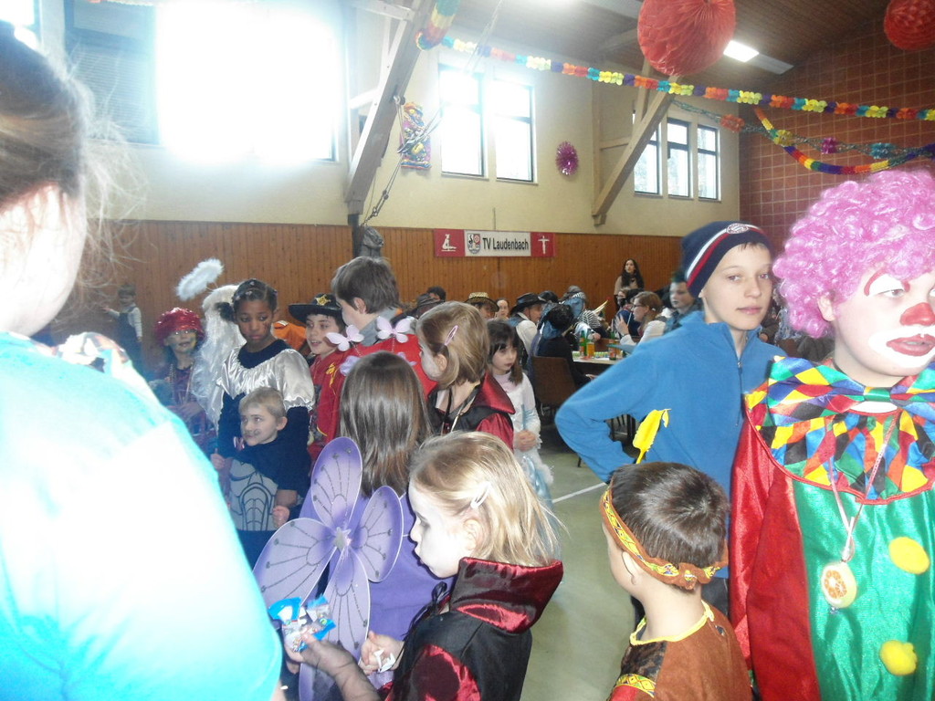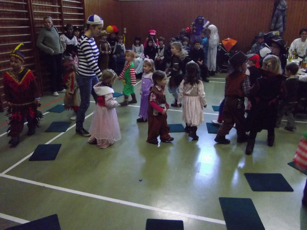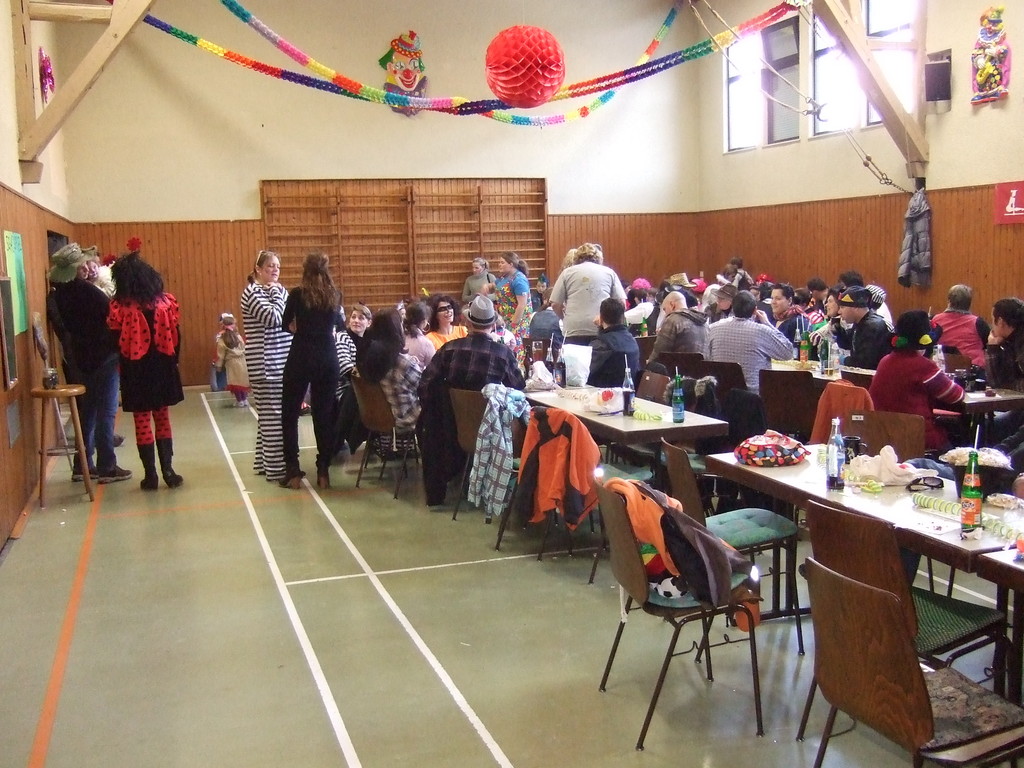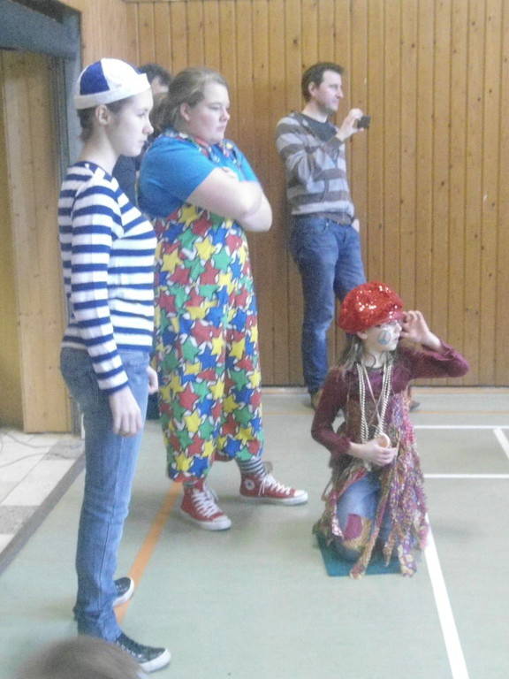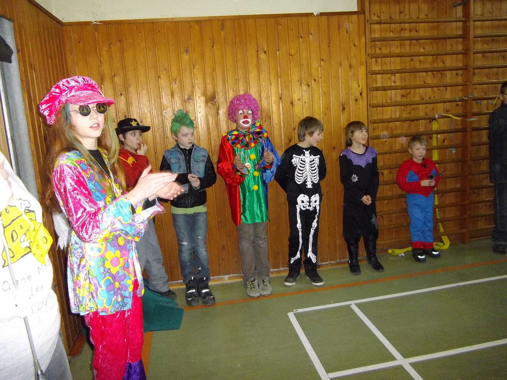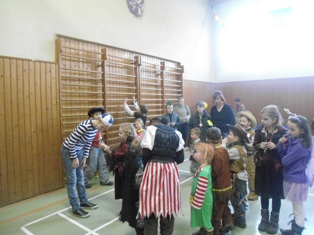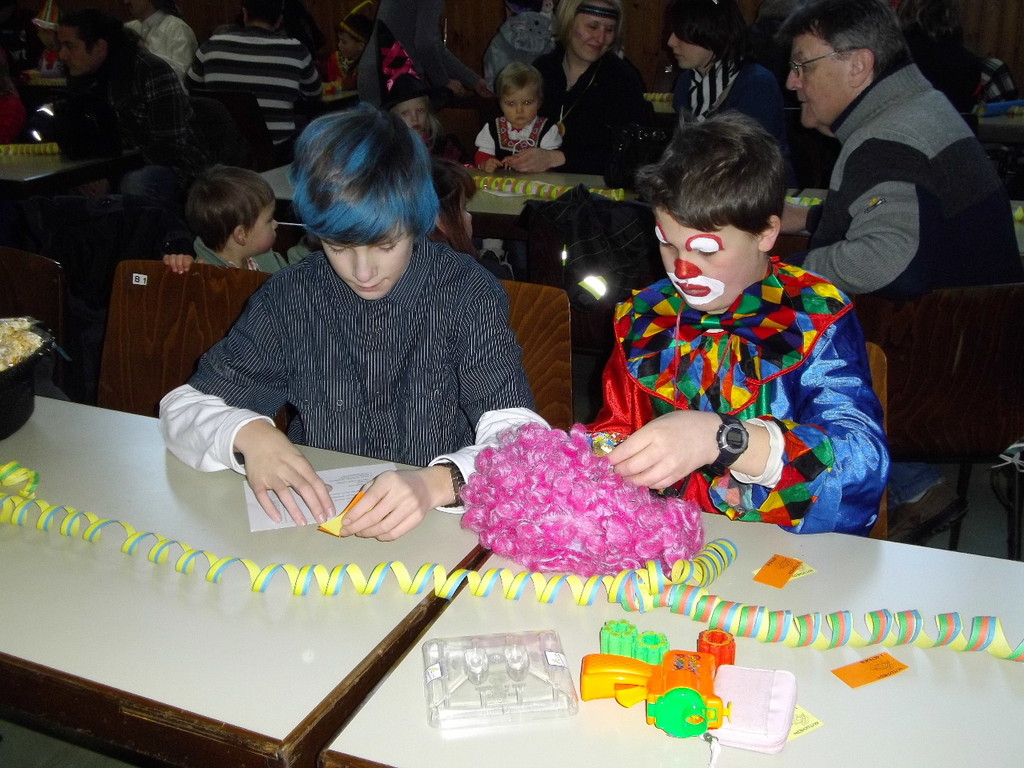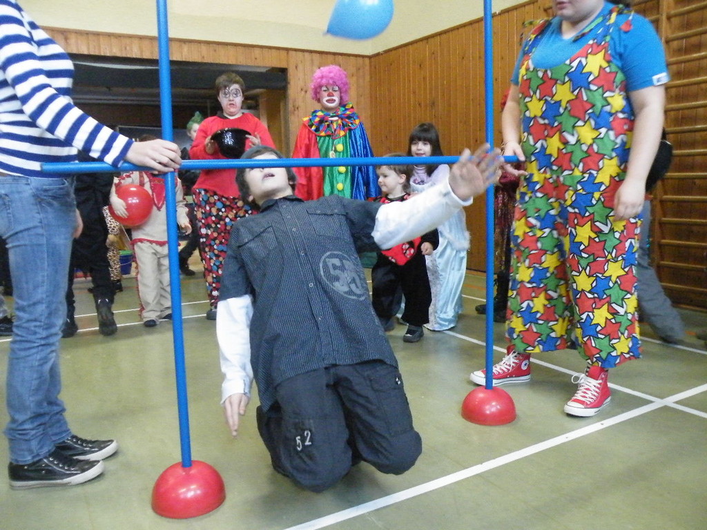Weiter ging es mit Limbo, einem Wurfspiel und Ausmalen von Bildervorlagen. Wie immer musste auch wieder geschätzt werden. Dieses Jahr die Anzahl von Knöpfen in einem Einmachglas. Die Spanne der abgegebenen Tipps war sehr groß und reichte von ca. 50 bis über 200 Stück. Richtig waren dann 161 Knöpfe, die von der 2. Vorsitzenden Beate Picard mit Hilfe der verbliebenen Kinder ausgezählt wurden. Nach der Vergabe der Preise (1. Platz Tim Krause, 2. Platz Emelie Dudenhöffer, 3. Platz Klara Eschenbach und Yannick Frieß) löste sich die Gesellschaft sehr schnell auf und die fleißigen Helfer konnten mit dem Aufräumen der Halle beginnen. Den Ausklang fand der Kinderfasching im On's.