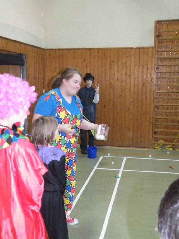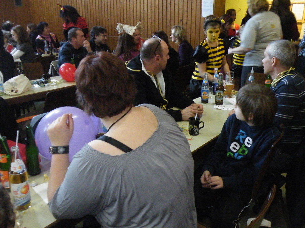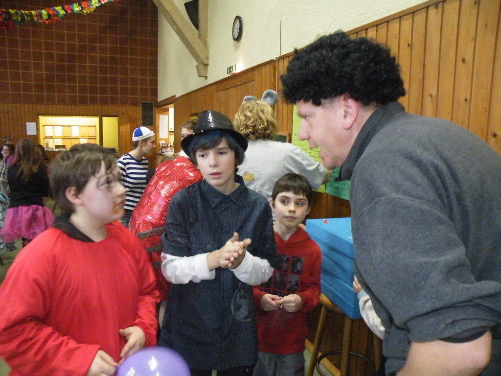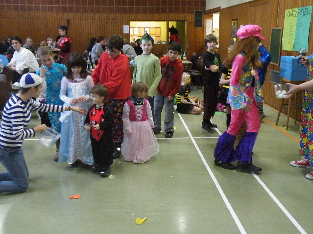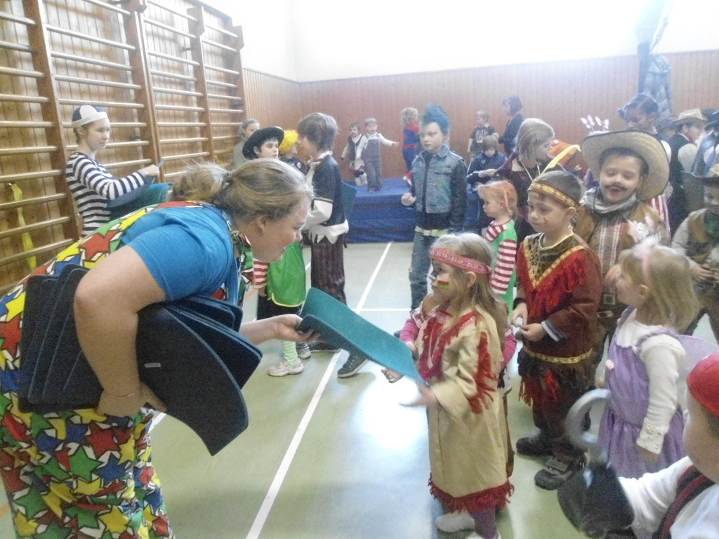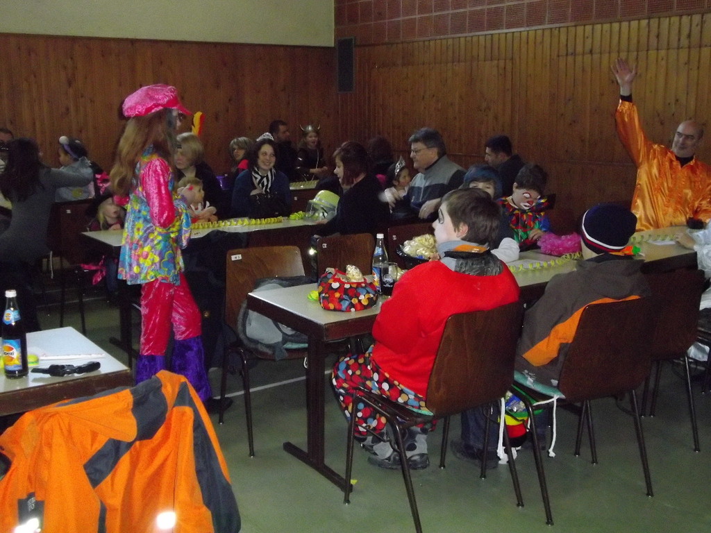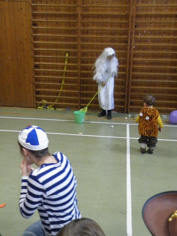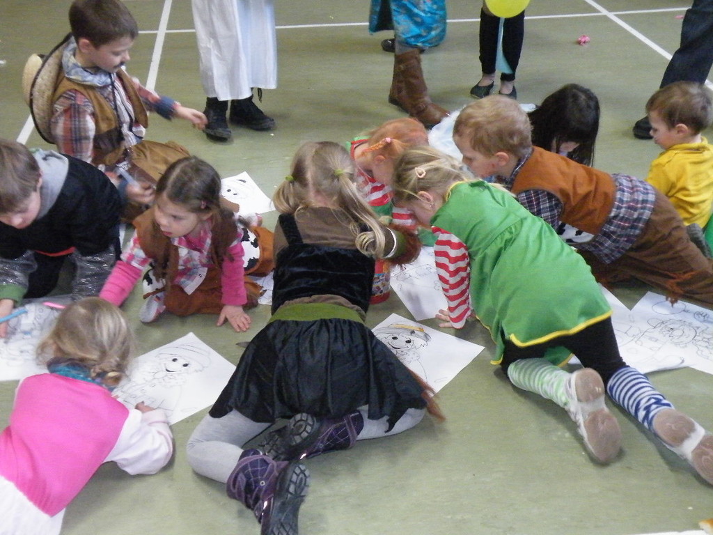 Weiter ging es mit Limbo, einem Wurfspiel und Ausmalen von Bildervorlagen. Wie immer musste auch wieder geschätzt werden. Dieses Jahr die Anzahl von Knöpfen in einem Einmachglas. Die Spanne der abgegebenen Tipps war sehr groß und reichte von ca. 50 bis über 200 Stück. Richtig waren dann 161 Knöpfe, die von der 2. Vorsitzenden Beate Picard mit Hilfe der verbliebenen Kinder ausgezählt wurden. Nach der Vergabe der Preise (1. Platz Tim Krause, 2. Platz Emelie Dudenhöffer, 3. Platz Klara Eschenbach und Yannick Frieß) löste sich die Gesellschaft sehr schnell auf und die fleißigen Helfer konnten mit dem Aufräumen der Halle beginnen. Den Ausklang fand der Kinderfasching im On's.