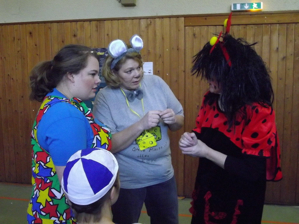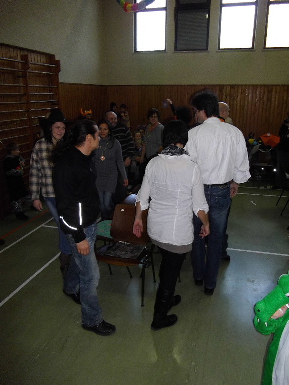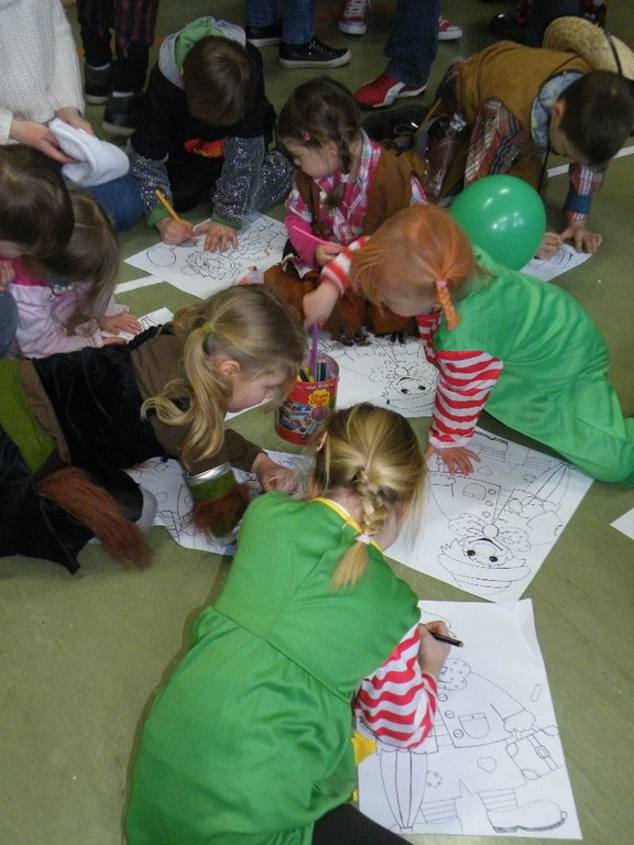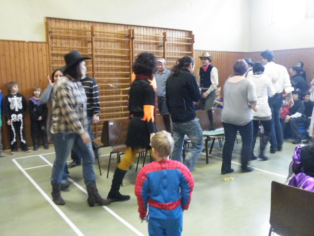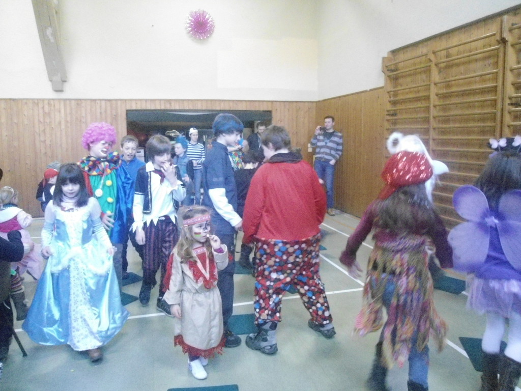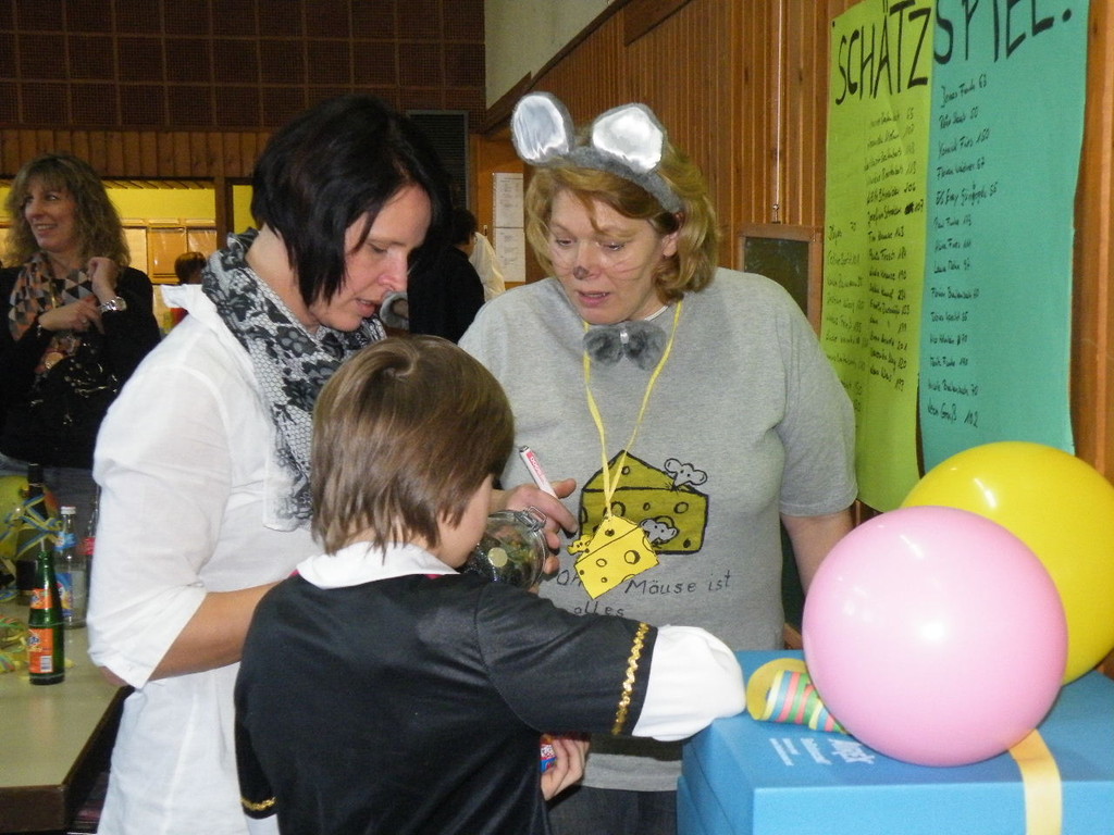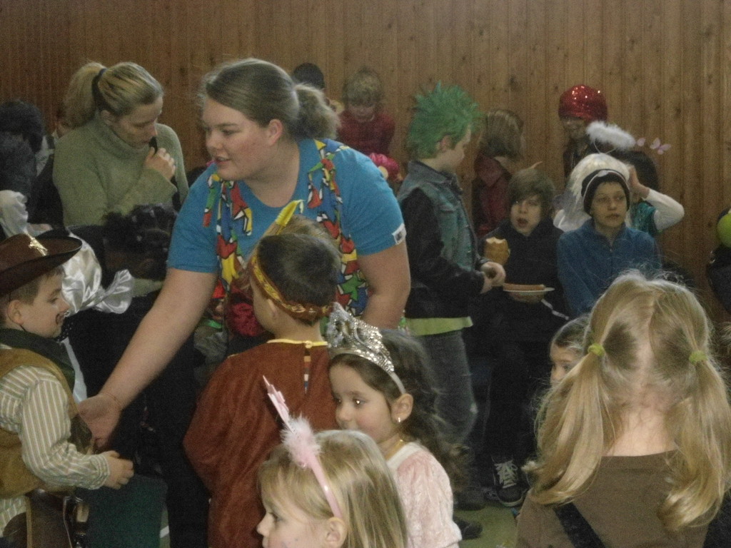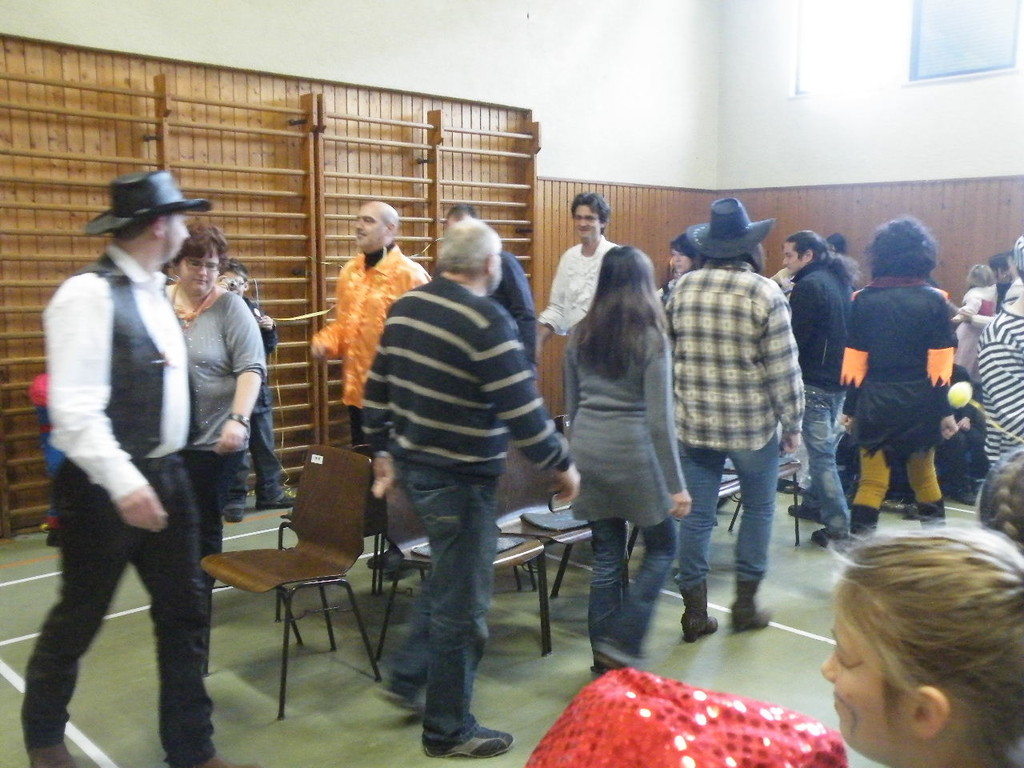 Weiter ging es mit Limbo, einem Wurfspiel und Ausmalen von Bildervorlagen. Wie immer musste auch wieder geschätzt werden. Dieses Jahr die Anzahl von Knöpfen in einem Einmachglas. Die Spanne der abgegebenen Tipps war sehr groß und reichte von ca. 50 bis über 200 Stück. Richtig waren dann 161 Knöpfe, die von der 2. Vorsitzenden Beate Picard mit Hilfe der verbliebenen Kinder ausgezählt wurden. Nach der Vergabe der Preise (1. Platz Tim Krause, 2. Platz Emelie Dudenhöffer, 3. Platz Klara Eschenbach und Yannick Frieß) löste sich die Gesellschaft sehr schnell auf und die fleißigen Helfer konnten mit dem Aufräumen der Halle beginnen. Den Ausklang fand der Kinderfasching im On's.