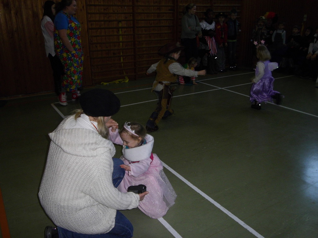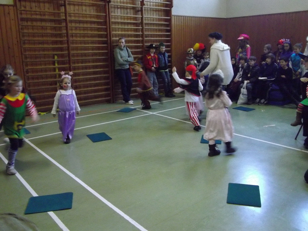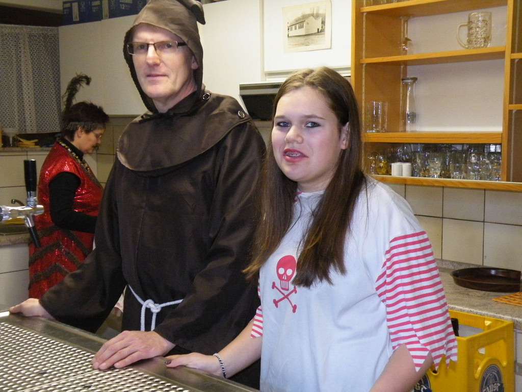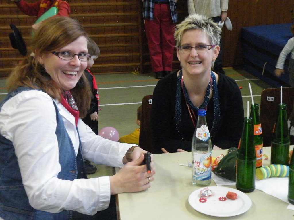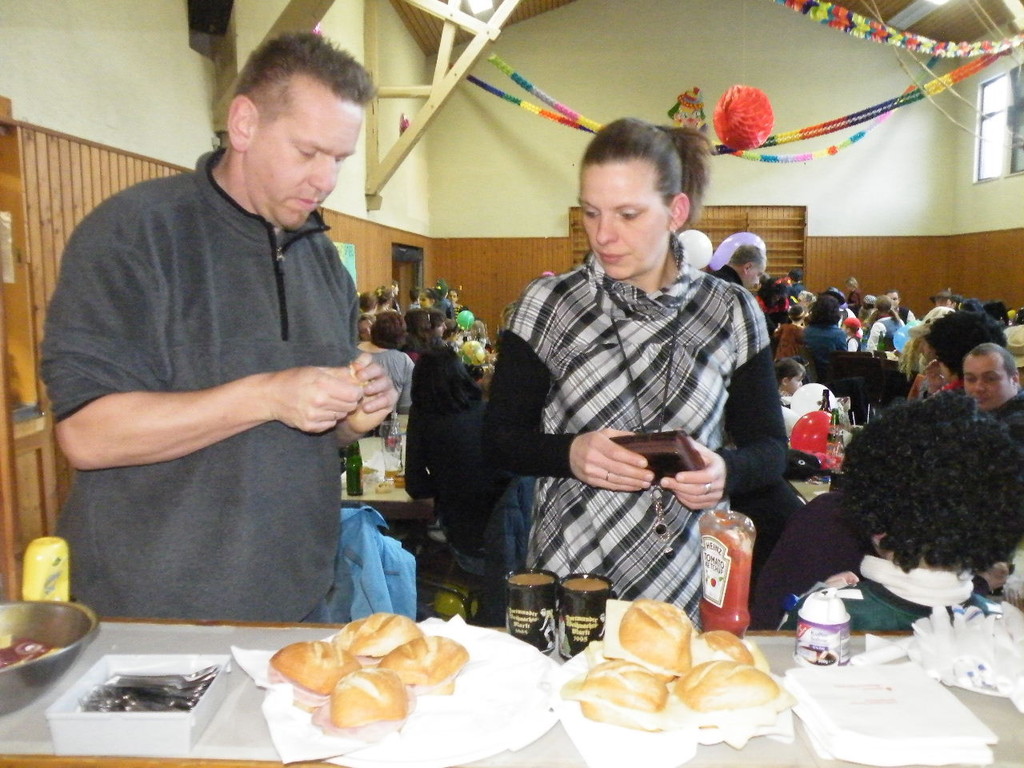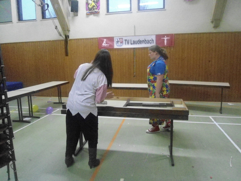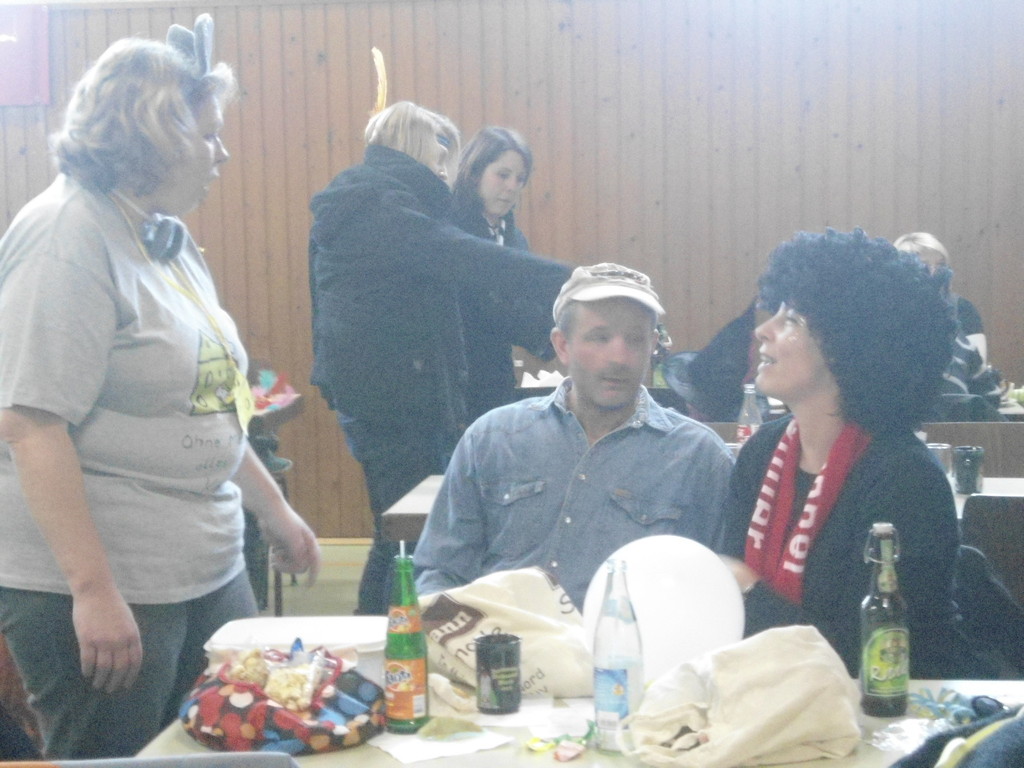 Weiter ging es mit Limbo, einem Wurfspiel und Ausmalen von Bildervorlagen. Wie immer musste auch wieder geschätzt werden. Dieses Jahr die Anzahl von Knöpfen in einem Einmachglas. Die Spanne der abgegebenen Tipps war sehr groß und reichte von ca. 50 bis über 200 Stück. Richtig waren dann 161 Knöpfe, die von der 2. Vorsitzenden Beate Picard mit Hilfe der verbliebenen Kinder ausgezählt wurden. Nach der Vergabe der Preise (1. Platz Tim Krause, 2. Platz Emelie Dudenhöffer, 3. Platz Klara Eschenbach und Yannick Frieß) löste sich die Gesellschaft sehr schnell auf und die fleißigen Helfer konnten mit dem Aufräumen der Halle beginnen. Den Ausklang fand der Kinderfasching im On's.
