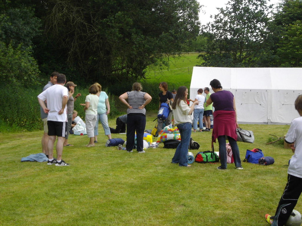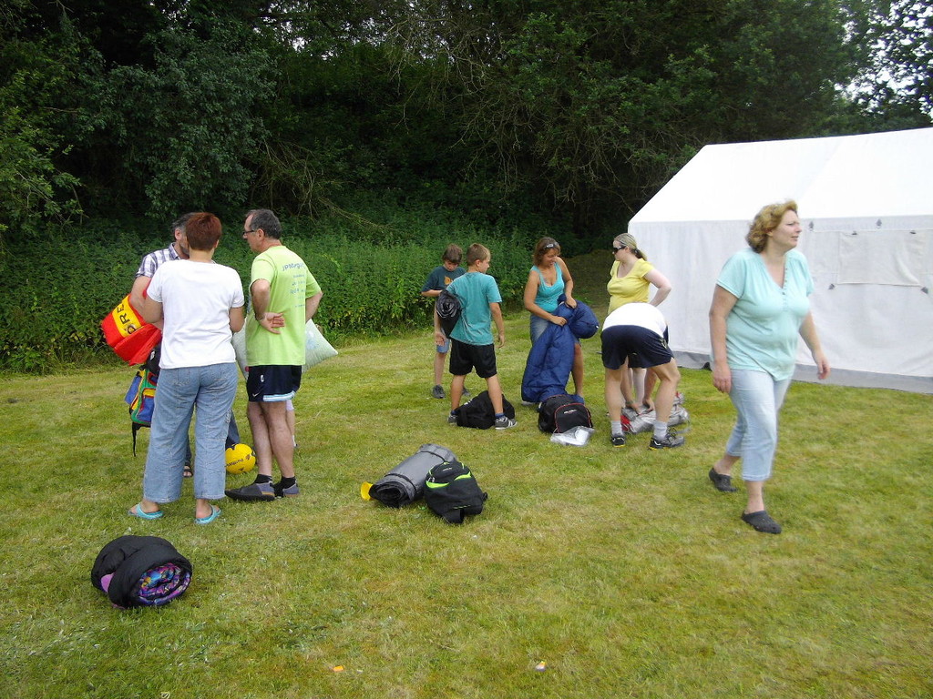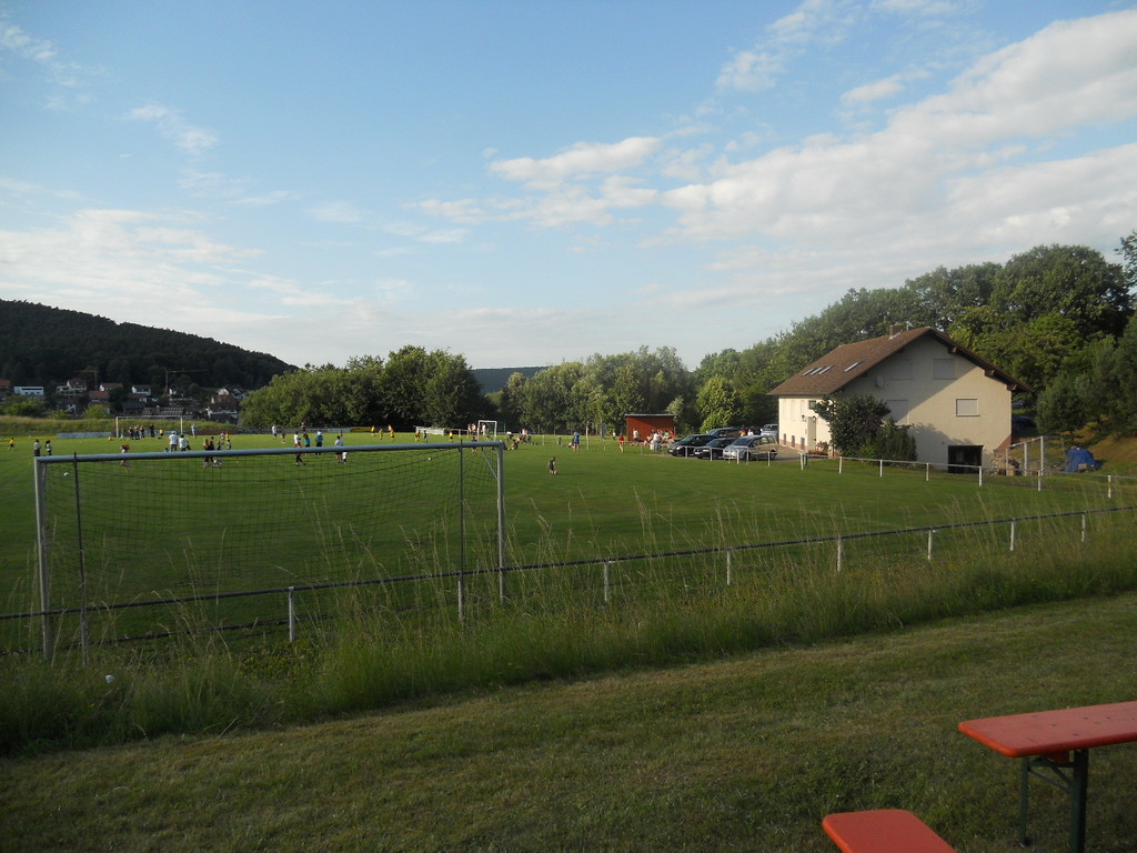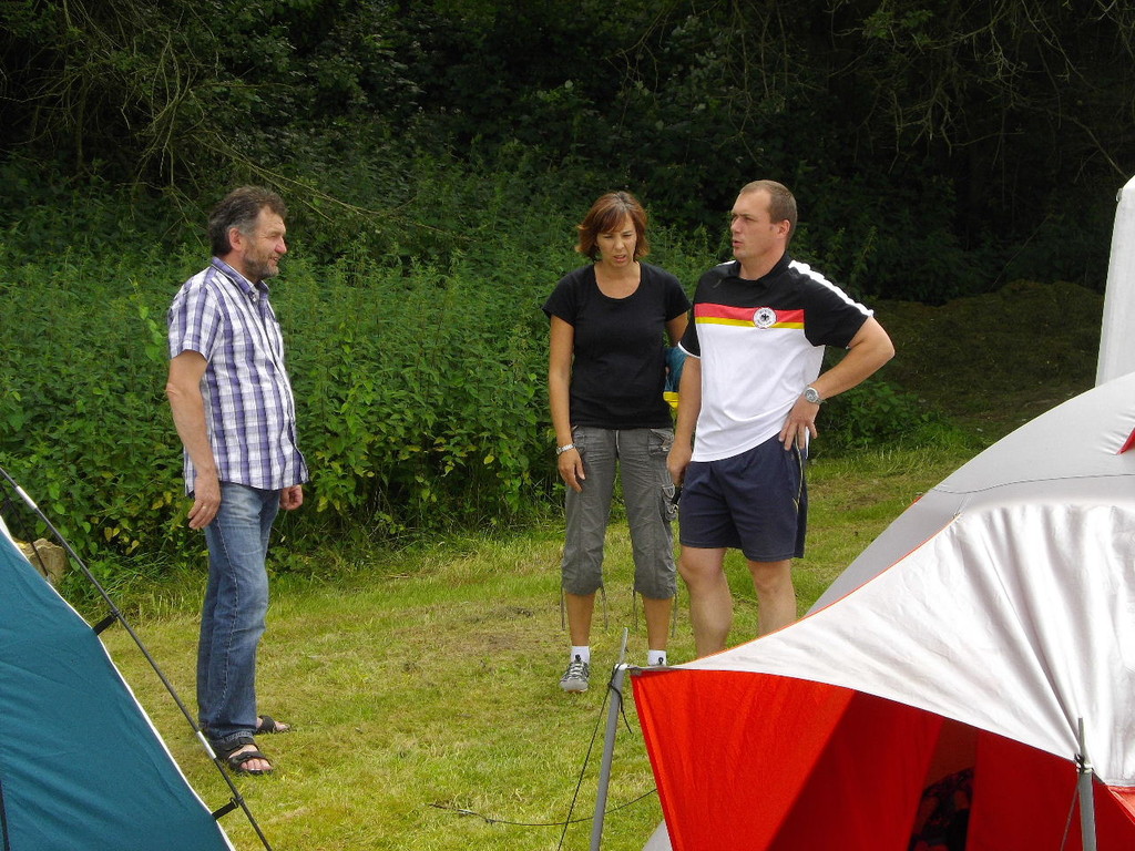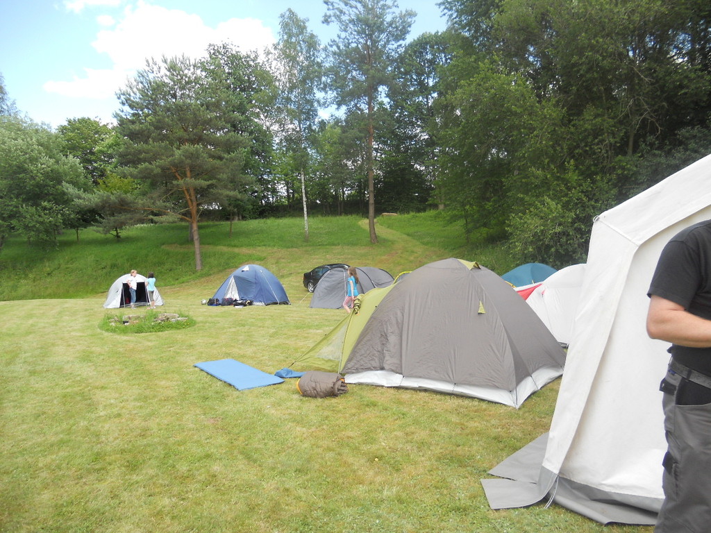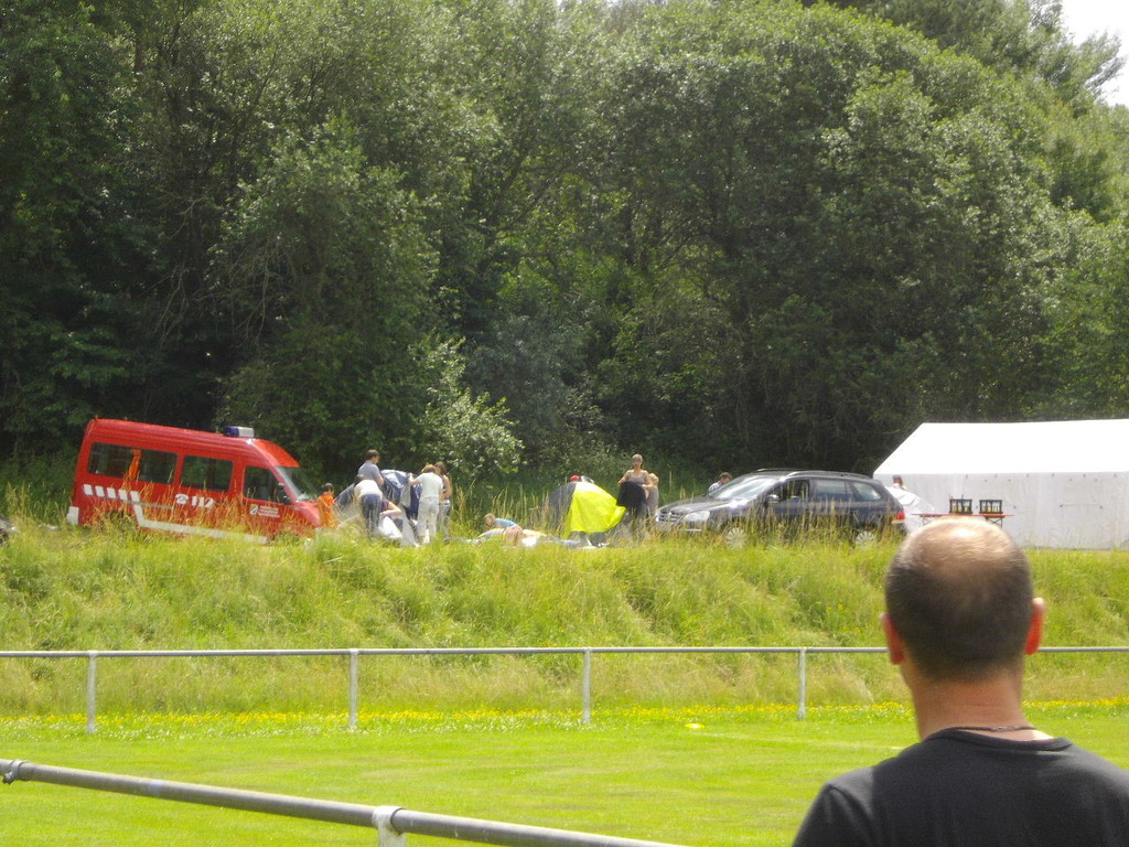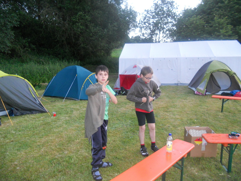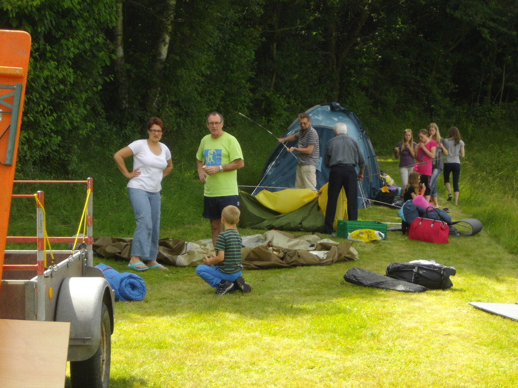 Ab 15:00 Uhr trafen 31 Kinder auf dem Gelände des Fußballvereins ein. Zuerst einmal galt es, die Zelte aufzubauen. Die Kinder wurden dabei natürlich tatkräftig von ihren Eltern unterstützt. Anschließend konnten die Kinder auf dem Gelände nach Lust und Laune toben. Nach dem Anzünden des Lagerfeuers wurden Stöcke und Zweige für das Stockbrot gesammelt und zugespitzt. Die freiwilligen Helfer bereiteten während dessen das Abendessen vor: Mit Bratwurst und Brötchen konnten sich alle wieder etwas stärken, bevor der Teig für das Stockbrot geknetet werden musste. Danach ging es natürlich ans Stockbrot rösten. Ab 20:45 Uhr saßen die Fußballfans unter den Kindern und Betreuern natürlich vor dem Fernseher im Sportheim und schauten das Spiel Deutschland-Griechenland. Die weniger Fußballbegeisterten unternahmen zeitgleich eine Nachtwanderung durch den Wald. Nach dem Spiel und der Nachtwanderung gab es bis zur Nachtruhe Spaß am Lagerfeuer.