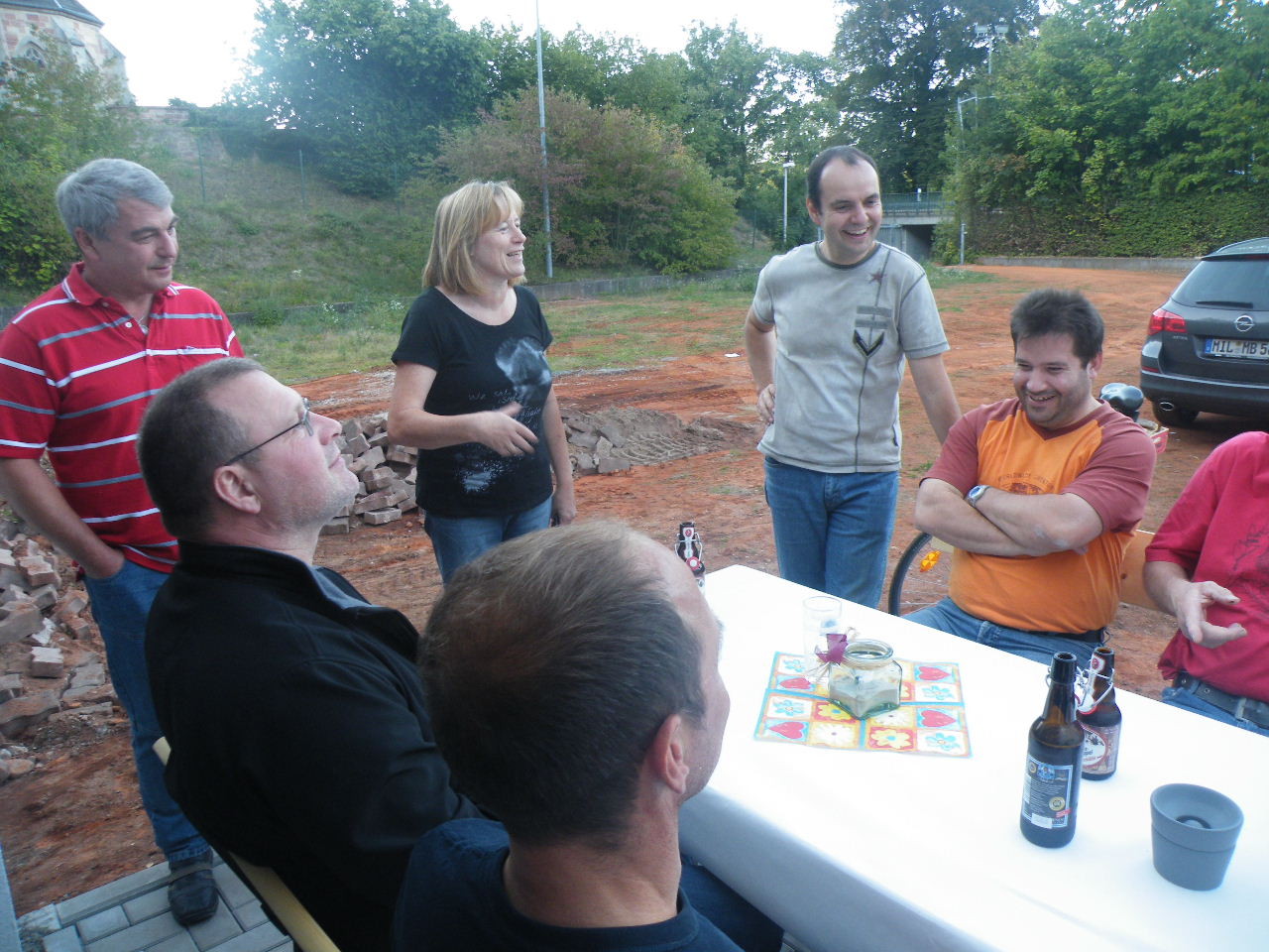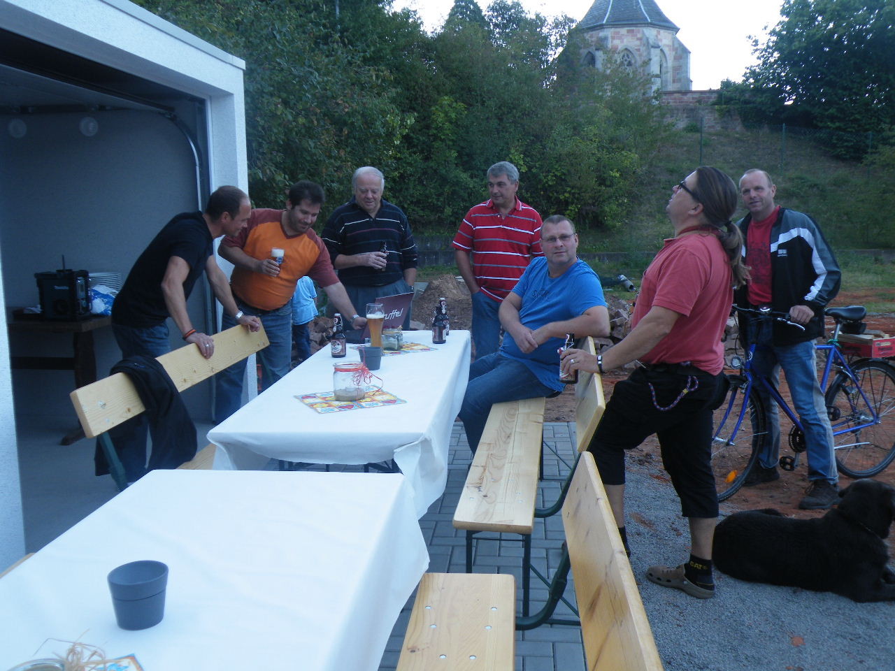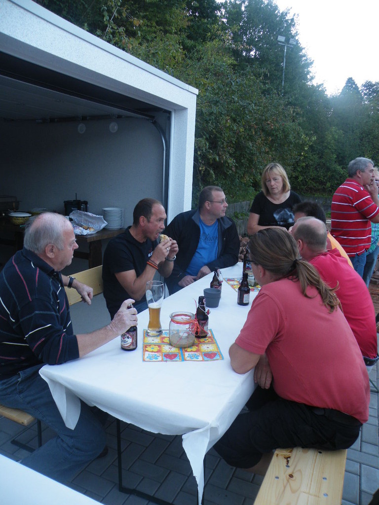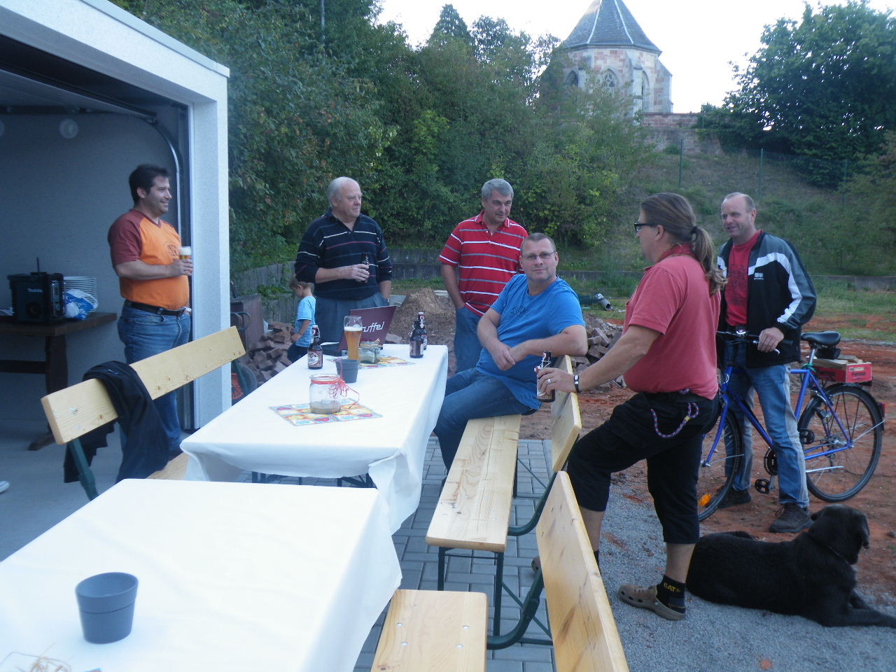 Auf dem neu gepflasterten Platz vor den Garagen gab es für die freiwilligen Helfer am 07.09.12 ein kleines Fest zum Abschluss der Renovierungsarbeiten. Ab ca. 17:00 Uhr bis weit nach Einbruch der Dunkelheit saßen Helfer und auch Sponsoren zusammen. An dieser Stelle nochmal ein Dankeschön an alle, die bei den vielfältigen Arbeiten mit Hand angelegt haben, insbesondere an Bernd Rohleder, Frank Leiß und Marco Berg für den unermüdlichen Einsatz.