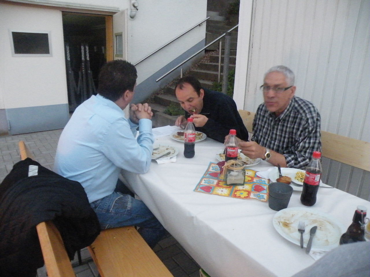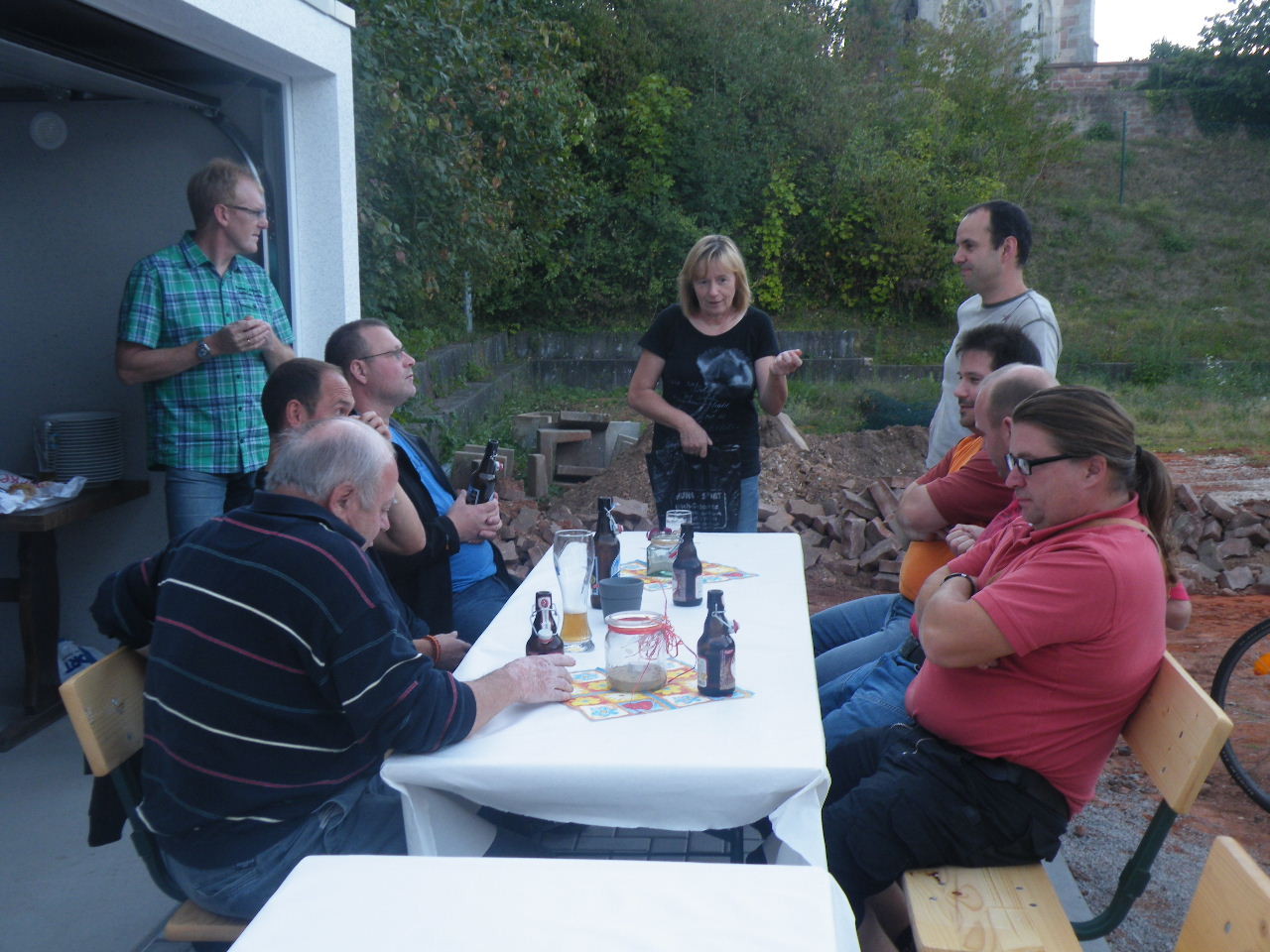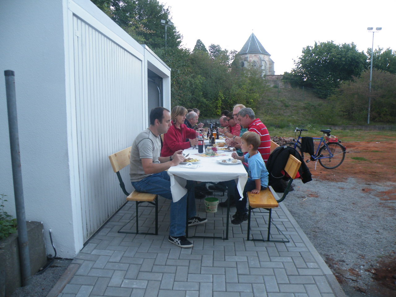 Auf dem neu gepflasterten Platz vor den Garagen gab es für die freiwilligen Helfer am 07.09.12 ein kleines Fest zum Abschluss der Renovierungsarbeiten. Ab ca. 17:00 Uhr bis weit nach Einbruch der Dunkelheit saßen Helfer und auch Sponsoren zusammen. An dieser Stelle nochmal ein Dankeschön an alle, die bei den vielfältigen Arbeiten mit Hand angelegt haben, insbesondere an Bernd Rohleder, Frank Leiß und Marco Berg für den unermüdlichen Einsatz.