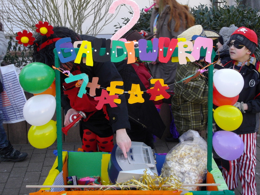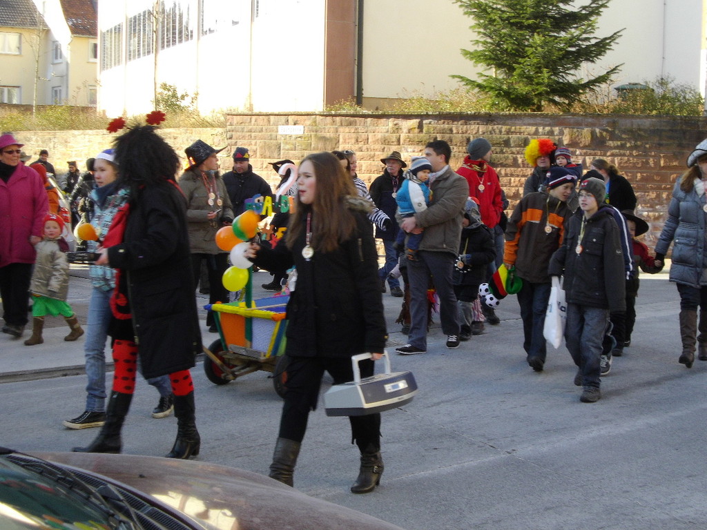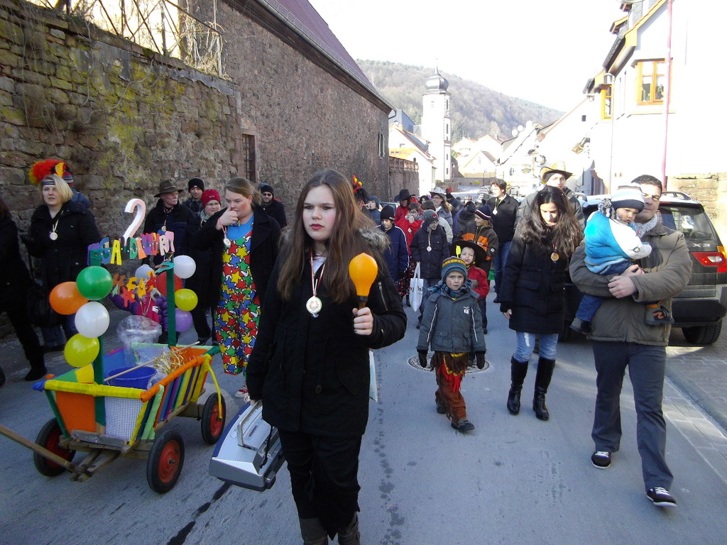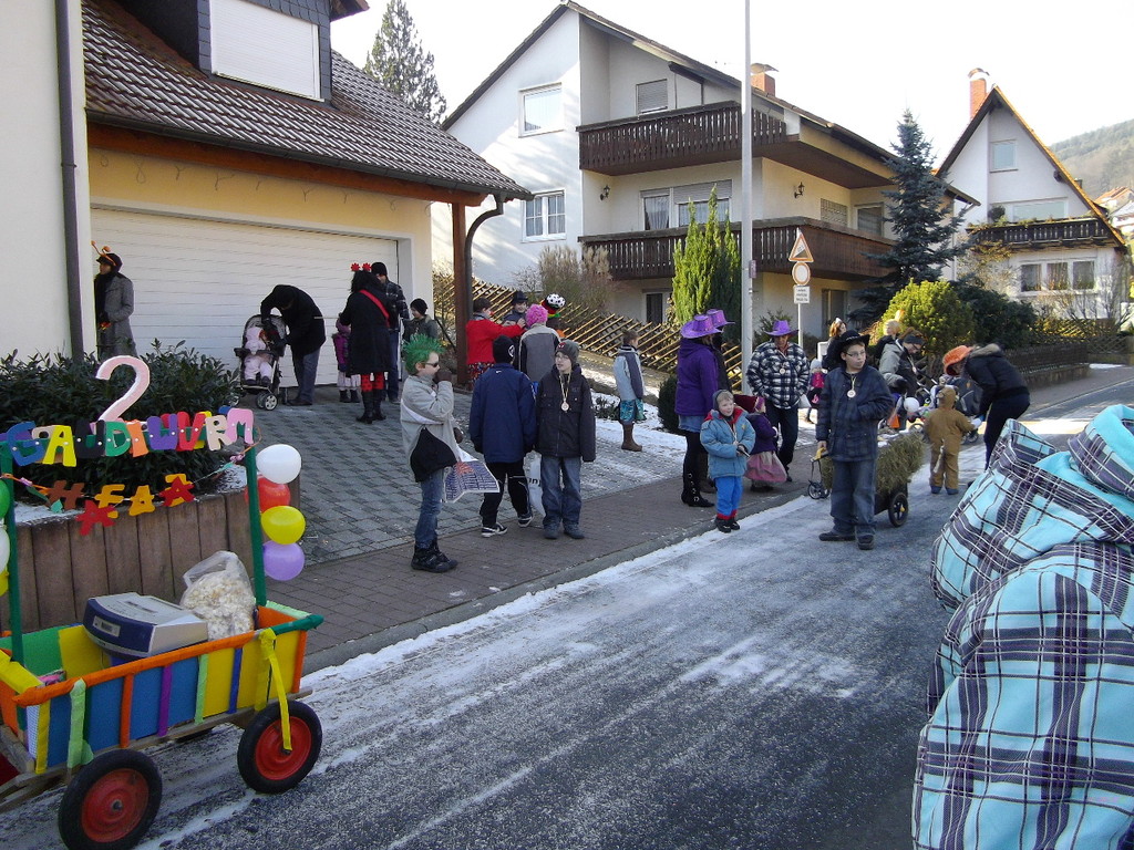 Bei strahlendem Sonnenschein kamen am 12.02.2012 ca. 80 kleine und große Narren zum Gaudiwurm. Mit viel Krach, Musik und mittlerweile sogar schon 2 Faschings(leiter)-