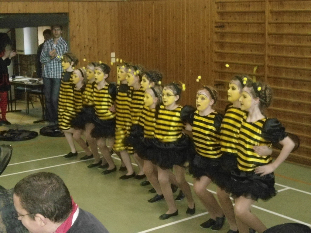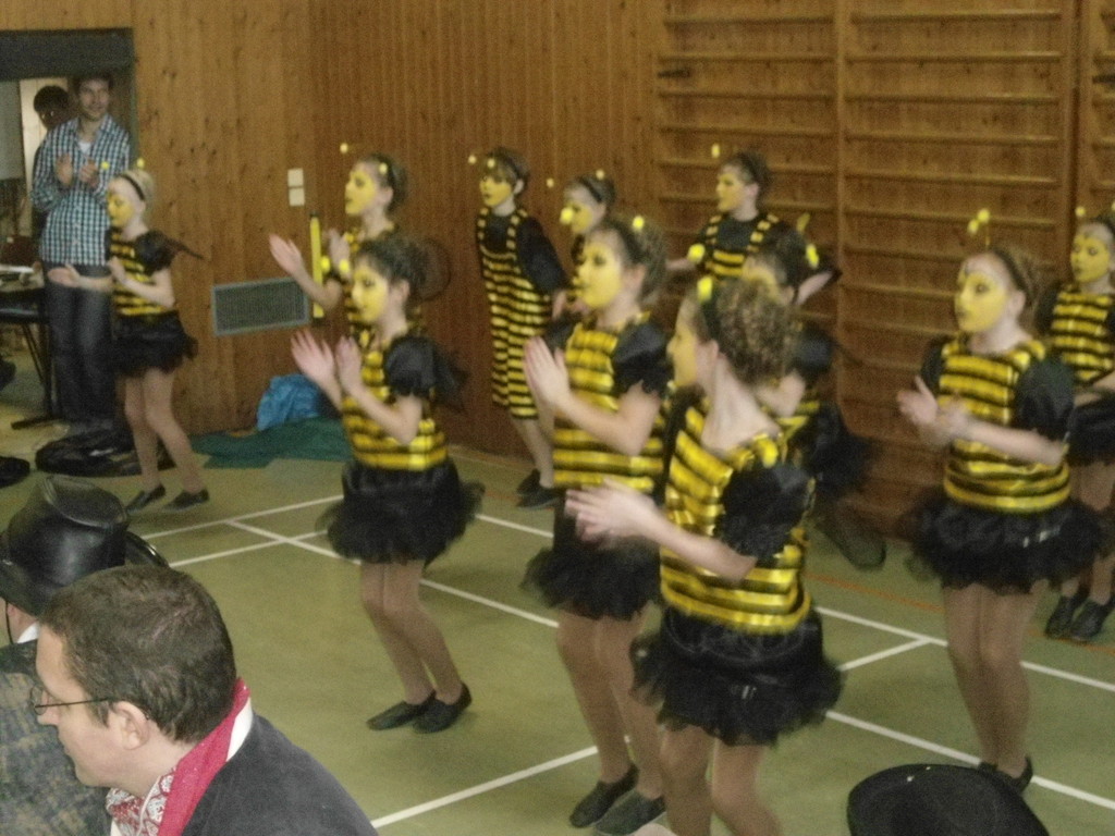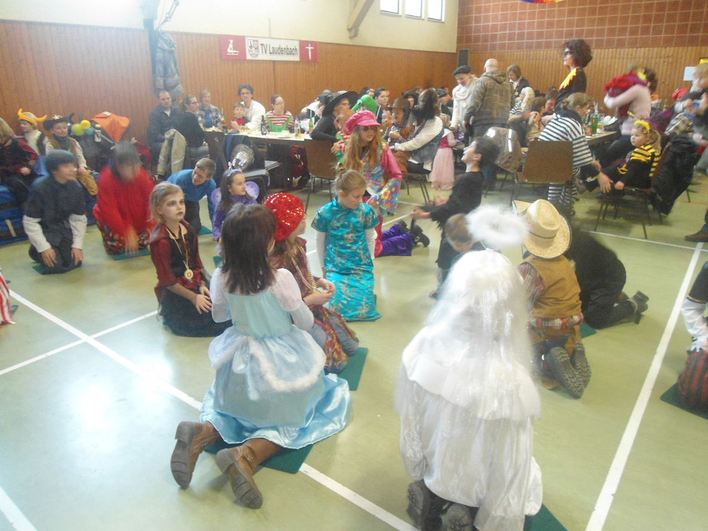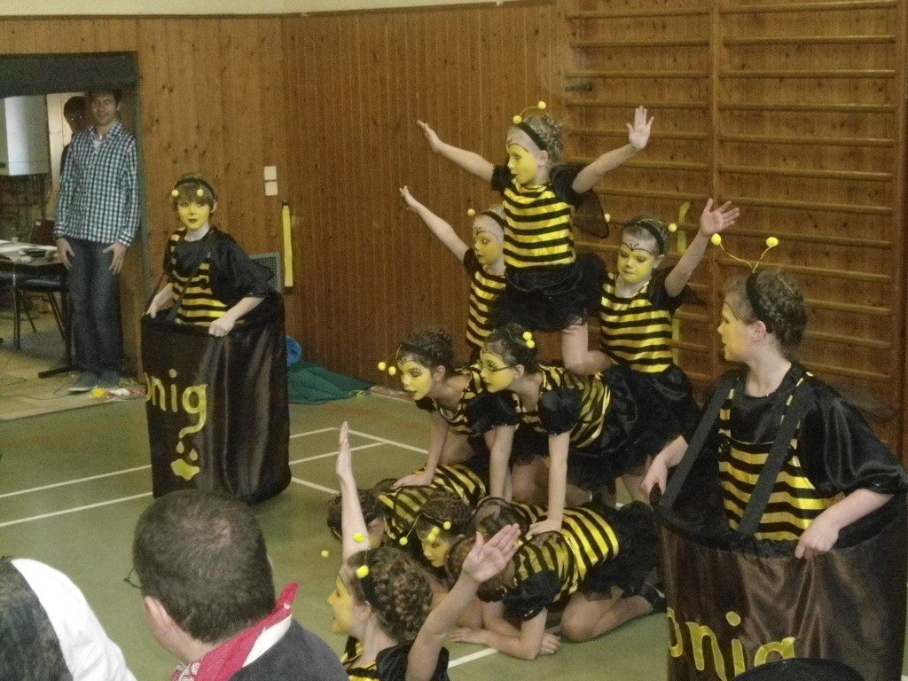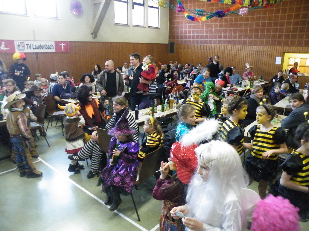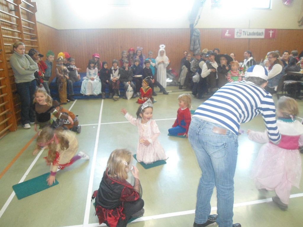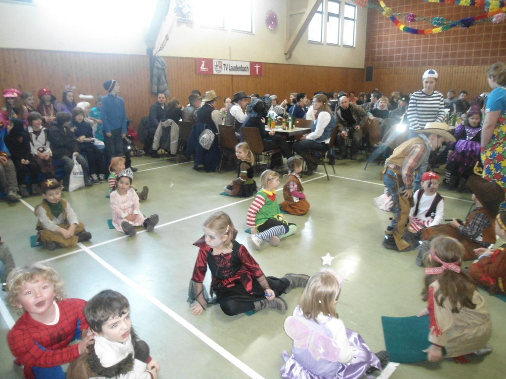 Die Turnhalle war bis auf den letzten Platz besetzt und die fleißigen Helfer hinter der Theke hatten erst mal alle Hände voll zu tun mit dem Ausschank der Getränke. Auch auf die Essens- und Kaffeeausgabe gab es einen großen Run. Nachdem sich alle einigermaßen sortiert hatten, ging es mit den Spielen los. Erst mal "Reise nach Jerusalem" für alle. Natürlich den körperlichen Gegebenheiten angepasst - die beweglichen Kleinen und Mittleren mit Teppichen und die nicht mehr so ganz beweglichen Großen mit Stühlen. Nach einer Verschnaufpause lag Bienengesumme in der Luft, als die Minigarde aus Rüdenau die Besucher mit ihrem Tanz "Die flotten Bienen" erfreute. Einmal mehr ist es deren Trainern Petra Maier und Manuel Pfister gelungen, eine tolle Show einzustudieren. Sogar ein Geburtstagskind hatten sie dabei, das auf alle Feiern an diesem Tag verzichtet hat und immerhin mit einem Geburtstagslied belohnt wurde. Ein großes Dankeschön an die Minigarde, die schon oft beim Kinderfasching des TVL mit ihren Tänzen begeisterte. Wir sind schon sehr gespannt auf den Tanz im nächsten Jahr.