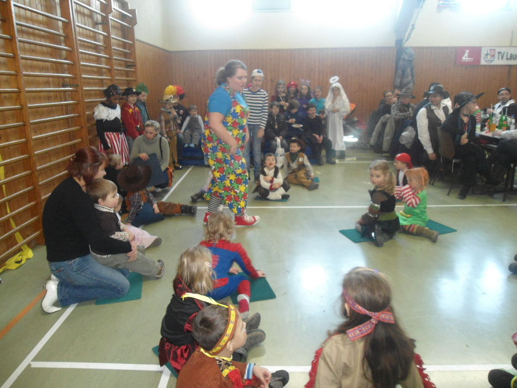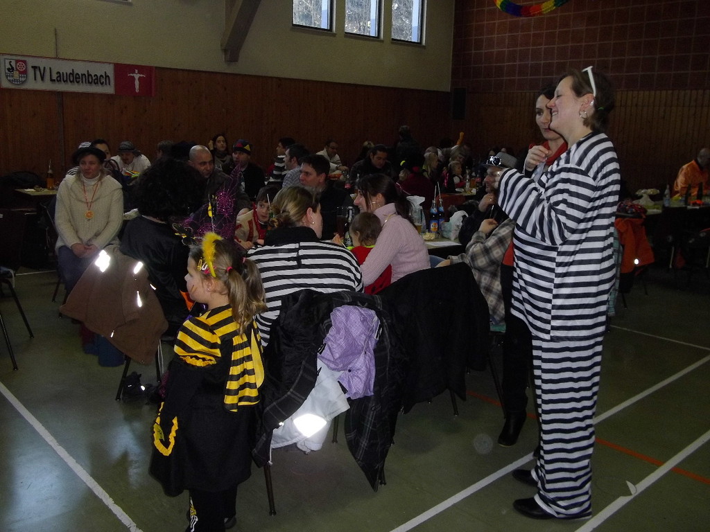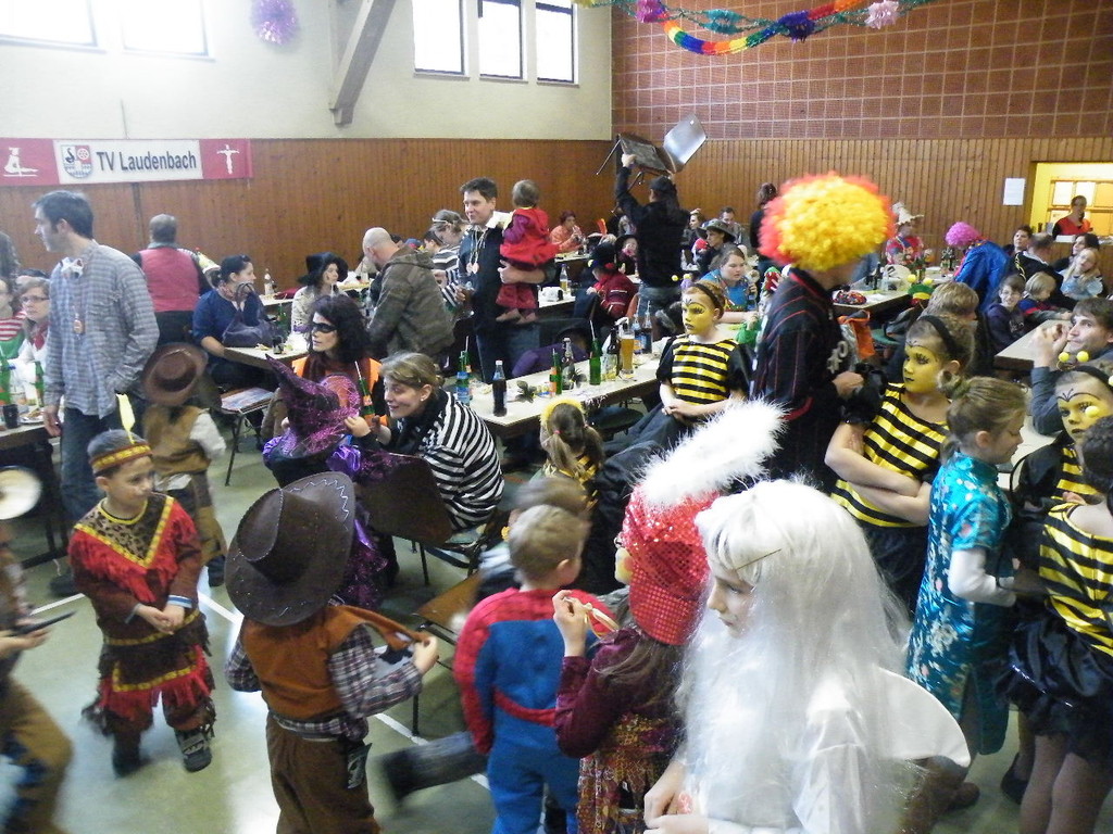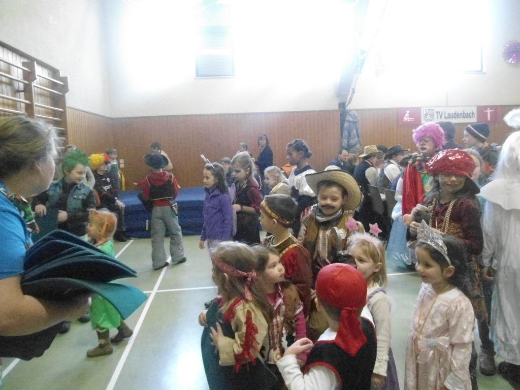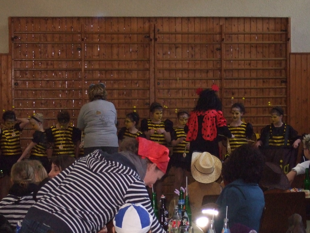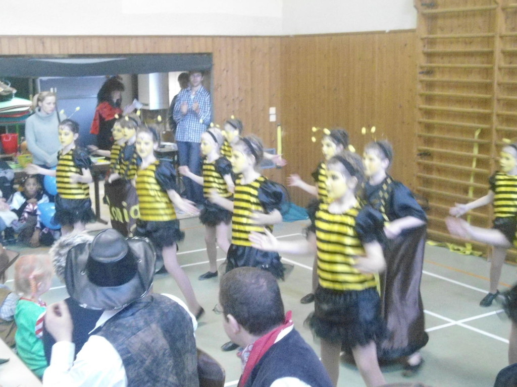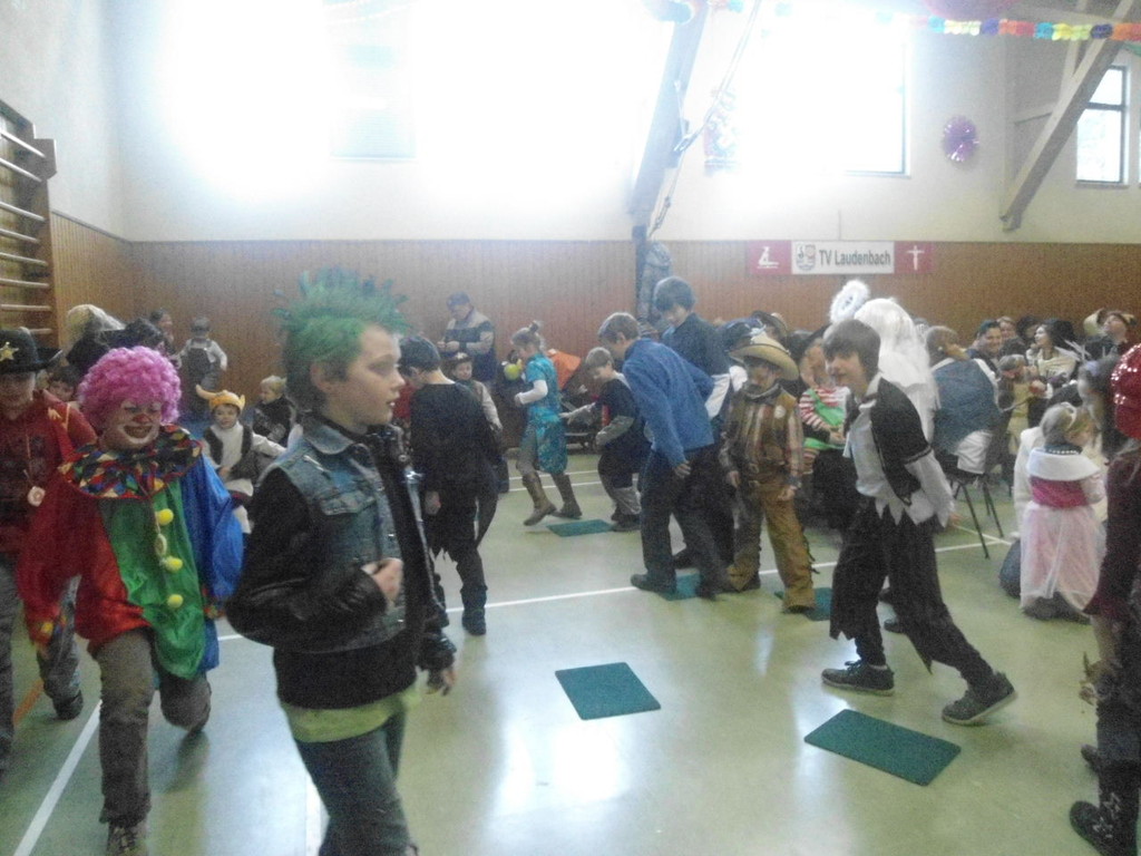 Die Turnhalle war bis auf den letzten Platz besetzt und die fleißigen Helfer hinter der Theke hatten erst mal alle Hände voll zu tun mit dem Ausschank der Getränke. Auch auf die Essens- und Kaffeeausgabe gab es einen großen Run. Nachdem sich alle einigermaßen sortiert hatten, ging es mit den Spielen los. Erst mal "Reise nach Jerusalem" für alle. Natürlich den körperlichen Gegebenheiten angepasst - die beweglichen Kleinen und Mittleren mit Teppichen und die nicht mehr so ganz beweglichen Großen mit Stühlen. Nach einer Verschnaufpause lag Bienengesumme in der Luft, als die Minigarde aus Rüdenau die Besucher mit ihrem Tanz "Die flotten Bienen" erfreute. Einmal mehr ist es deren Trainern Petra Maier und Manuel Pfister gelungen, eine tolle Show einzustudieren. Sogar ein Geburtstagskind hatten sie dabei, das auf alle Feiern an diesem Tag verzichtet hat und immerhin mit einem Geburtstagslied belohnt wurde. Ein großes Dankeschön an die Minigarde, die schon oft beim Kinderfasching des TVL mit ihren Tänzen begeisterte. Wir sind schon sehr gespannt auf den Tanz im nächsten Jahr.