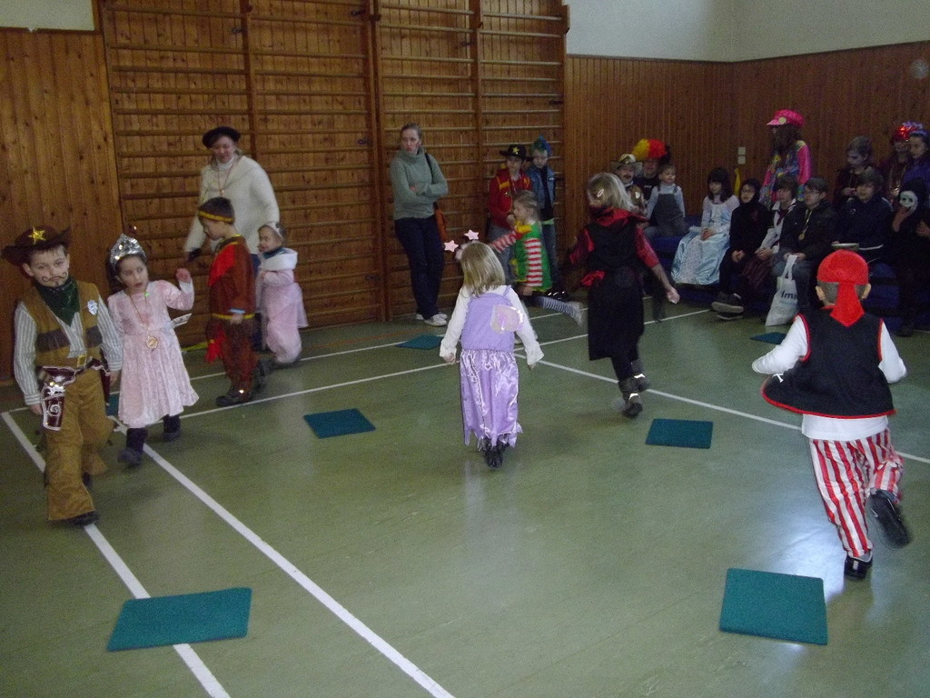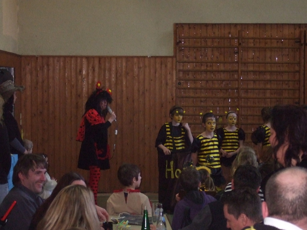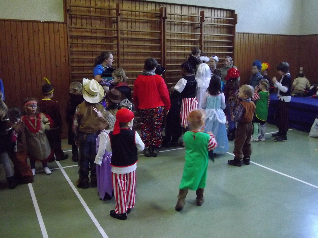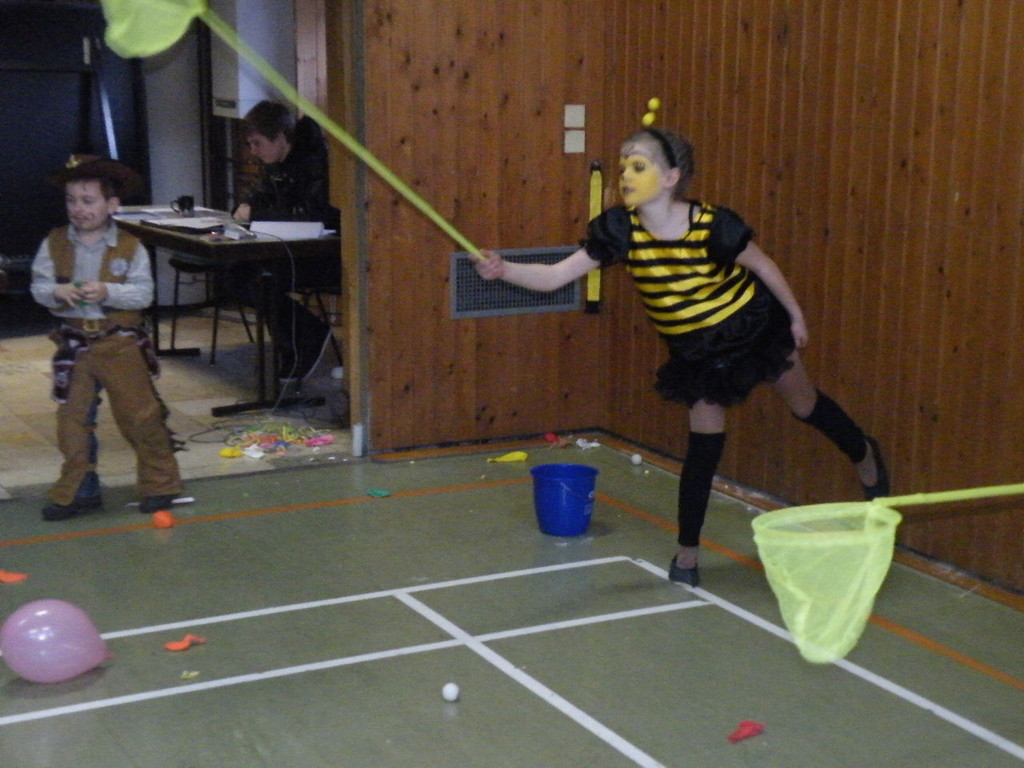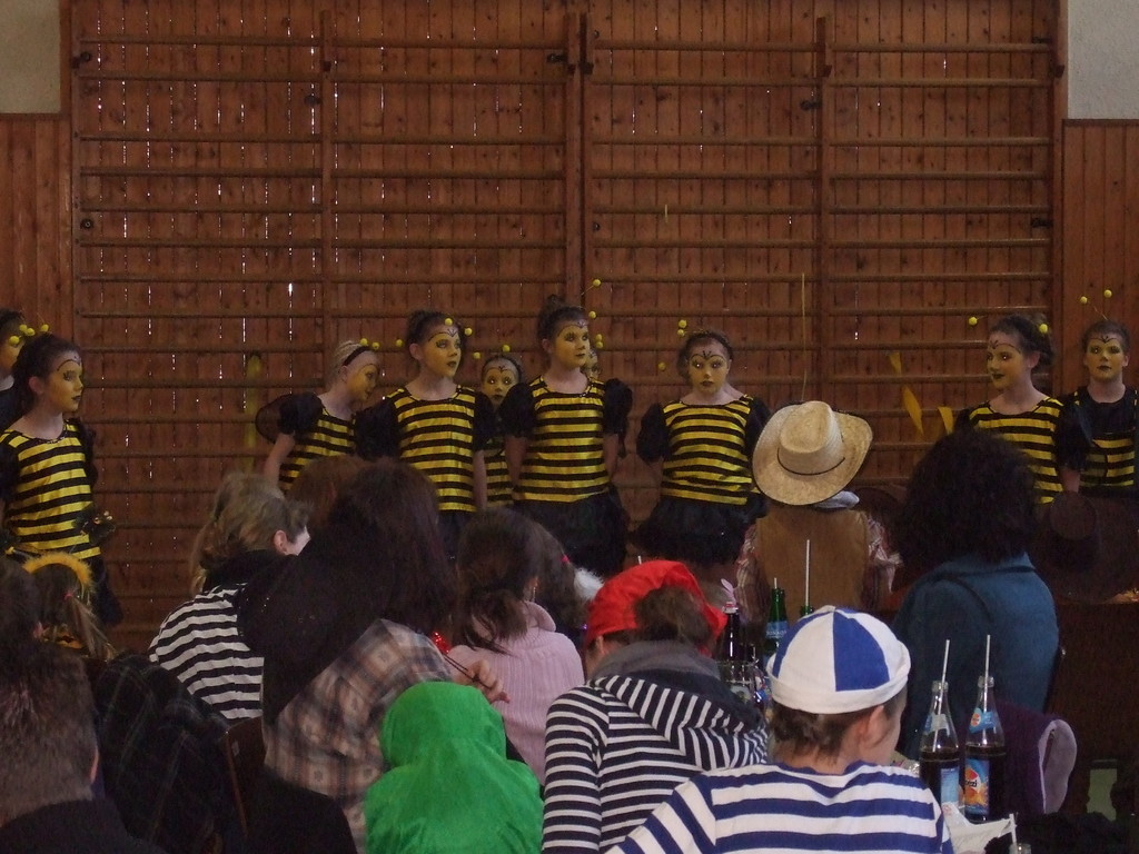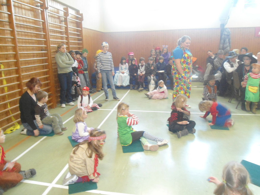 Die Turnhalle war bis auf den letzten Platz besetzt und die fleißigen Helfer hinter der Theke hatten erst mal alle Hände voll zu tun mit dem Ausschank der Getränke. Auch auf die Essens- und Kaffeeausgabe gab es einen großen Run. Nachdem sich alle einigermaßen sortiert hatten, ging es mit den Spielen los. Erst mal "Reise nach Jerusalem" für alle. Natürlich den körperlichen Gegebenheiten angepasst - die beweglichen Kleinen und Mittleren mit Teppichen und die nicht mehr so ganz beweglichen Großen mit Stühlen. Nach einer Verschnaufpause lag Bienengesumme in der Luft, als die Minigarde aus Rüdenau die Besucher mit ihrem Tanz "Die flotten Bienen" erfreute. Einmal mehr ist es deren Trainern Petra Maier und Manuel Pfister gelungen, eine tolle Show einzustudieren. Sogar ein Geburtstagskind hatten sie dabei, das auf alle Feiern an diesem Tag verzichtet hat und immerhin mit einem Geburtstagslied belohnt wurde. Ein großes Dankeschön an die Minigarde, die schon oft beim Kinderfasching des TVL mit ihren Tänzen begeisterte. Wir sind schon sehr gespannt auf den Tanz im nächsten Jahr.