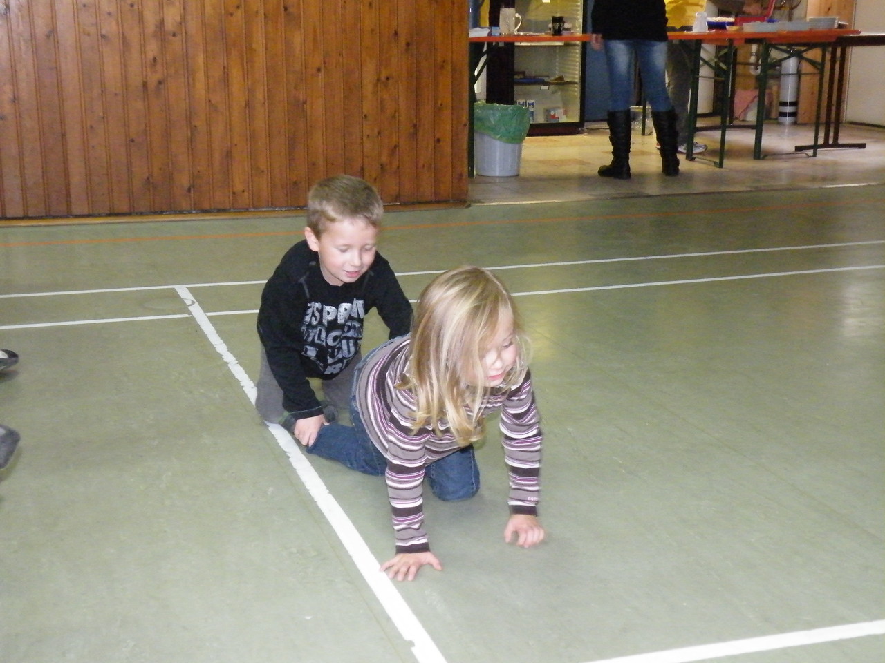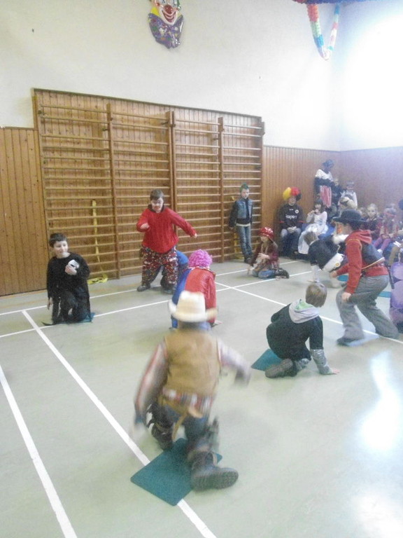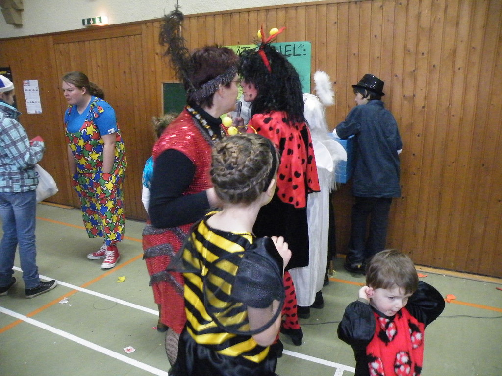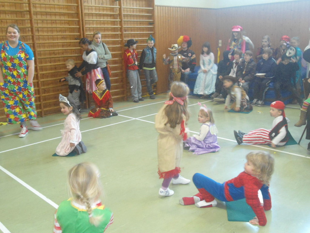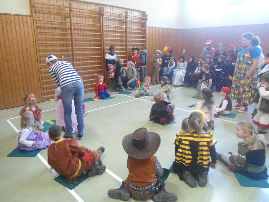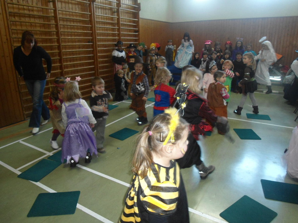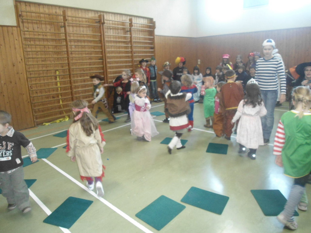 Die Turnhalle war bis auf den letzten Platz besetzt und die fleißigen Helfer hinter der Theke hatten erst mal alle Hände voll zu tun mit dem Ausschank der Getränke. Auch auf die Essens- und Kaffeeausgabe gab es einen großen Run. Nachdem sich alle einigermaßen sortiert hatten, ging es mit den Spielen los. Erst mal "Reise nach Jerusalem" für alle. Natürlich den körperlichen Gegebenheiten angepasst - die beweglichen Kleinen und Mittleren mit Teppichen und die nicht mehr so ganz beweglichen Großen mit Stühlen. Nach einer Verschnaufpause lag Bienengesumme in der Luft, als die Minigarde aus Rüdenau die Besucher mit ihrem Tanz "Die flotten Bienen" erfreute. Einmal mehr ist es deren Trainern Petra Maier und Manuel Pfister gelungen, eine tolle Show einzustudieren. Sogar ein Geburtstagskind hatten sie dabei, das auf alle Feiern an diesem Tag verzichtet hat und immerhin mit einem Geburtstagslied belohnt wurde. Ein großes Dankeschön an die Minigarde, die schon oft beim Kinderfasching des TVL mit ihren Tänzen begeisterte. Wir sind schon sehr gespannt auf den Tanz im nächsten Jahr.