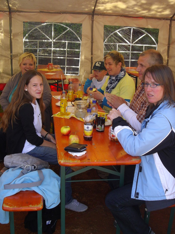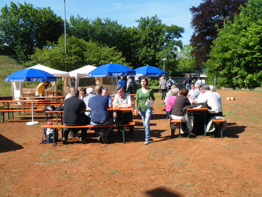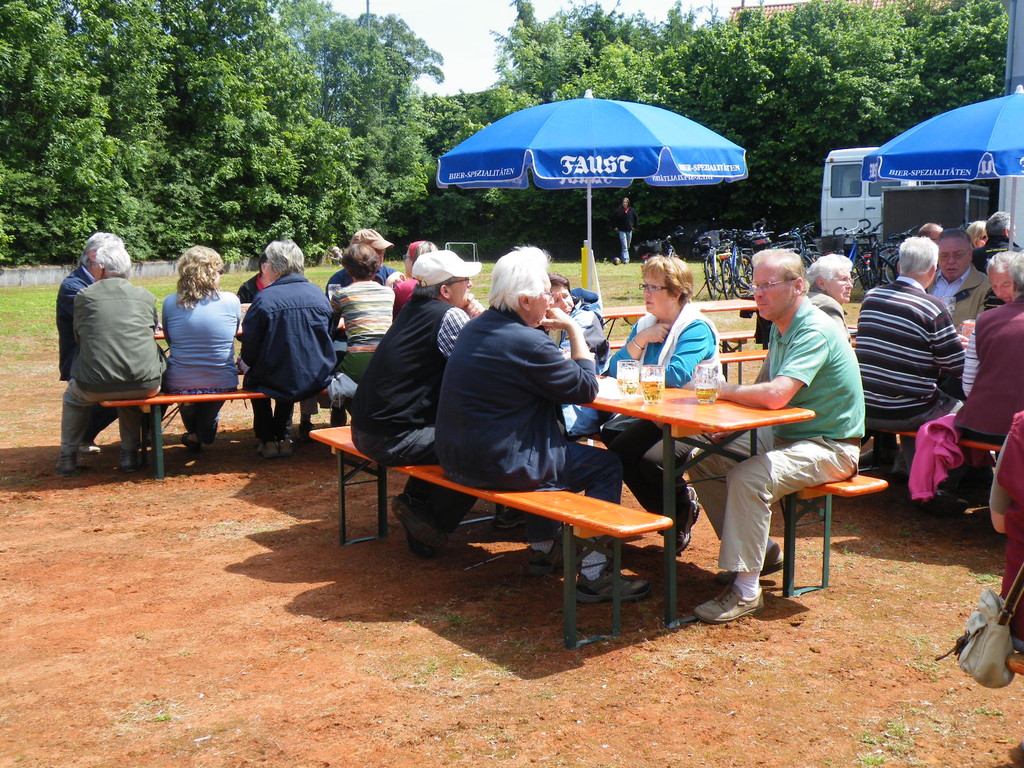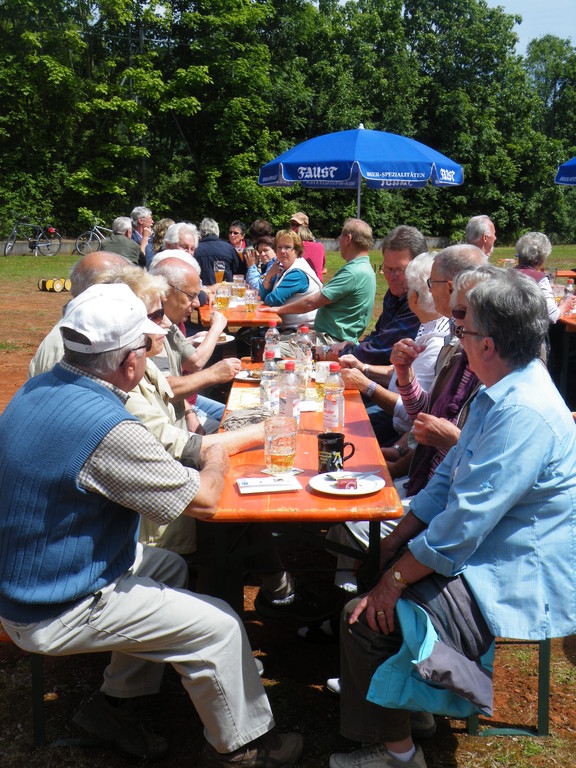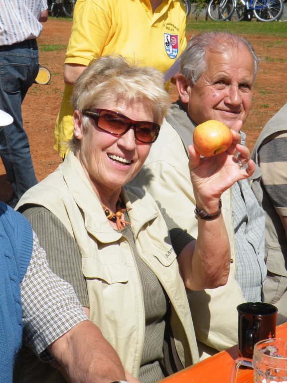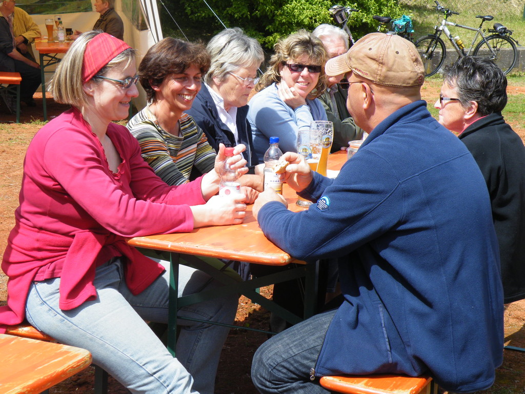 Am 17.05.12 war der TV Laudenbach Ausrichter des diesjährigen Gauwandertages Raum Obernburg/Miltenberg. Obwohl es am Vortag noch so aussah, als würde der Wandertag buchstäblich ins Wasser fallen, strahlte am Donnerstag die Sonne vom Himmel. Bereits kurz nach 12 Uhr trudelten die ersten (Rad)-Wanderer des TV Wörth ein, die bald Unterstützung fanden durch Mitglieder des TV Großwallstadt. Insgesamt konnte der TV Laudenbach acht Vereine (Wörth, Großwallstadt, Kleinheubach, Erlenbach, Trennfurt, Klingenberg, Bürgstadt und Rüdenau) auf dem Turnvereinsgelände begrüßen. Viele der Gauwanderer kamen mit dem Fahrrad – vielleicht auch, um in Laudenbach einen Zwischenstopp zum Anglerfest in Kleinheubach einzulegen. Aber auch per pedes waren doch manche Vereine unterwegs, wie z. B. der TV Kleinheubach und der TV Rüdenau. Am stärksten vertreten war der TV Rüdenau mit 25 Teilnehmern, gefolgt vom TV Trennfurt, der mit 16 Mitgliedern anwesend war. Den 3. Platz in der Wertung belegte der TV Erlenbach mit 10 Personen. Als kleines Dankeschön für die zahlreiche Teilnahme am Gauwandertag bekamen die drei erstplatzierten Vereine jeweils ein Körbchen mit 5 kg, 3 kg bzw. 1 kg Äpfeln überreicht. Zumindest mit 5 bzw. 3 kg hätte das schon einen schönen Apfelkuchen gegeben, was manche jedoch nicht davon abhielt, die Äpfel gleich an Ort und Stelle zu verzehren.
