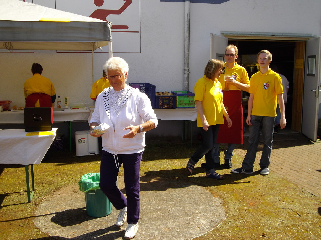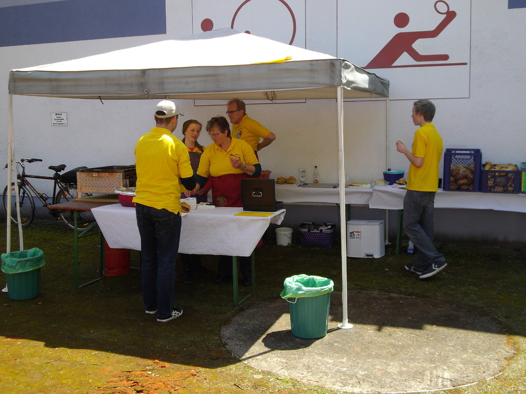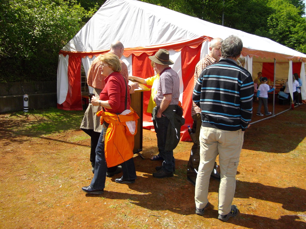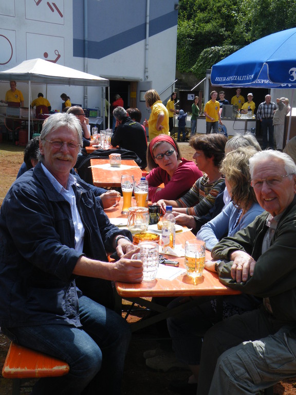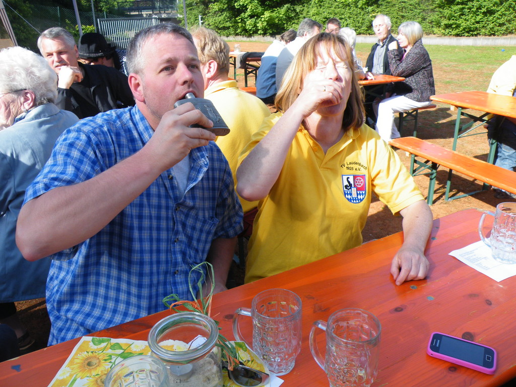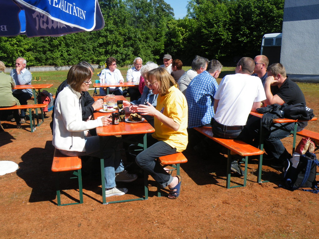 Am 17.05.12 war der TV Laudenbach Ausrichter des diesjährigen Gauwandertages Raum Obernburg/Miltenberg. Obwohl es am Vortag noch so aussah, als würde der Wandertag buchstäblich ins Wasser fallen, strahlte am Donnerstag die Sonne vom Himmel. Bereits kurz nach 12 Uhr trudelten die ersten (Rad)-Wanderer des TV Wörth ein, die bald Unterstützung fanden durch Mitglieder des TV Großwallstadt. Insgesamt konnte der TV Laudenbach acht Vereine (Wörth, Großwallstadt, Kleinheubach, Erlenbach, Trennfurt, Klingenberg, Bürgstadt und Rüdenau) auf dem Turnvereinsgelände begrüßen. Viele der Gauwanderer kamen mit dem Fahrrad – vielleicht auch, um in Laudenbach einen Zwischenstopp zum Anglerfest in Kleinheubach einzulegen. Aber auch per pedes waren doch manche Vereine unterwegs, wie z. B. der TV Kleinheubach und der TV Rüdenau. Am stärksten vertreten war der TV Rüdenau mit 25 Teilnehmern, gefolgt vom TV Trennfurt, der mit 16 Mitgliedern anwesend war. Den 3. Platz in der Wertung belegte der TV Erlenbach mit 10 Personen. Als kleines Dankeschön für die zahlreiche Teilnahme am Gauwandertag bekamen die drei erstplatzierten Vereine jeweils ein Körbchen mit 5 kg, 3 kg bzw. 1 kg Äpfeln überreicht. Zumindest mit 5 bzw. 3 kg hätte das schon einen schönen Apfelkuchen gegeben, was manche jedoch nicht davon abhielt, die Äpfel gleich an Ort und Stelle zu verzehren.