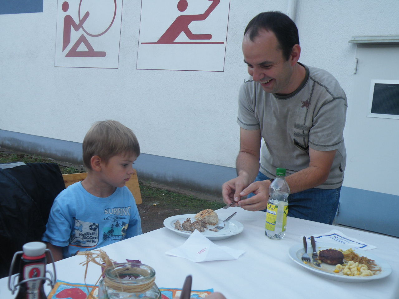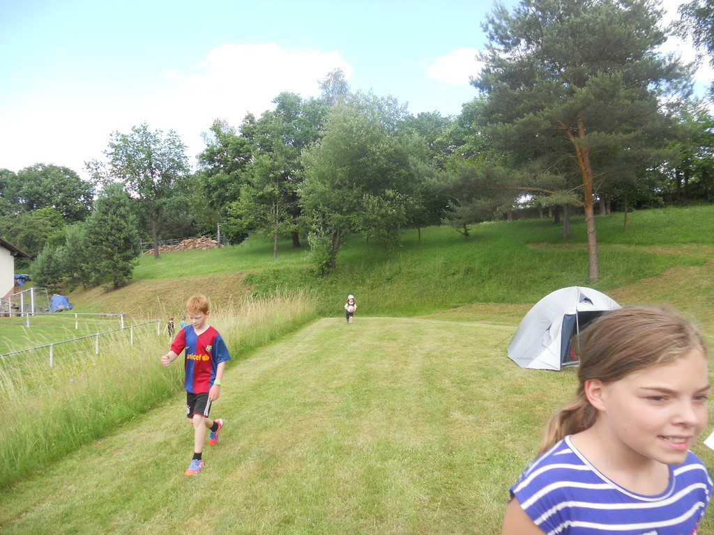 Der Samstag begann mit Brötchen, Marmelade, Nutella, Milch und Kakao. Derart gestärkt wurden die U11-Spieler des FV Kickers 1949 Laudenbach e. V. während ihres Spiels kräftig angefeuert. Anschließend gingen die Kinder mit Hilfe einer Schatzkarte in den Wald auf Schatzsuche und wurden mit Gummibärchen und Kaubonbons belohnt. Danach war wieder Zeit für freies Toben, Spielen oder einfach nur Ausruhen und schauen, was die anderen so treiben. Zwischenzeitlich wurde das Mittagessen zubereitet. Bei so vielen Kindern keine Frage, was es gab: Spaghetti mit Tomatensoße. Für zwischendurch wurden Gemüsesticks geschnippelt und wer Lust auf Süßes hatte, konnte Kuchen essen.