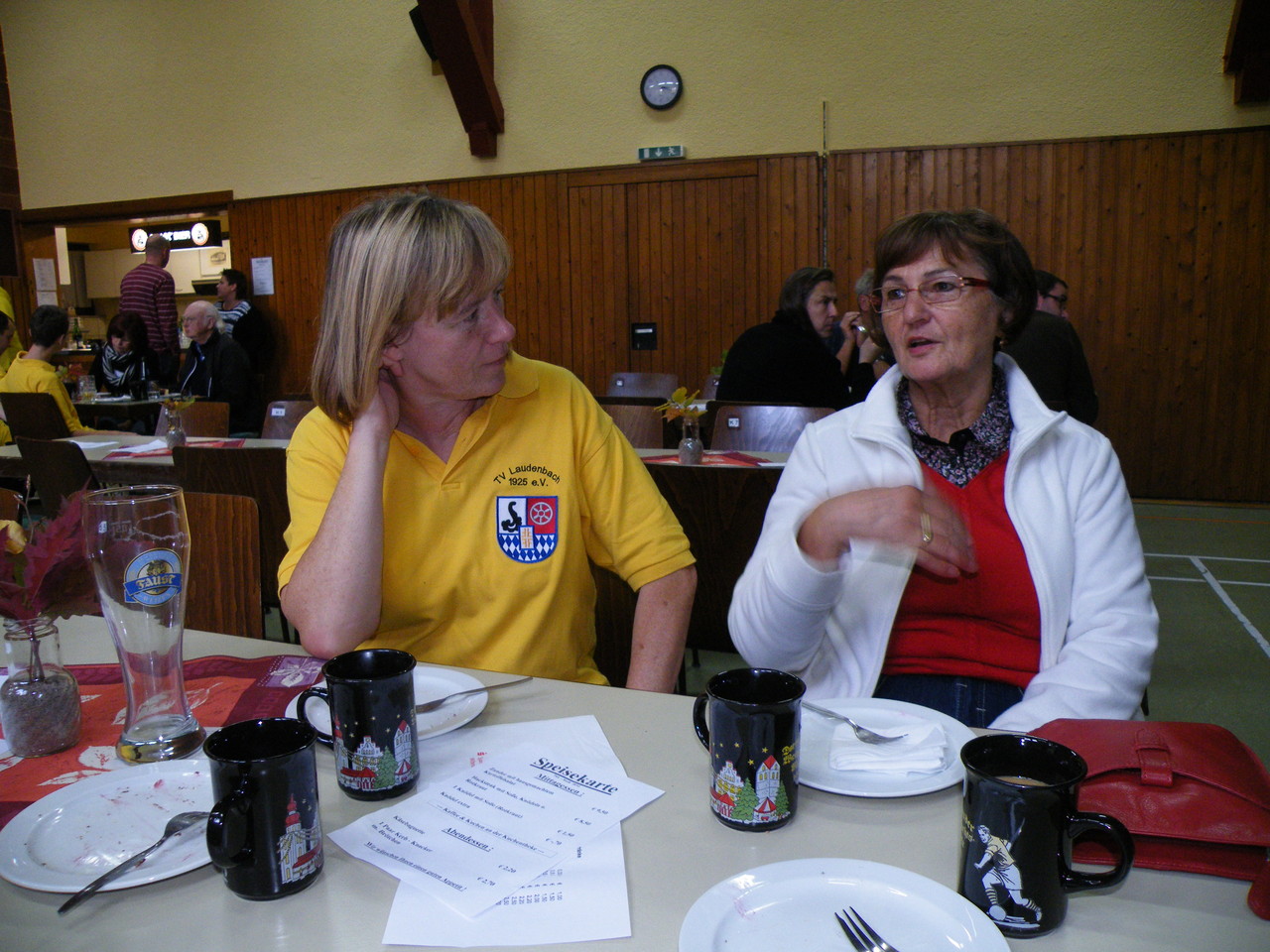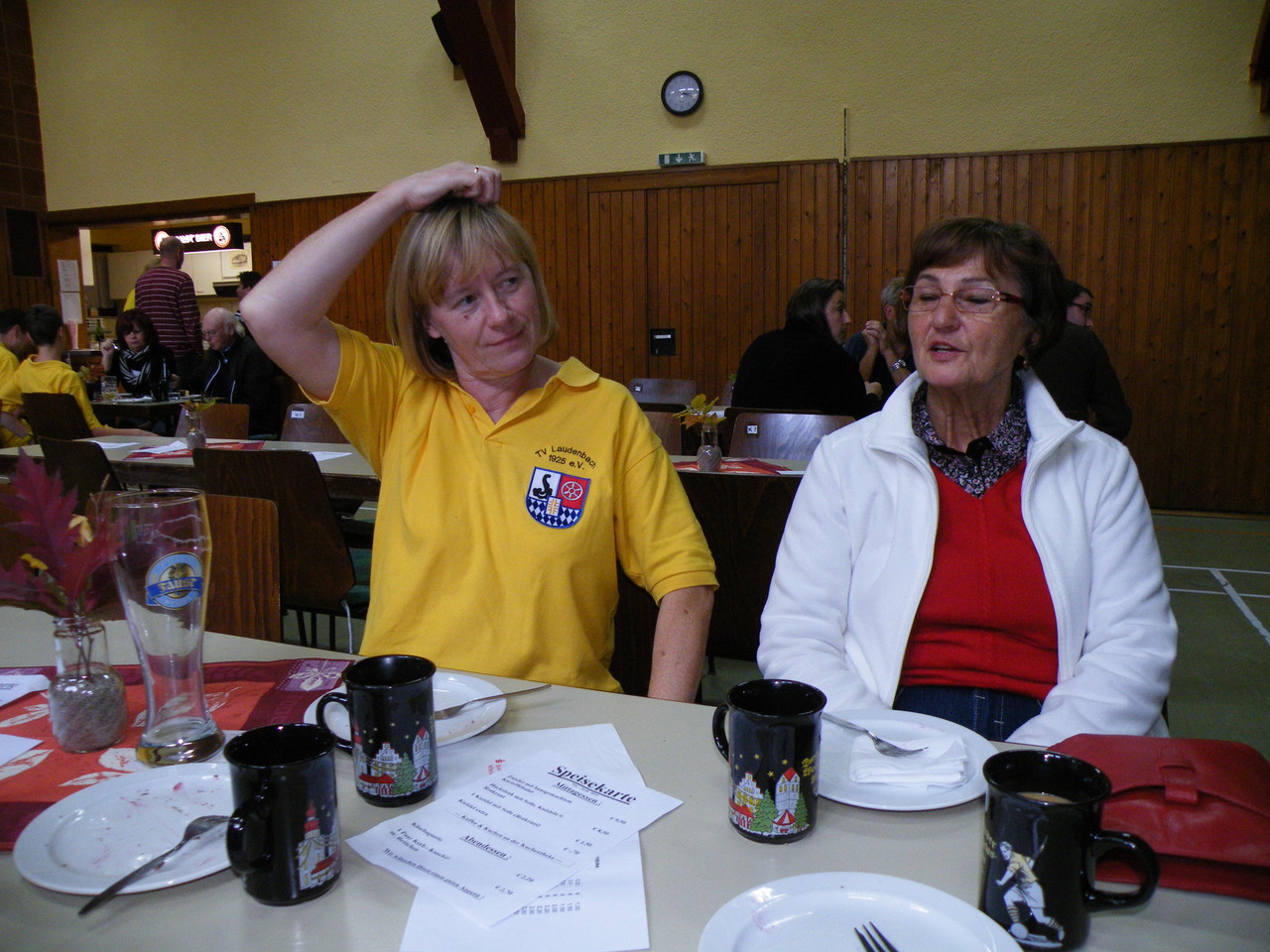 Am 21.10.12 fand in der neu renovierten Turnhalle des TVL wieder die alljährliche Kerb mit Ehrungen langjähriger Mitglieder statt. Wie jedes Jahr war die Veranstaltung zur Mittagszeit gut besucht und Zander mit Kartoffelsalat bzw. Hackbraten mit Rotkraut und Klößen gingen weg wie warme Semmeln. Aber leider änderte auch die angekündigte Dia-Show der Hallenrenovierung nichts daran, dass sich die Halle nach dem Mittagessen doch ziemlich schnell leerte und weder zur Kaffeezeit noch zu den Ehrungen am Abend viele Besucher den Weg in die Turnhalle fanden. Es ist doch schade, jedes Jahr erneut festzustellen, dass nach dem Mittagessen kaum Laudenbacher den Weg zur Turnhalle mit einem kleinen Spaziergang verbinden, um dort einen Kaffee zu trinken, ein Stück aus dem vielfältigen Kuchenangebot zu essen und evtl. sogar noch bis zu den frühen Abendstunden zu bleiben, um die Ehrungen langjähriger Mitglieder zu verfolgen.