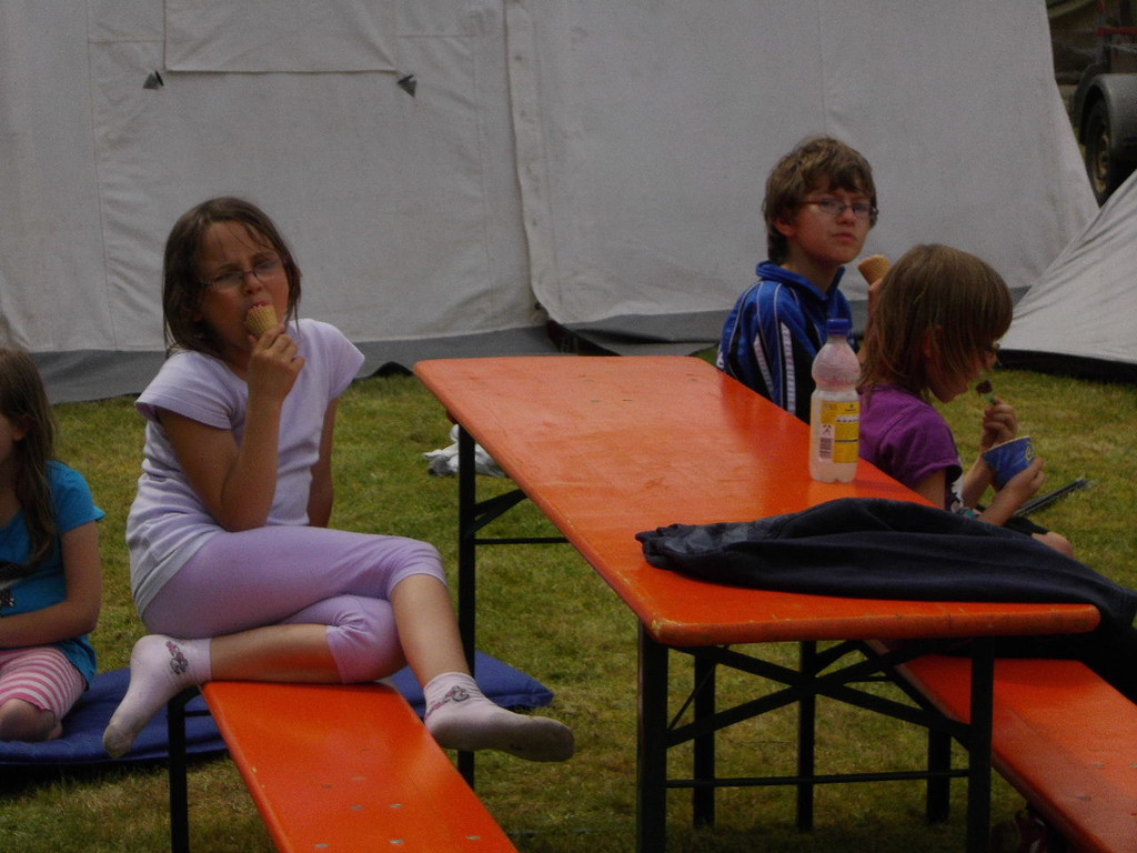 Dann wurde es schon langsam Zeit zum Aufräumen. Um 14:00 Uhr kam das Eismobil und jeder konnte sich dort ein Eis abholen, bevor die restlichen Zelte abgebaut wurden. Um 15:00 Uhr gingen die Kinder müde, aber glücklich über diese beiden schönen Tage, nach Hause.