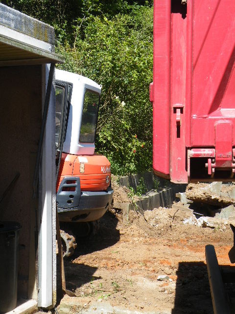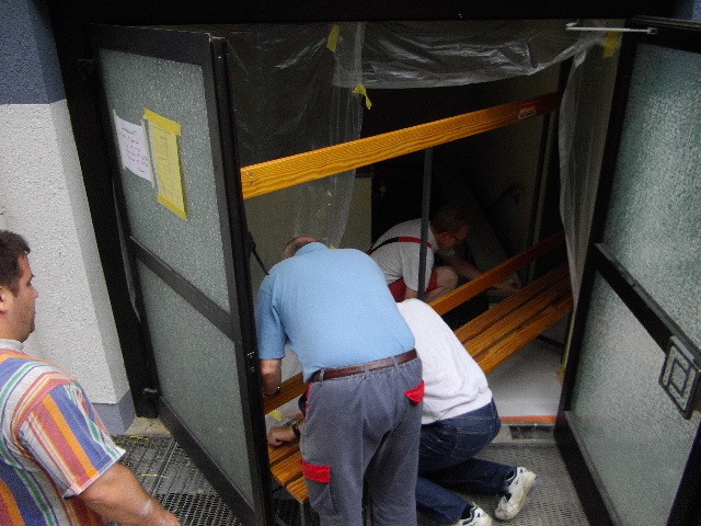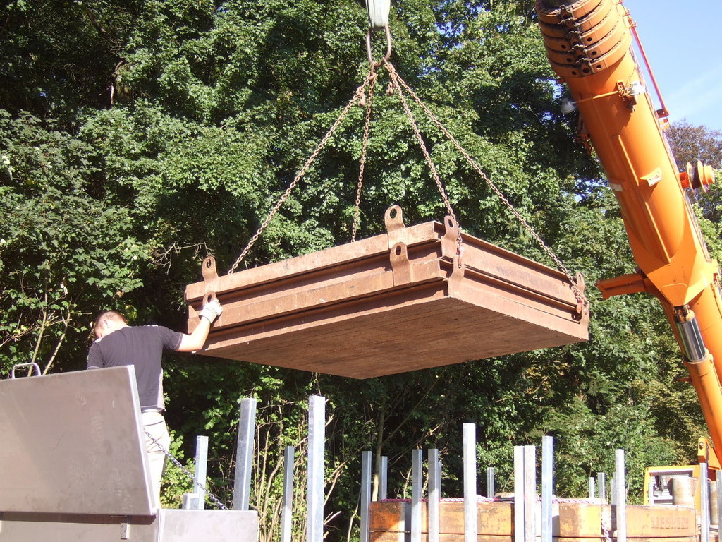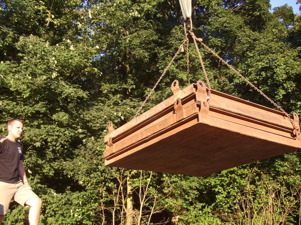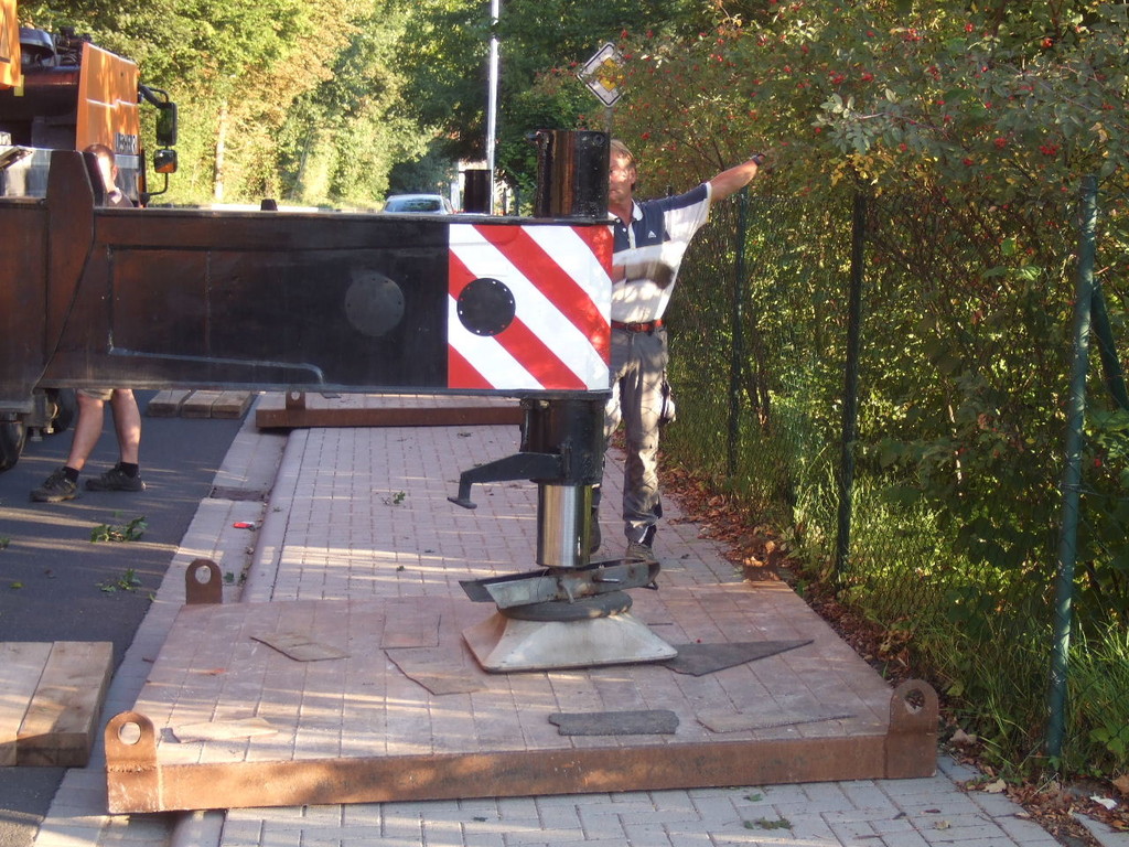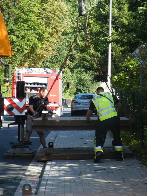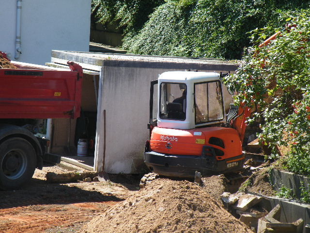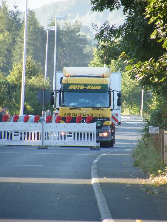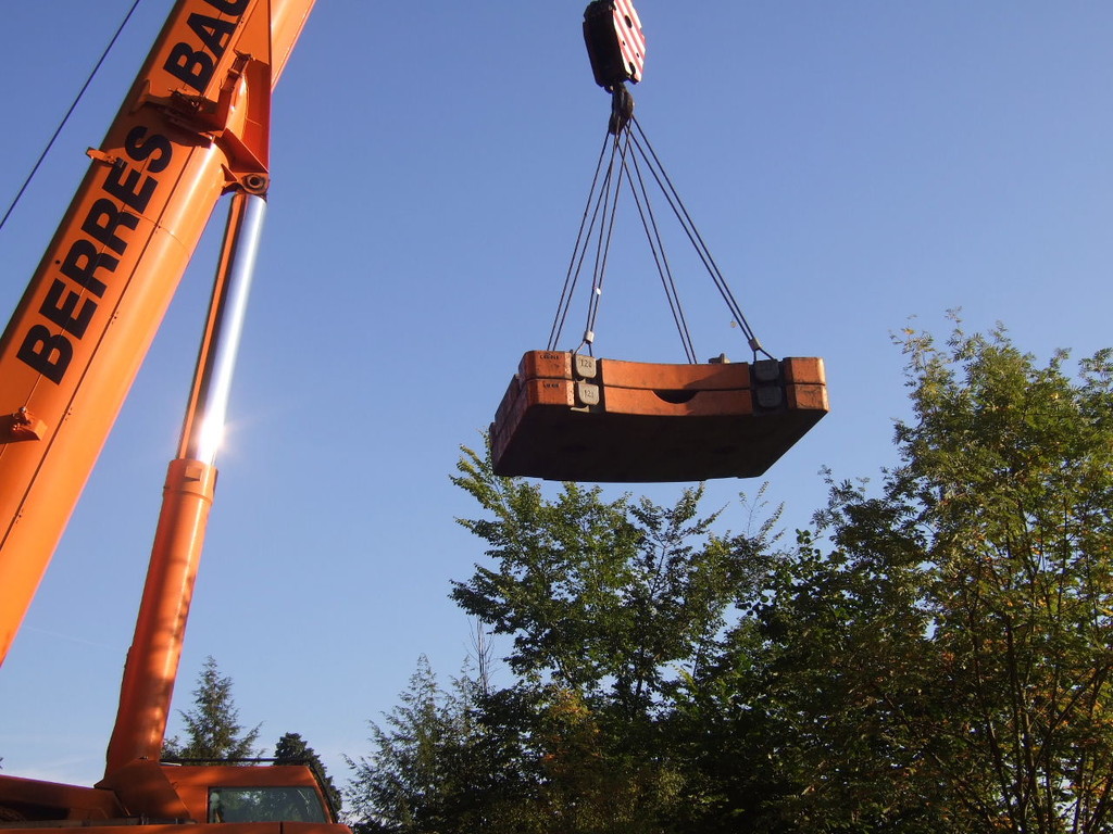 Am Samstag, 18.08.12 wurde endlich die neue Garage geliefert. Schon kurz nach 6:00 Uhr war die Freiwillige Feuerwehr Laudenbach unterwegs, um die Straße abzusperren und den Verkehr umzuleiten, da wegen der Größe des Krans eine Vollsperrung der Miltenberger Straße nötig war. Kurz vor 7:00 Uhr kam der große Kran der Fa. Berres. Innerhalb kurzer Zeit war er einsatzbereit aufgebaut. Da die Firma Zapf pünktlich die Garage lieferte, konnte diese sofort an den ihr zugedachten Platz gehoben werden, was reibungslos und vor allem schnell ablief. Um ca. 8:30 Uhr konnte die Straßensperrung wieder aufgehoben werden. Danke an alle Helfer, die sich bereit erklärt haben, den Turnverein zu so früher Stunde zu unterstützen.