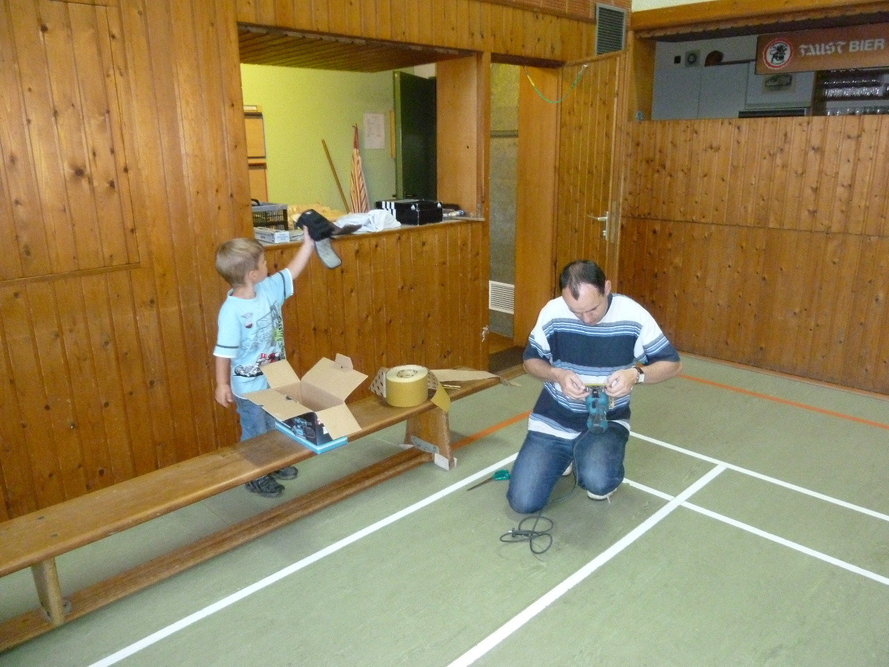 In den Sommerferien wird die Turnhalle renoviert und eine zusätzliche Garage geliefert. Ein Danke schön schon mal an Bernd, Marco und Frank für die vielen Arbeitsstunden. Natürlich auch an alle anderen, die den dreien geholfen haben.