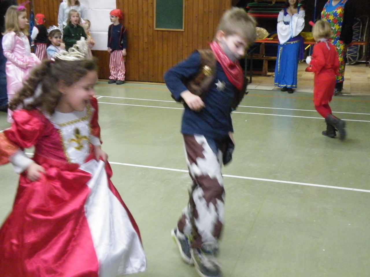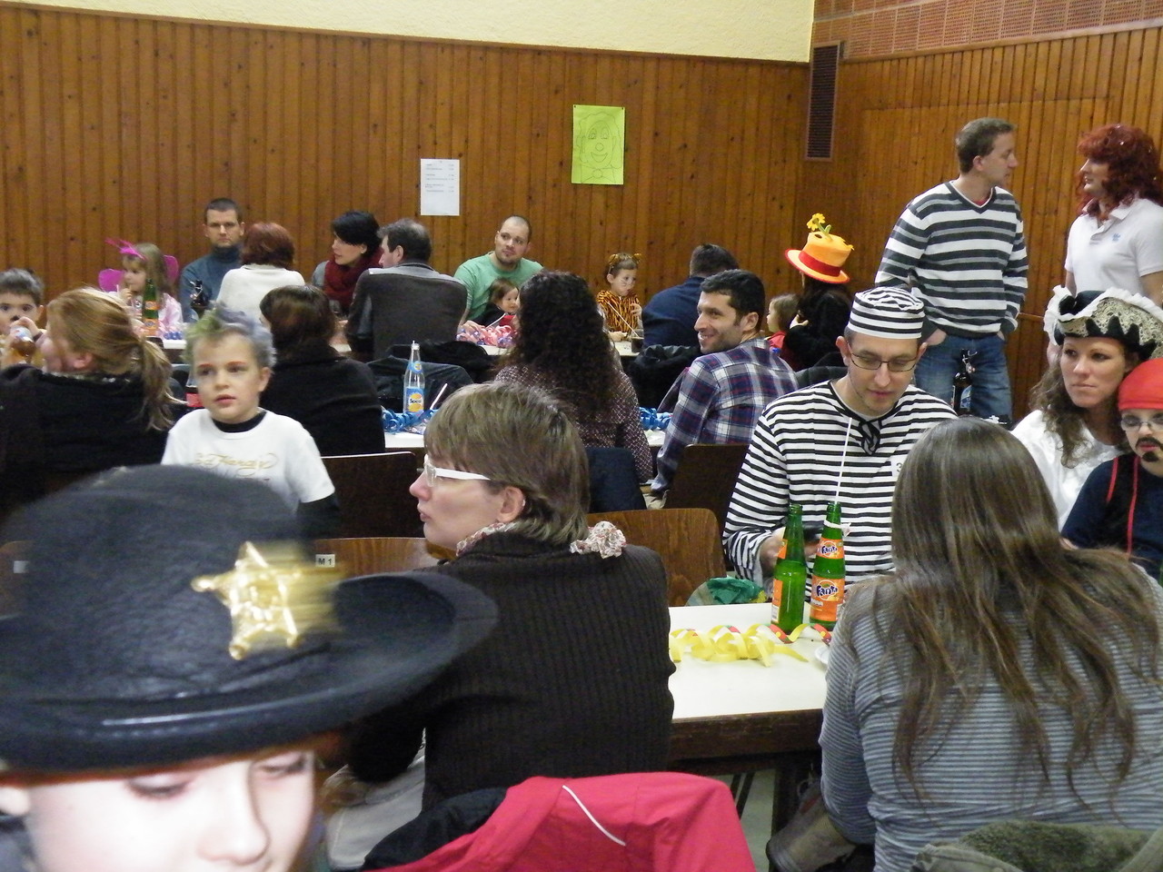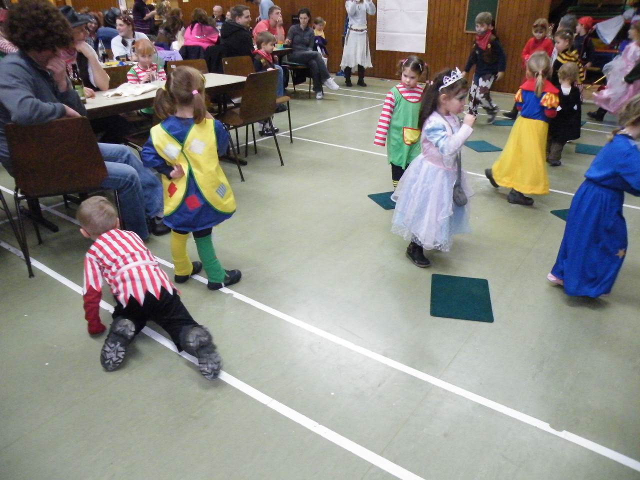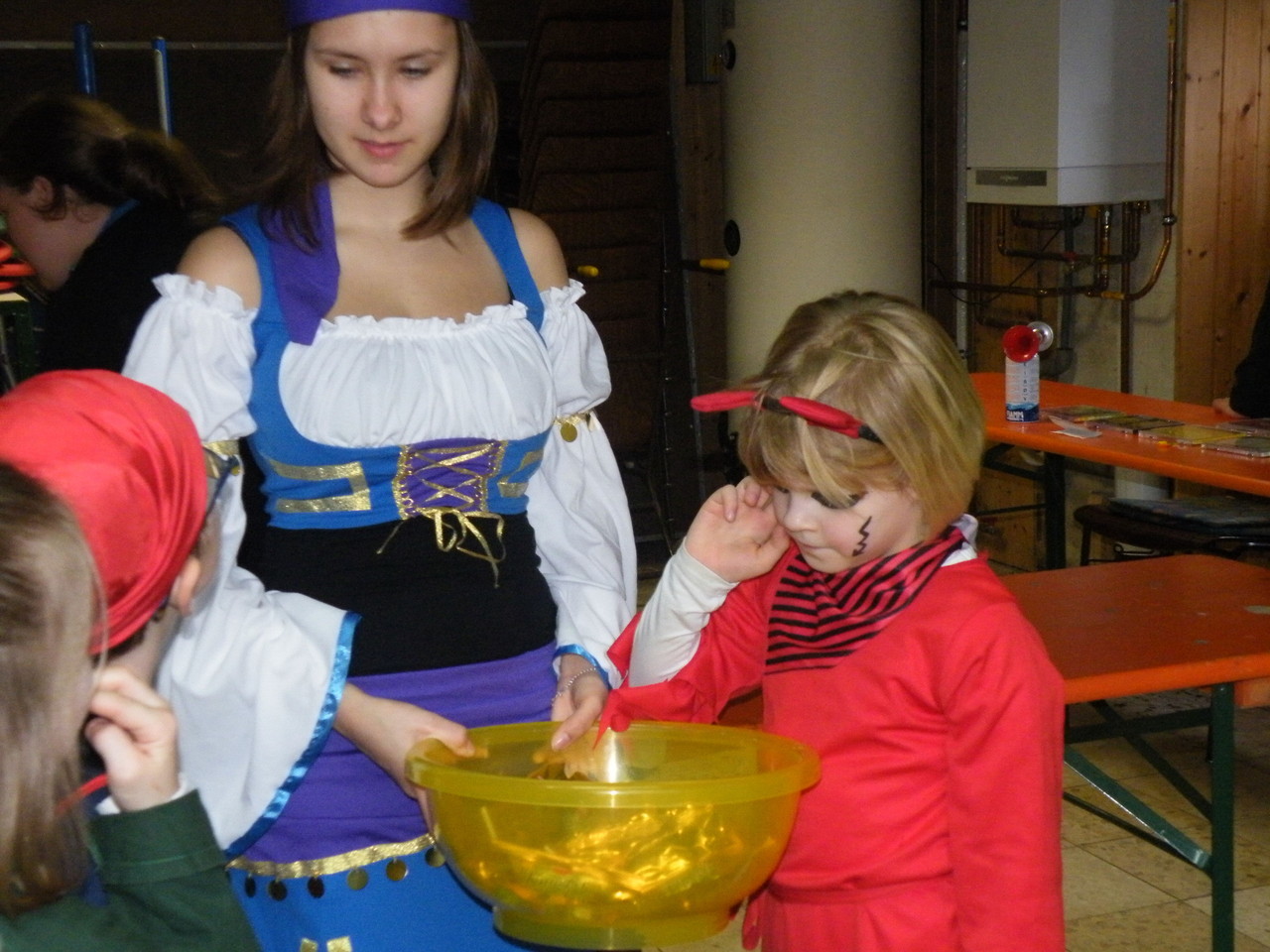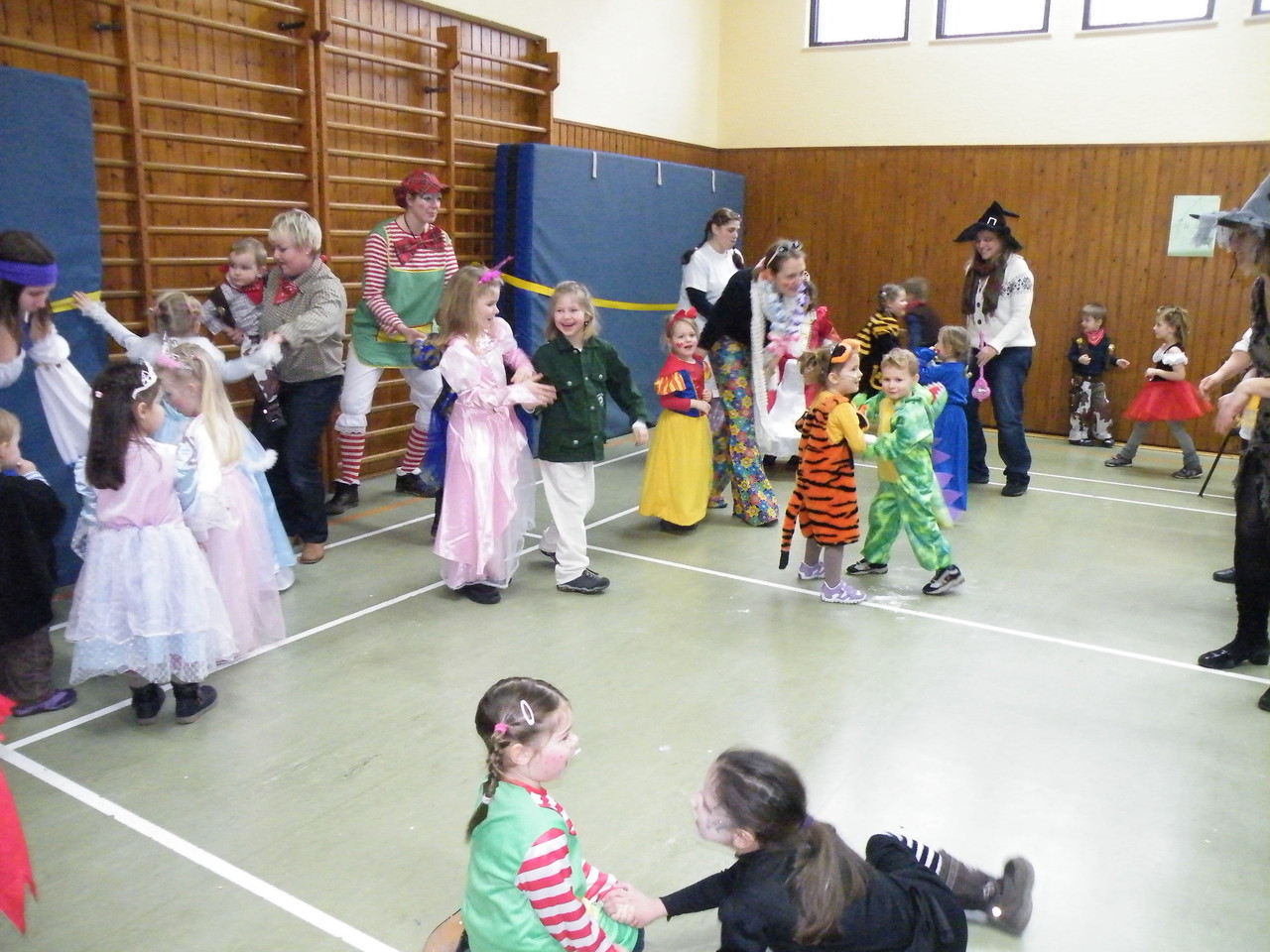 Weiter ging es mit Spielen für die kleinen Narren, wie z. B. Limbo, Reise nach Jerusalem, Luftballon-Wettrennen und Bilder ausmalen. Natürlich gab es dieses Jahr wieder ein Schätzspiel, bei dem das Gesamtgewicht der 1. und 2. Vorsitzenden des Turnvereins geschätzt werden sollte. Wie immer bei Schätzspielen war hier die Spanne des geschätzten Gewichts sehr groß. Gegen 17 Uhr kam es zur Auflösung des Schätzspiels, da zu diesem Zeitpunkt doch schon einige Narren den Heimweg angetreten hatten. Mit Hilfe einer alten Kartoffelwaage (Dezimalwaage), die Georg Breitenbach freundlicherweise zur Verfügung gestellt hat, wurden die 1. und 2. Vorsitzende gewogen. Dabei konnten die Kinder die einzelnen Gewichte auf die Waage stellen. Anschließend wurden die so ermittelten Ergebnisse zusammen gezählt. Nach der Überreichung der Preise (1. Platz Josefina Schneider, 2. Platz Natalie Schädlich, 3. Platz Antonia Ludwig) löste sich die Gesellschaft sehr schnell auf und die fleißigen Helfer konnten mit dem Aufräumen der Halle beginnen.