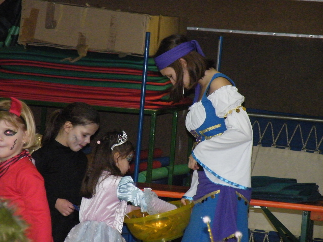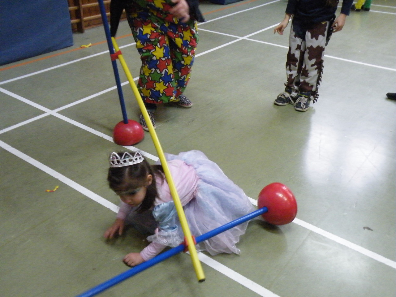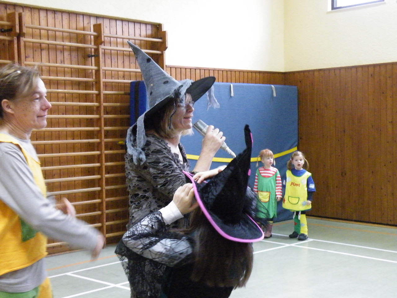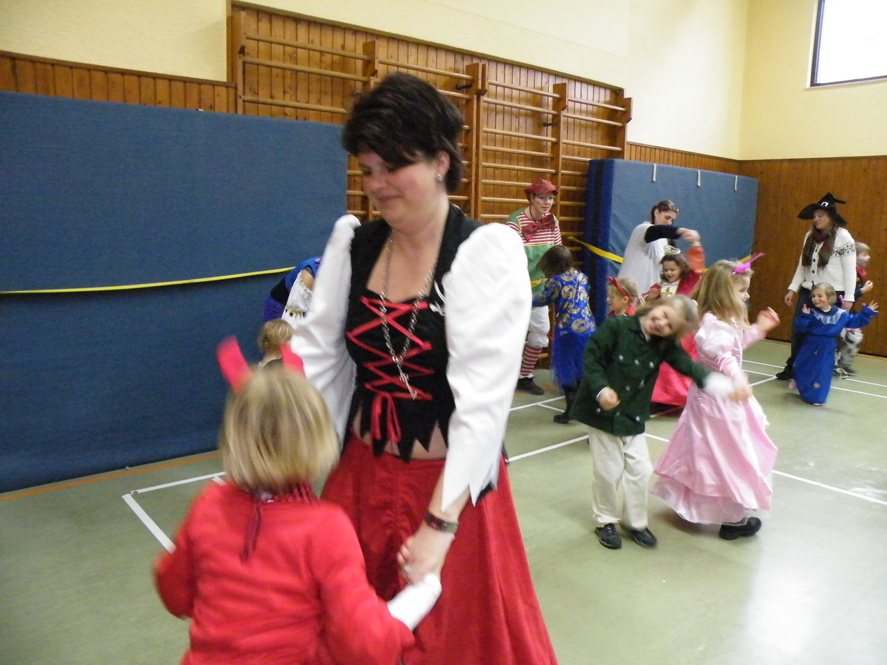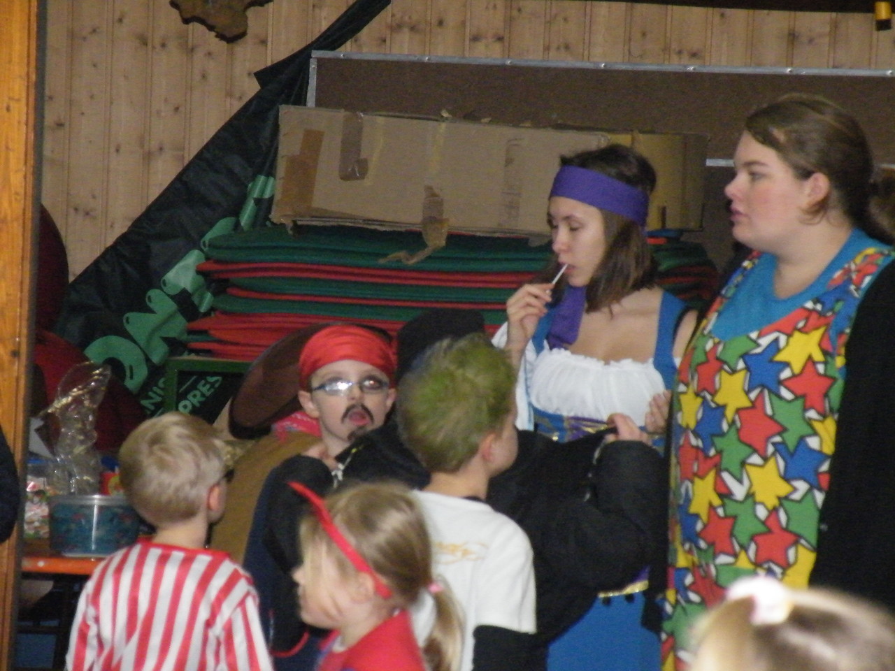 Weiter ging es mit Spielen für die kleinen Narren, wie z. B. Limbo, Reise nach Jerusalem, Luftballon-Wettrennen und Bilder ausmalen. Natürlich gab es dieses Jahr wieder ein Schätzspiel, bei dem das Gesamtgewicht der 1. und 2. Vorsitzenden des Turnvereins geschätzt werden sollte. Wie immer bei Schätzspielen war hier die Spanne des geschätzten Gewichts sehr groß. Gegen 17 Uhr kam es zur Auflösung des Schätzspiels, da zu diesem Zeitpunkt doch schon einige Narren den Heimweg angetreten hatten. Mit Hilfe einer alten Kartoffelwaage (Dezimalwaage), die Georg Breitenbach freundlicherweise zur Verfügung gestellt hat, wurden die 1. und 2. Vorsitzende gewogen. Dabei konnten die Kinder die einzelnen Gewichte auf die Waage stellen. Anschließend wurden die so ermittelten Ergebnisse zusammen gezählt. Nach der Überreichung der Preise (1. Platz Josefina Schneider, 2. Platz Natalie Schädlich, 3. Platz Antonia Ludwig) löste sich die Gesellschaft sehr schnell auf und die fleißigen Helfer konnten mit dem Aufräumen der Halle beginnen.