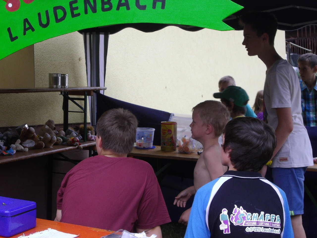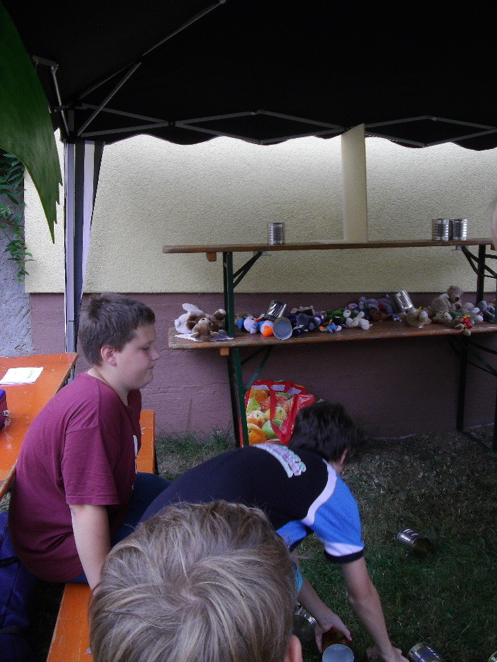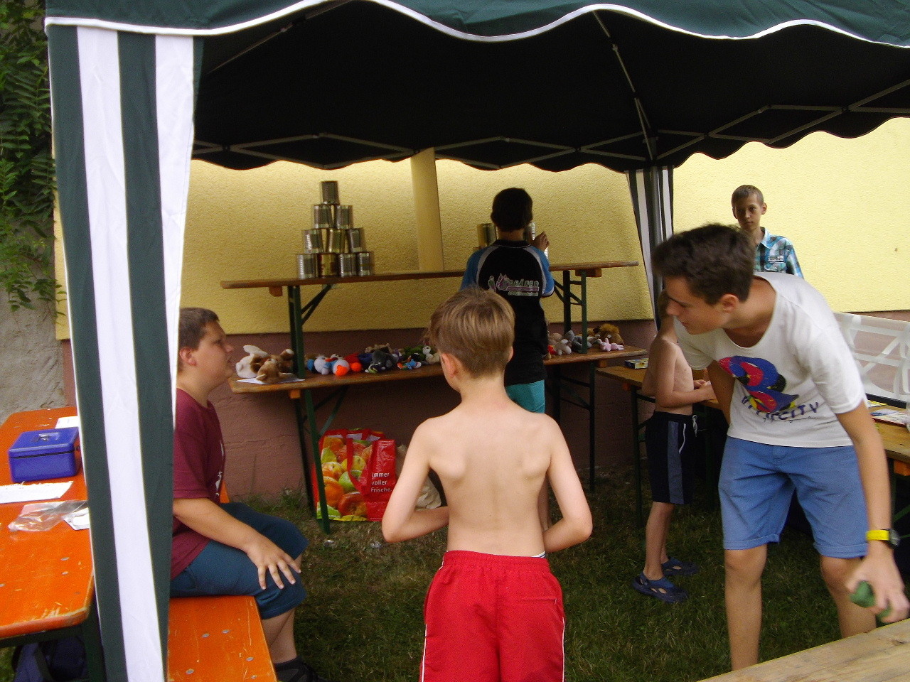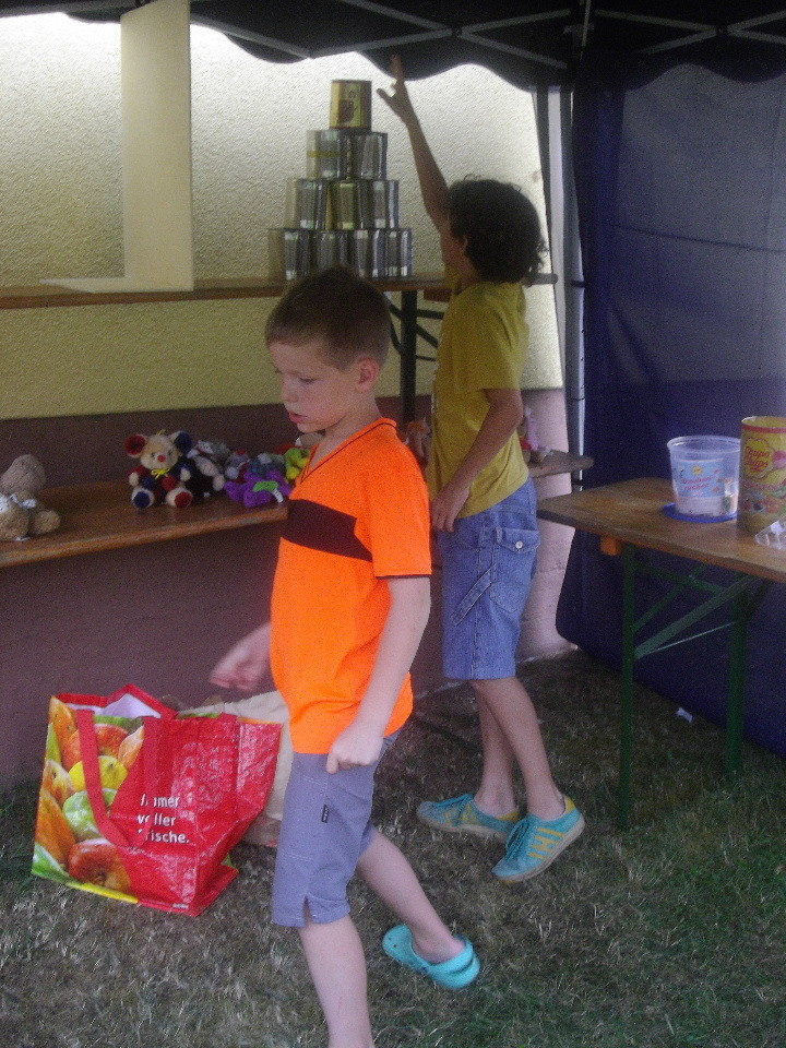 Beim Dosenwerfen an der Wurfbude vertrieben sich viele Kinder die Zeit und die erfolgreichen Werfer wurden mit verschiedenen kleinen Gewinnen belohnt.