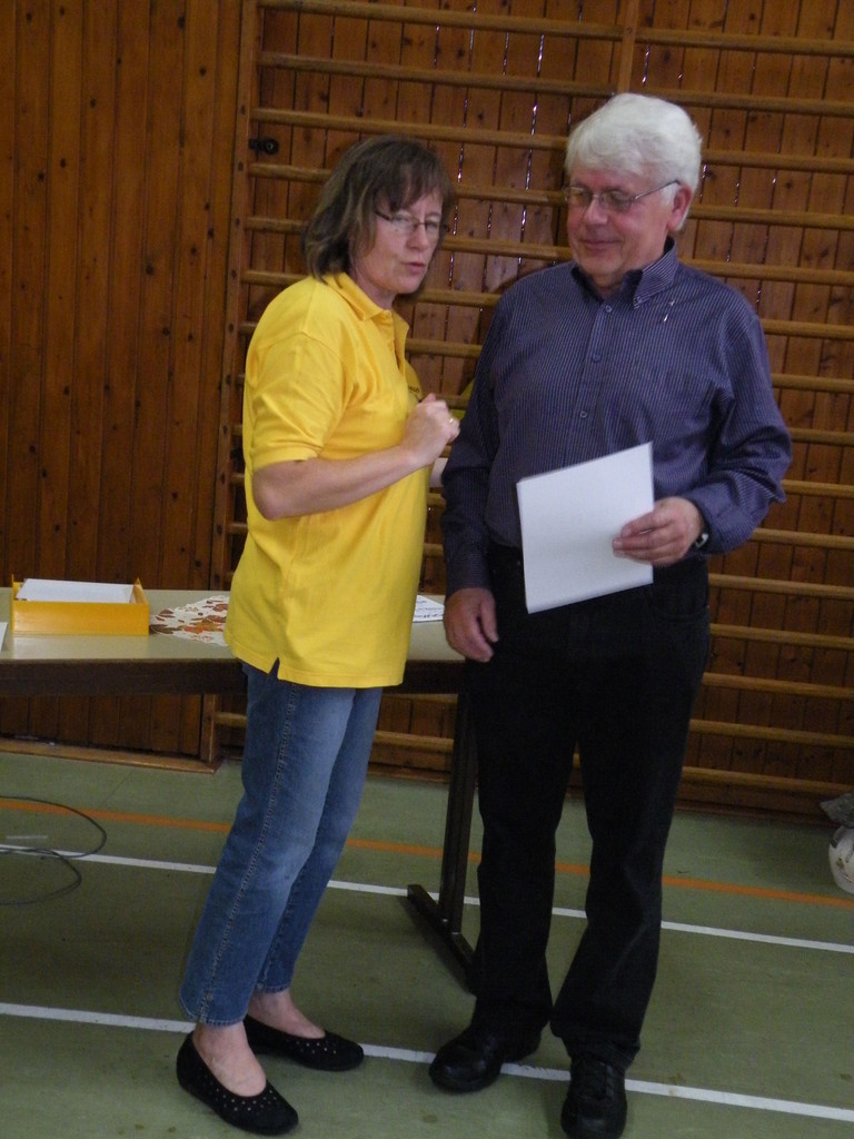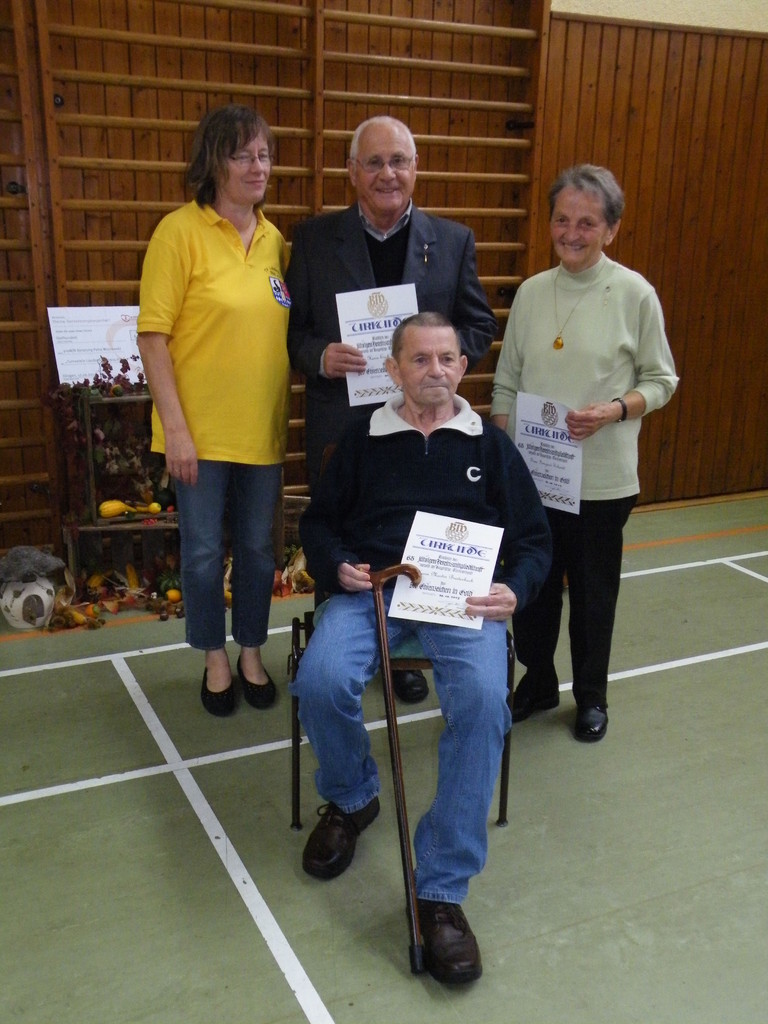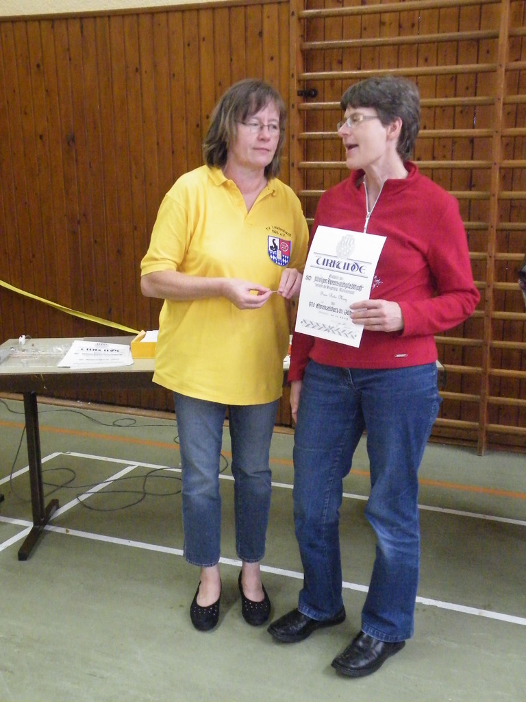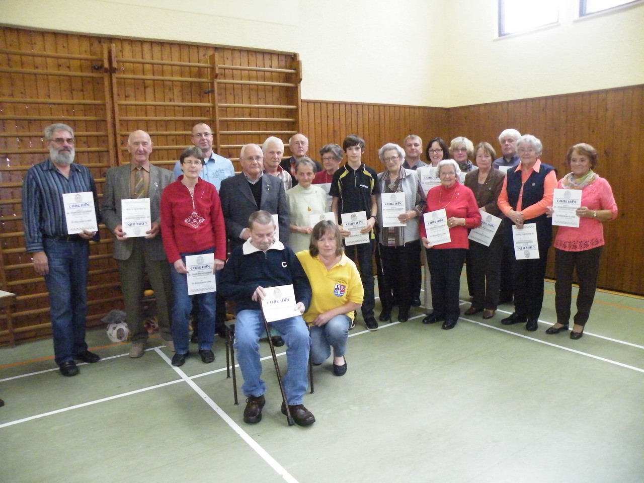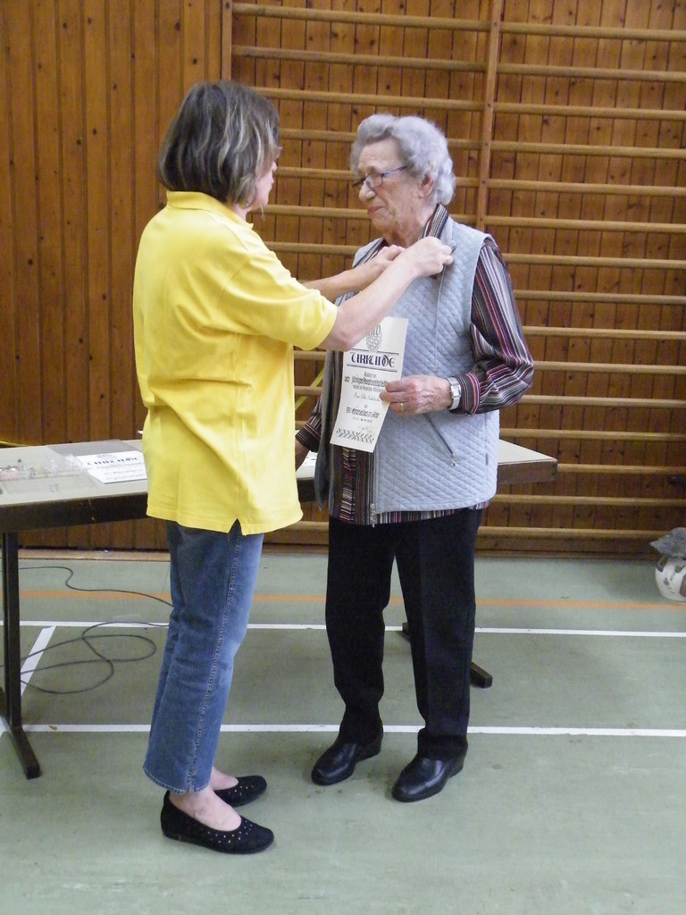 Insgesamt 52 Mitglieder hätten an diesem Tag in der Turnhalle geehrt werden können, aber natürlich haben nicht alle Zeit gefunden. Es waren aber viele persönlich anwesend, die von der 1. Vorsitzenden, Beate Picard, eine Ehrennadel und Urkunde überreicht bekamen. Als kleine Überraschung gab es für die Geehrten im Anschluss einen Sekt, Sekt-Orange oder auch Orangensaft pur. Im Einzelnen gibt es folgende „Jubilare“ (alle die nicht persönlich erscheinen konnten, erhalten natürlich auch ihre Ehrennadel und Urkunde):