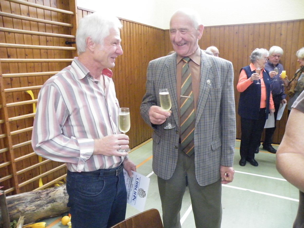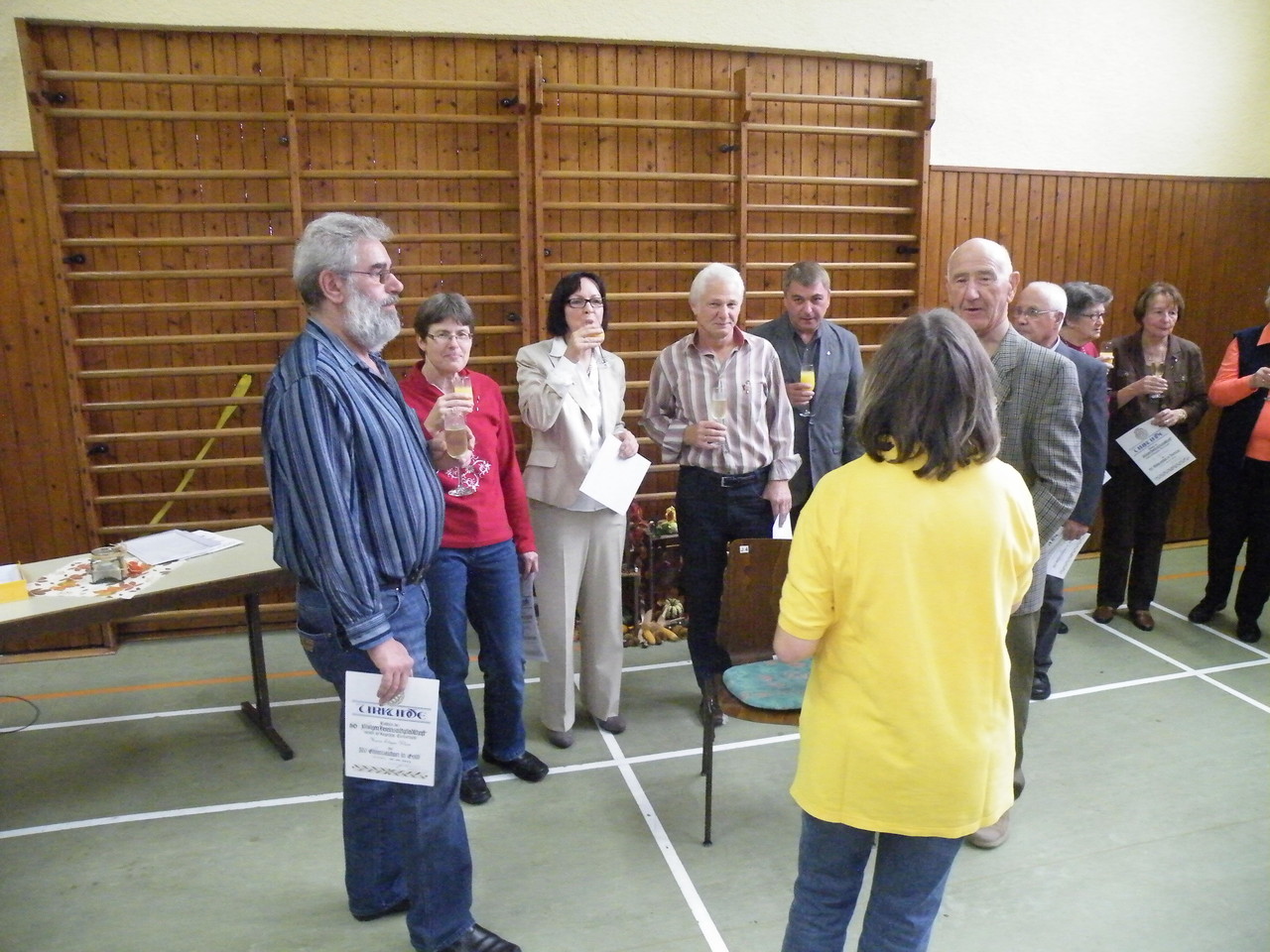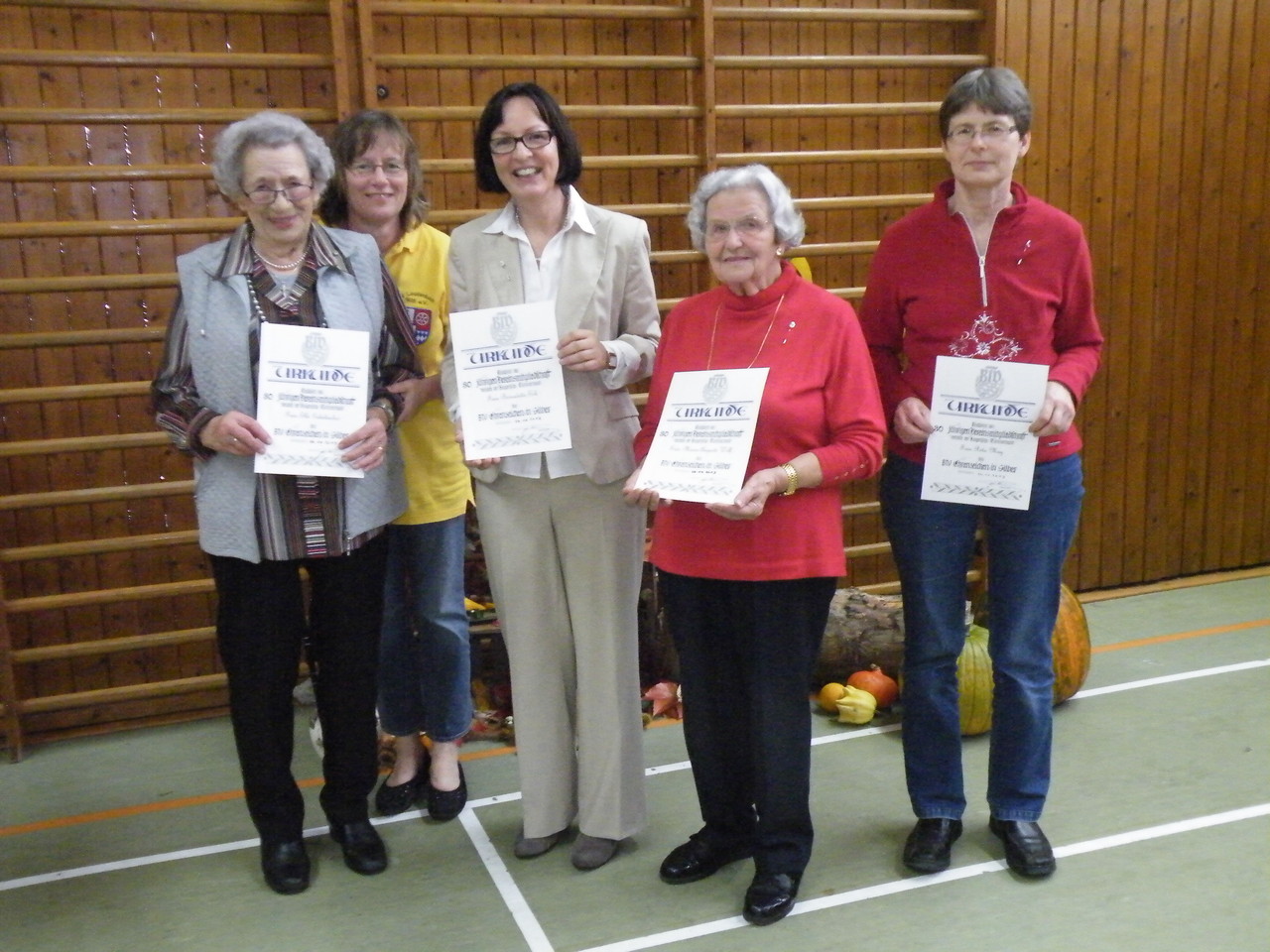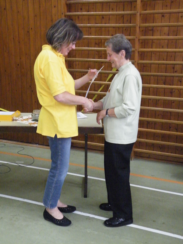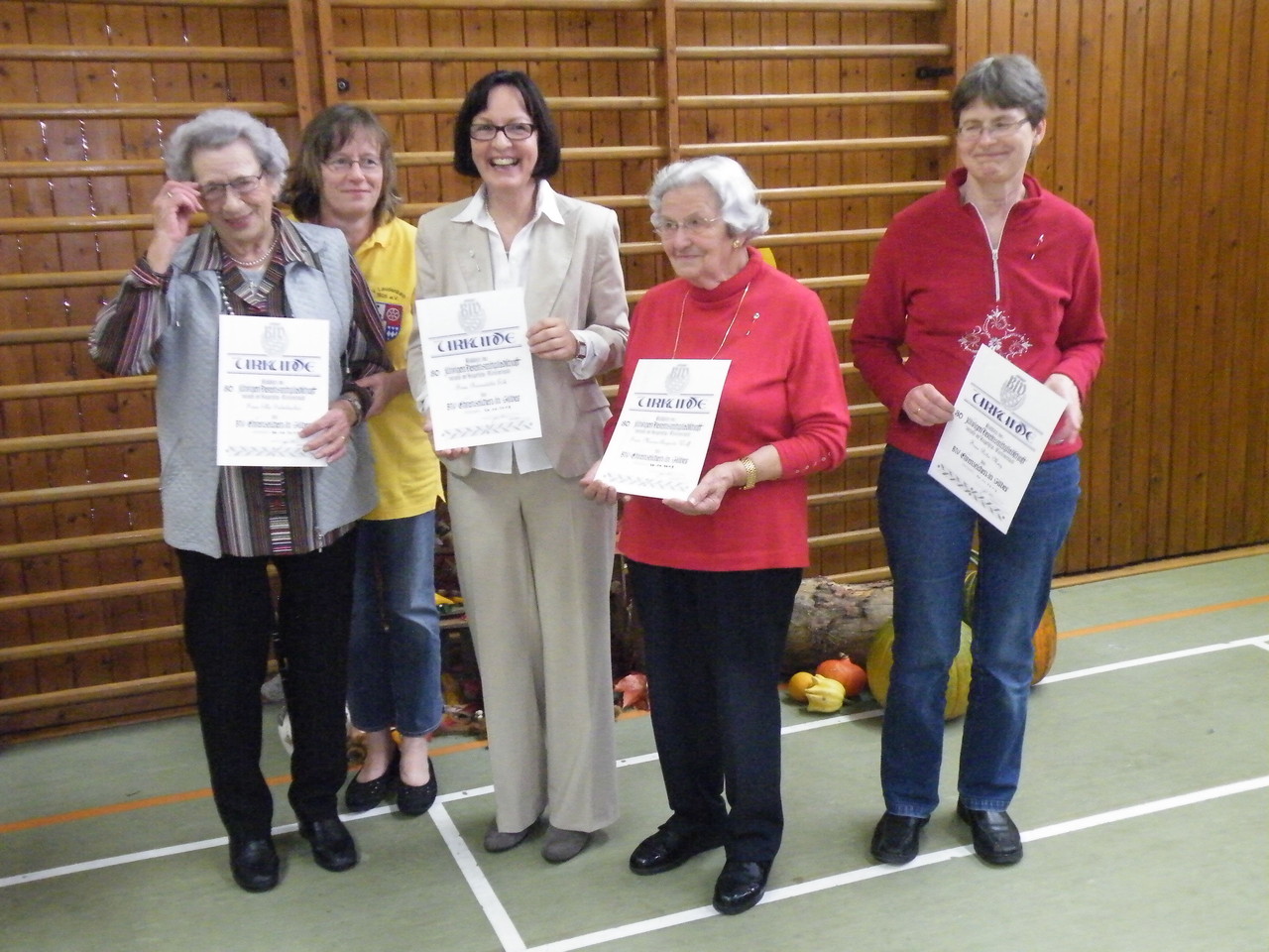 Insgesamt 52 Mitglieder hätten an diesem Tag in der Turnhalle geehrt werden können, aber natürlich haben nicht alle Zeit gefunden. Es waren aber viele persönlich anwesend, die von der 1. Vorsitzenden, Beate Picard, eine Ehrennadel und Urkunde überreicht bekamen. Als kleine Überraschung gab es für die Geehrten im Anschluss einen Sekt, Sekt-Orange oder auch Orangensaft pur. Im Einzelnen gibt es folgende „Jubilare“ (alle die nicht persönlich erscheinen konnten, erhalten natürlich auch ihre Ehrennadel und Urkunde):
