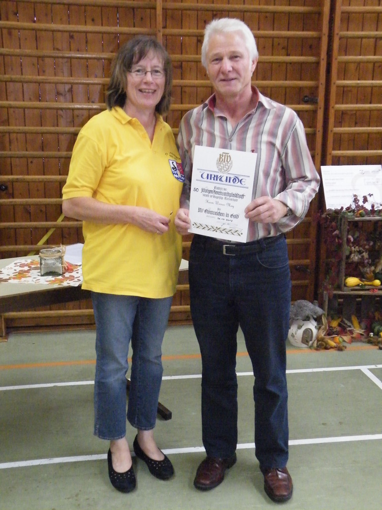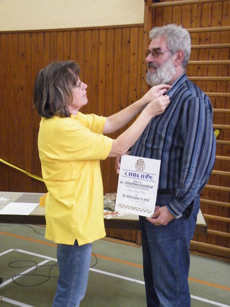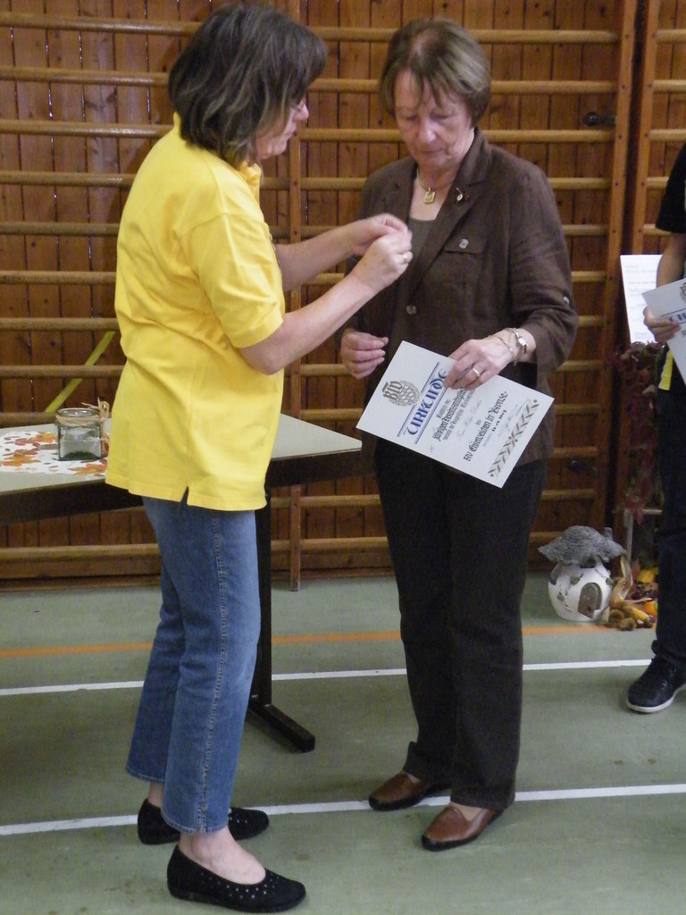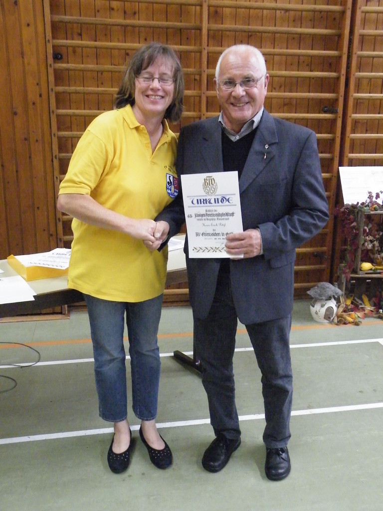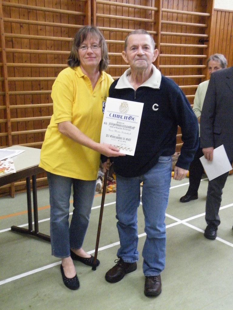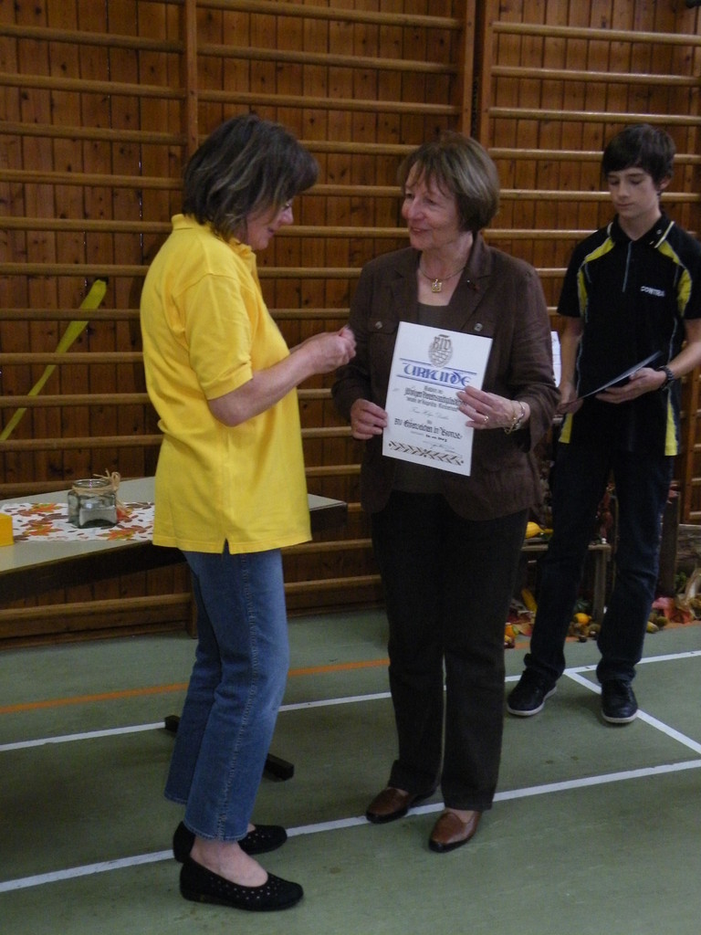 Insgesamt 52 Mitglieder hätten an diesem Tag in der Turnhalle geehrt werden können, aber natürlich haben nicht alle Zeit gefunden. Es waren aber viele persönlich anwesend, die von der 1. Vorsitzenden, Beate Picard, eine Ehrennadel und Urkunde überreicht bekamen. Als kleine Überraschung gab es für die Geehrten im Anschluss einen Sekt, Sekt-Orange oder auch Orangensaft pur. Im Einzelnen gibt es folgende „Jubilare“ (alle die nicht persönlich erscheinen konnten, erhalten natürlich auch ihre Ehrennadel und Urkunde):
