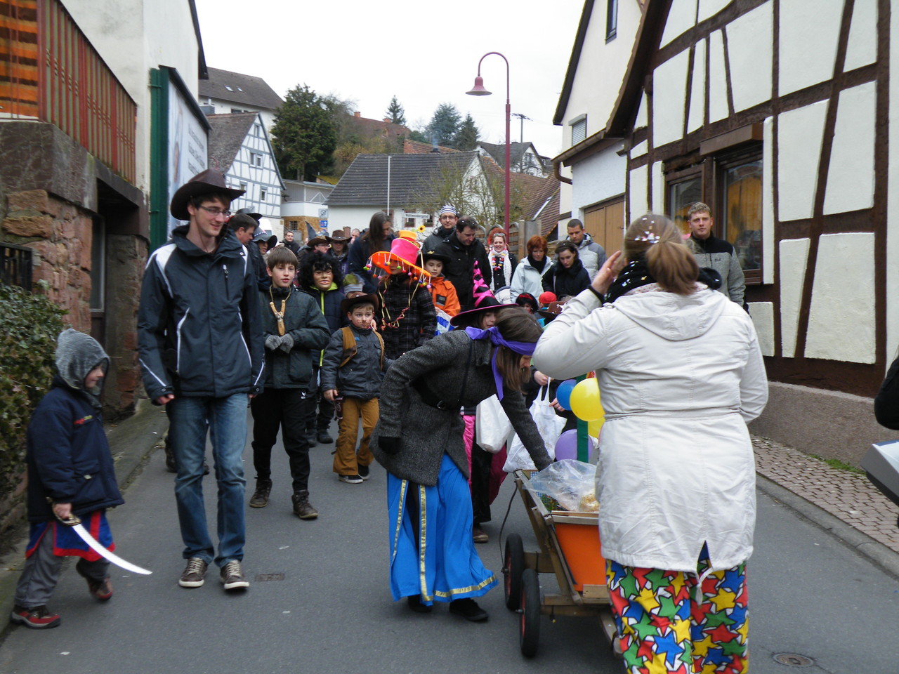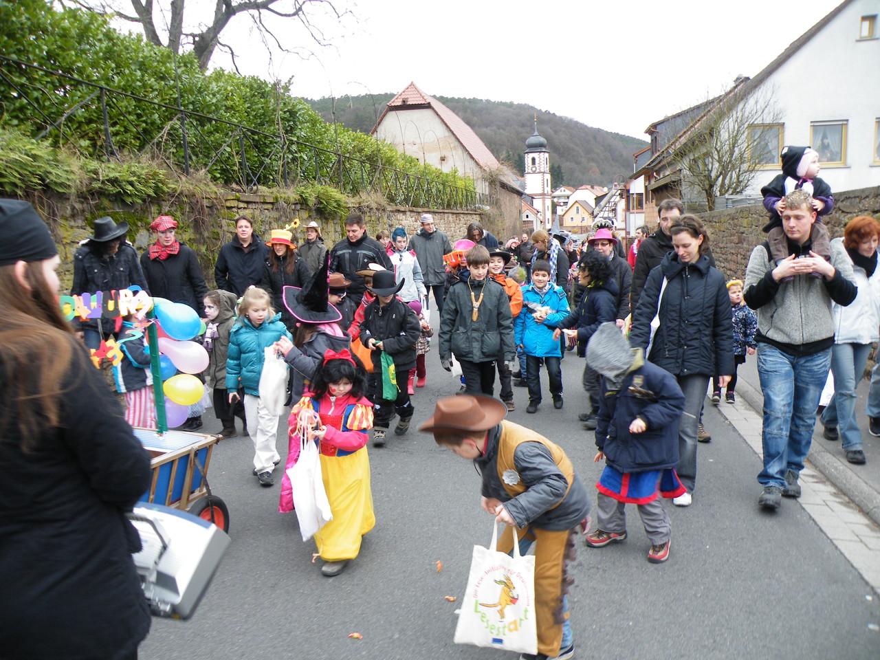 Trotz des eher ungemütlichen Wetters kamen am 03.02.13 viele kleine und große Narren zum Gaudiwurm. Mit Krach, Helau-Rufen und Faschings(leiter)wagen zog der Wurm durch den Mühlweg, Brunnenweg, Bachgasse und Miltenberger Straße zur Turnhalle. Auch dieses Jahr standen auf dem Weg zur Turnhalle wieder einige Zaungäste am Straßenrand.