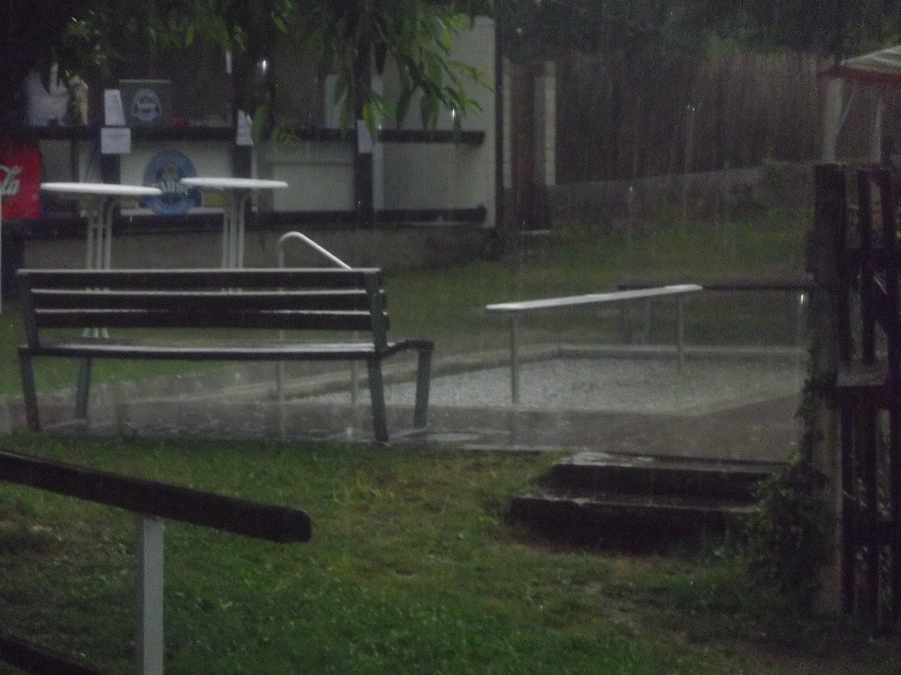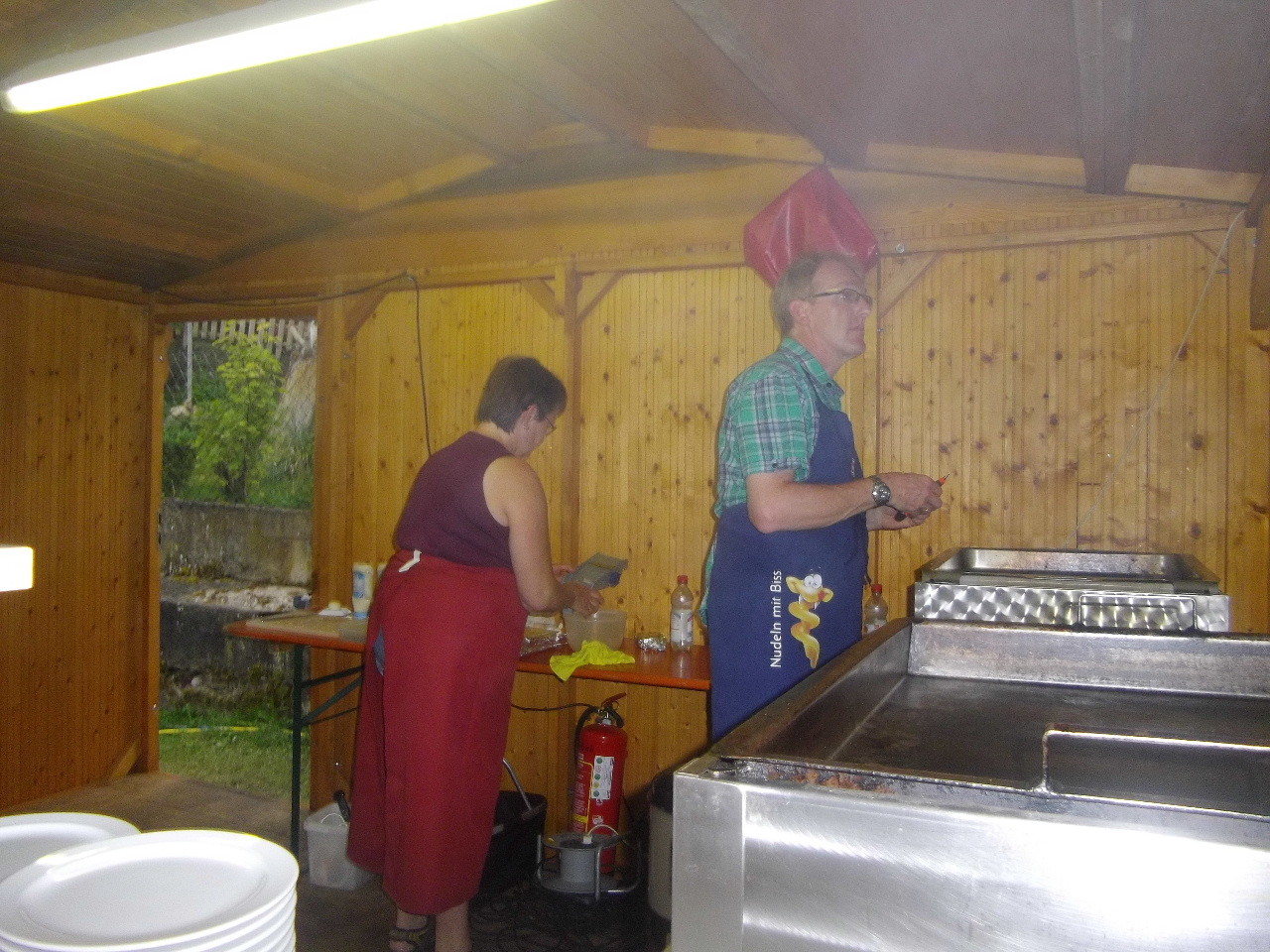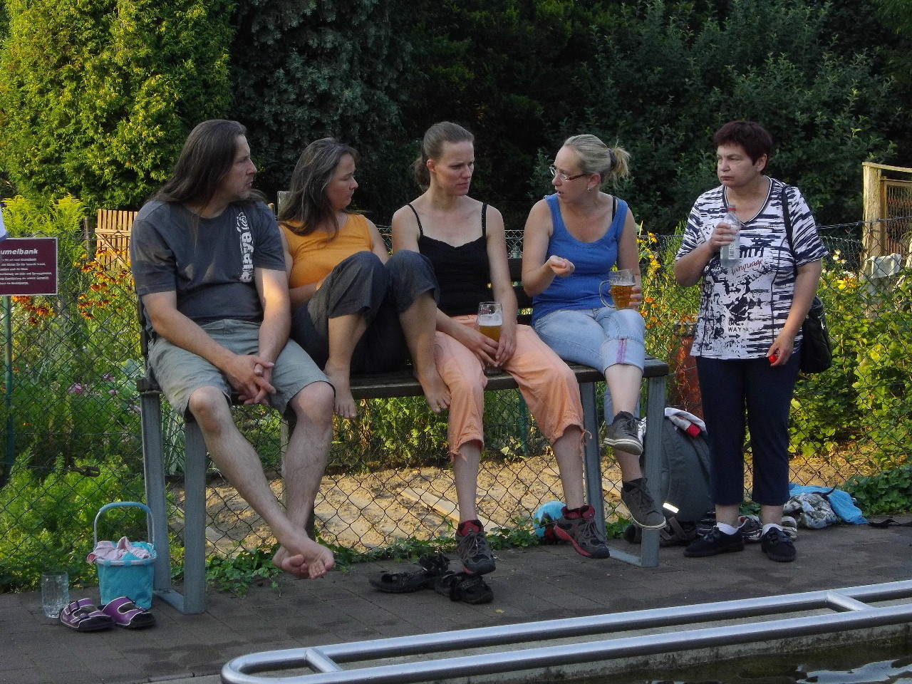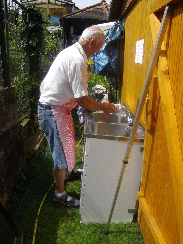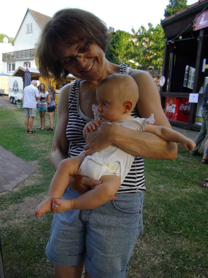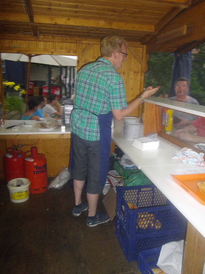Das Tretbecken war ein magischer Anziehungspunkt. Darin tummelten sich am Wochenende Groß und Klein, um bei der Hitze wenigstens etwas Abkühlung zu bekommen. Am Samstag erschienen Punkt 18 Uhr die ersten Festbesucher und innerhalb kurzer Zeit waren die Plätze rund um das Tretbecken gut besetzt. Die Helfer hatten alle Hände voll zu tun, die Besucher mit Essen und Trinken zu versorgen. Im Angebot für die Erwachsenen gab es dieses Jahr auch Bacardi, Wodka und Bowle, was aber nicht ganz so gut angenommen wurde. Bis tief in die Nacht saßen die letzten Besucher im Zelt.