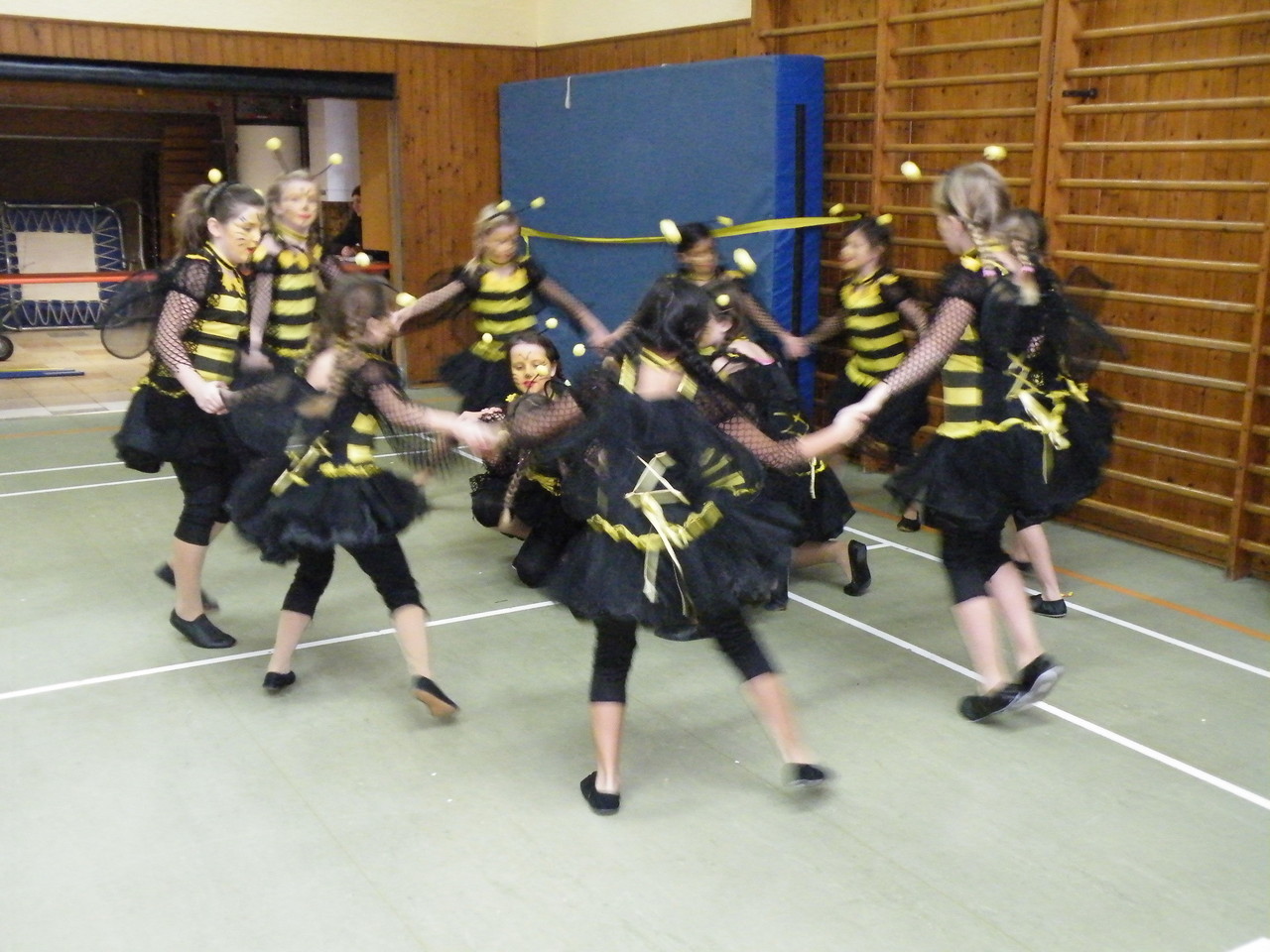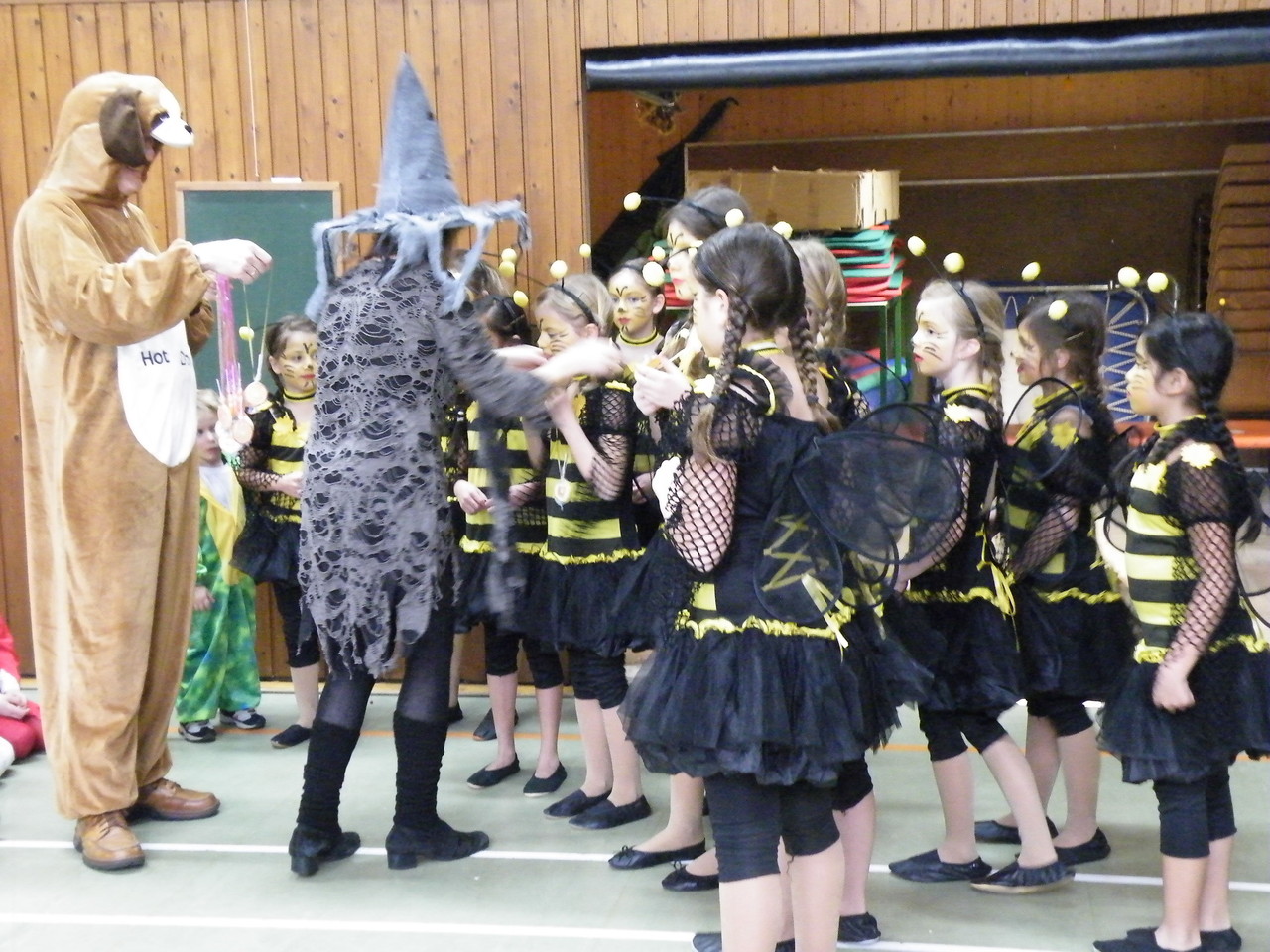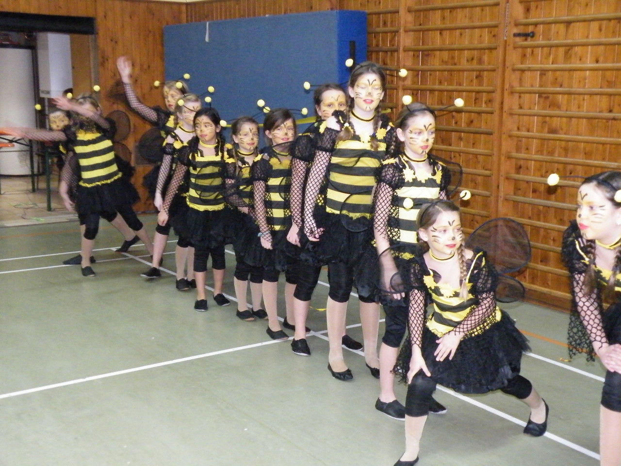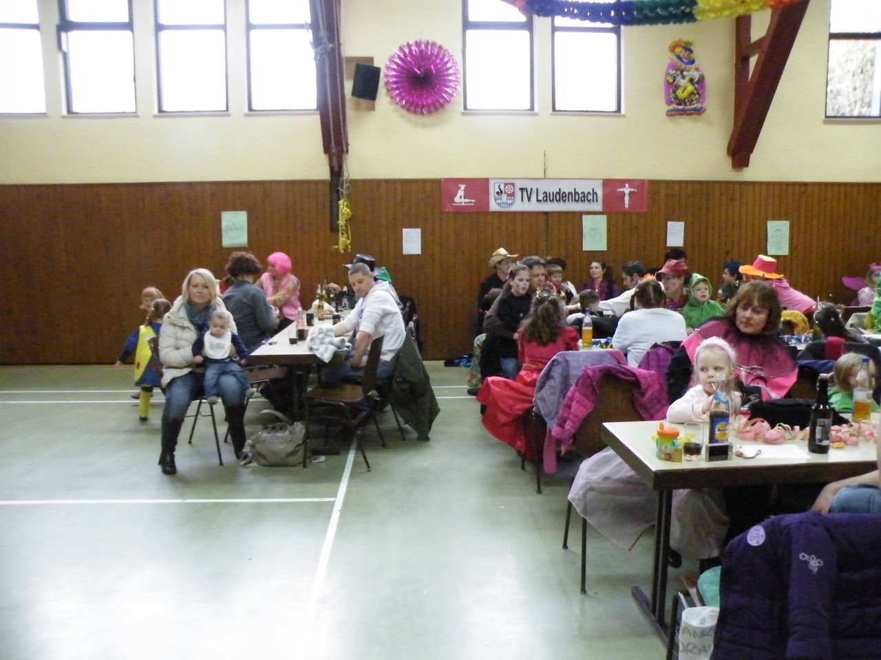 Es dauerte eine Weile, bis sich in der Turnhalle alle sortiert und einen Platz gefunden hatten. Die fleißigen Bedienungen hatten alle Hände voll zu tun, um alle mit Getränken zu versorgen. Kaum hatten alle ihren Platz gefunden und sich eingerichtet, begrüßte auch schon die 1. Vorsitzende Beate Picard die Faschingsnarren und kündigte den Auftritt der kleinen Garde des Carnevalclubs Röllfeld an, die für die Rüdenauer Minigarde eingesprungen sind. Da der CCR an diesem Tag selbst eine Faschingsveranstaltung hatte, musste die kleinen Tänzerinnen mit ihren Trainerinnen Nicole Stöhr und Michelé Morbitzer recht früh in Laudenbach auftreten. Die Mädchen erfreuten mit dem Tanz „Die süßen Bienchen“. Sogar eine kleine Zugabe haben sich die Zuschauer erklatscht. Ein großes Dankeschön an die kleine Garde und ihre Trainerinnen, dass sie trotz eigener Faschingsveranstaltung beim TV Laudenbach aufgetreten sind.