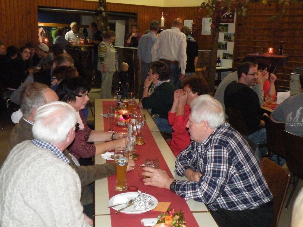 Der Kerbsamstag wurde erfolgreich wiederbelebt. Die herbstlich geschmückte Turnhalle war bis auf den letzten Platz besetzt. Der Außenbereich war durch Fackeln, Kerzenlicht und Lagerfeuer sehr stimmungsvoll und dank des trockenen Wetters ebenfalls gut besucht. Das neue Konzept mit Lakefleisch und Live-Musik hat sich für diesen Abend bewährt. Jung und Alt waren bunt gemischt und ab 20:00 Uhr sorgte die Band „Tschogge & Friends“ dafür, dass auch das Tanzbein geschwungen wurde. Die Stimmung war gut und die Verantwortlichen froh über die große Resonanz. Erst weit nach Mitternacht gingen die letzten Besucher nach Hause.