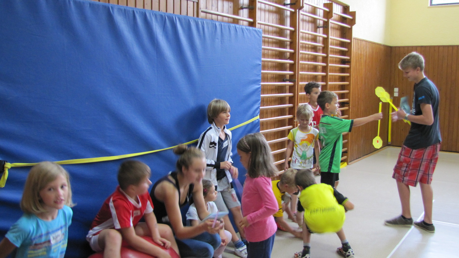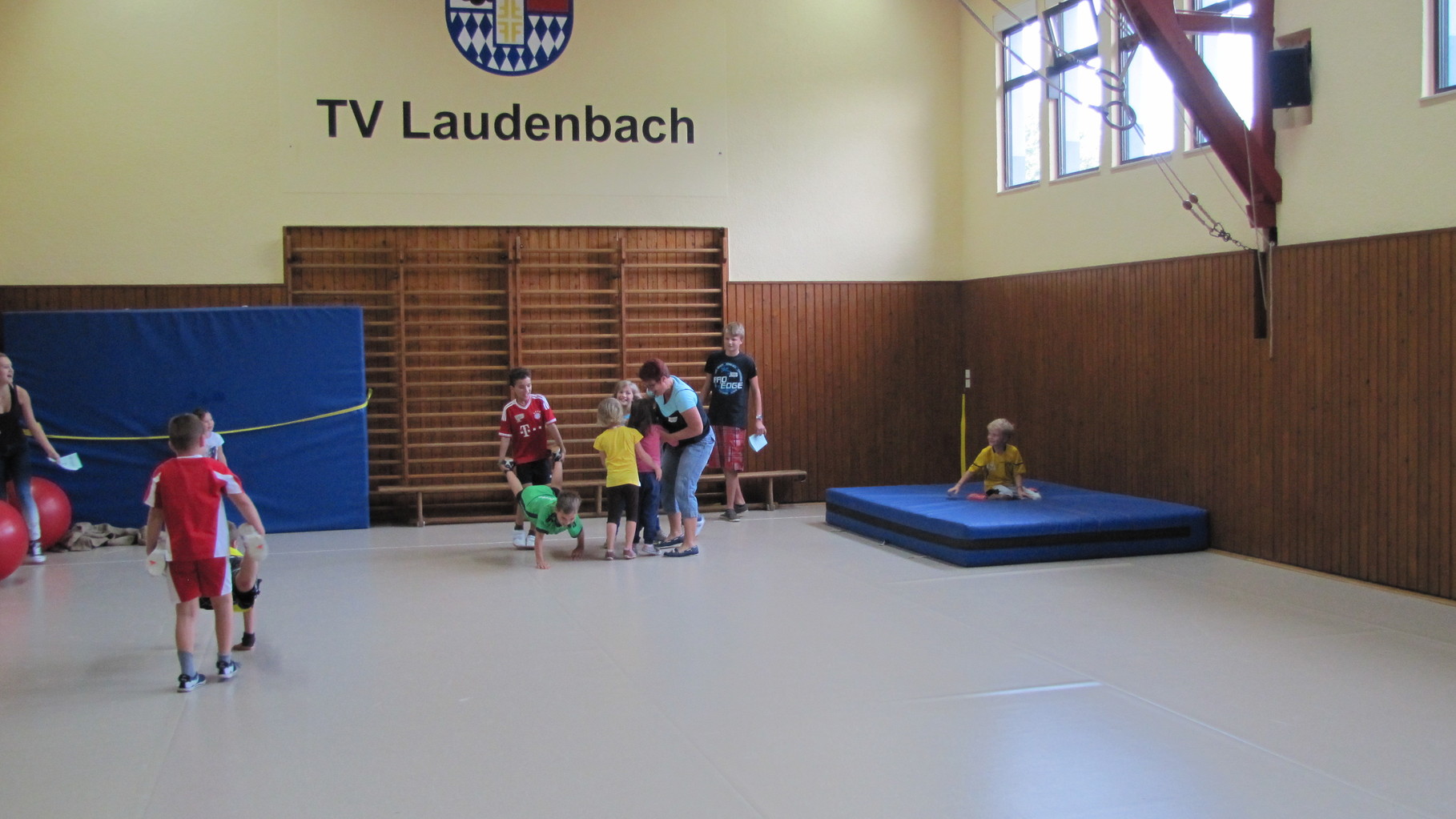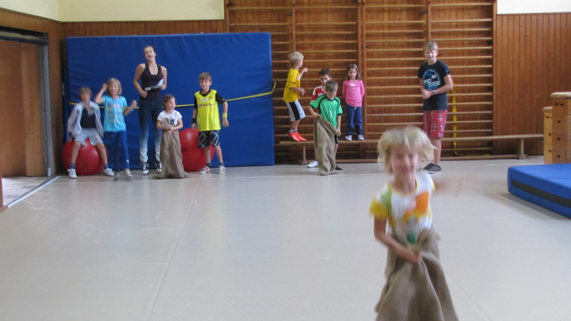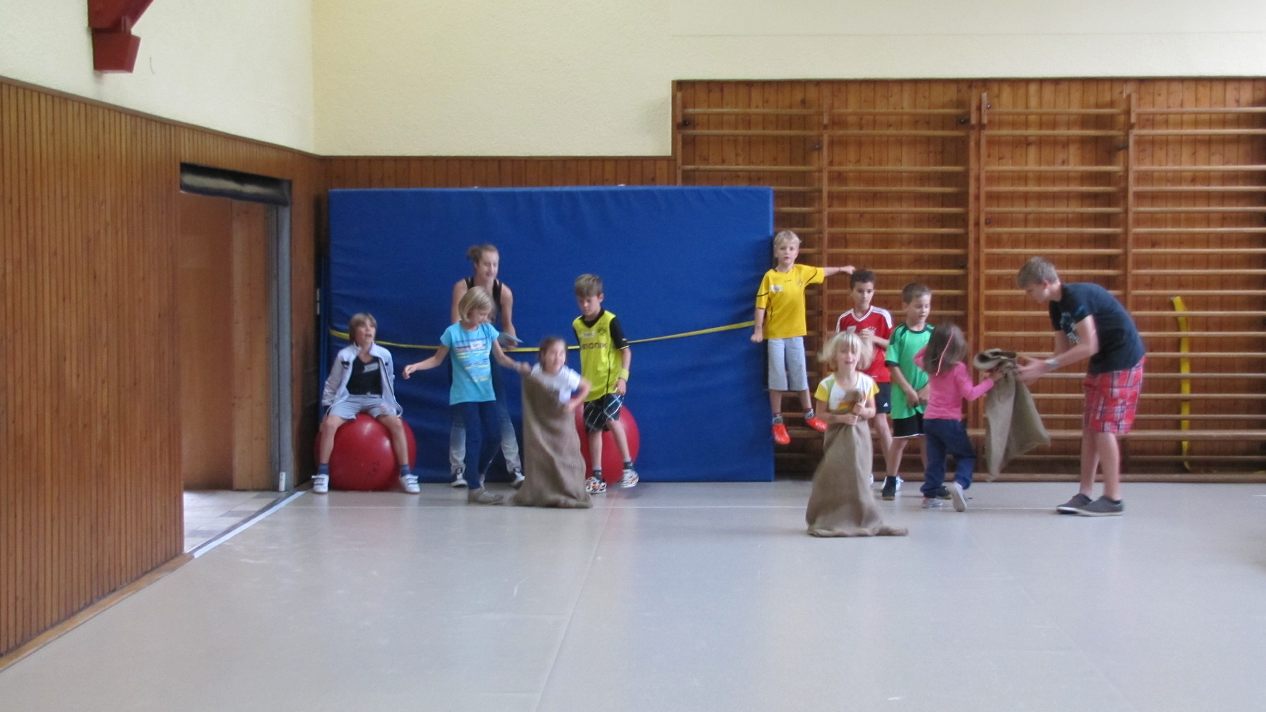 Insgesamt 10 voll motivierte Kinder im Alter zwischen 5 und 10 Jahren aus Laudenbach, Kleinheubach und Rüdenau kamen am 9. September 2014 zu den Ferienspielen in die Turnhalle. In der Halle und auf dem Außengelände hatten die freiwilligen Helfer schon viele Spielstationen aufgebaut. Zuerst ging es mit verschiedenen Gruppenspielen in der Halle hoch her. Bei verschiedenen Ballspielen, Hindernislauf, Sackhüpfen und Zitronenhockey hatten die Kinder viel Spaß und feuerten sich gegenseitig an.