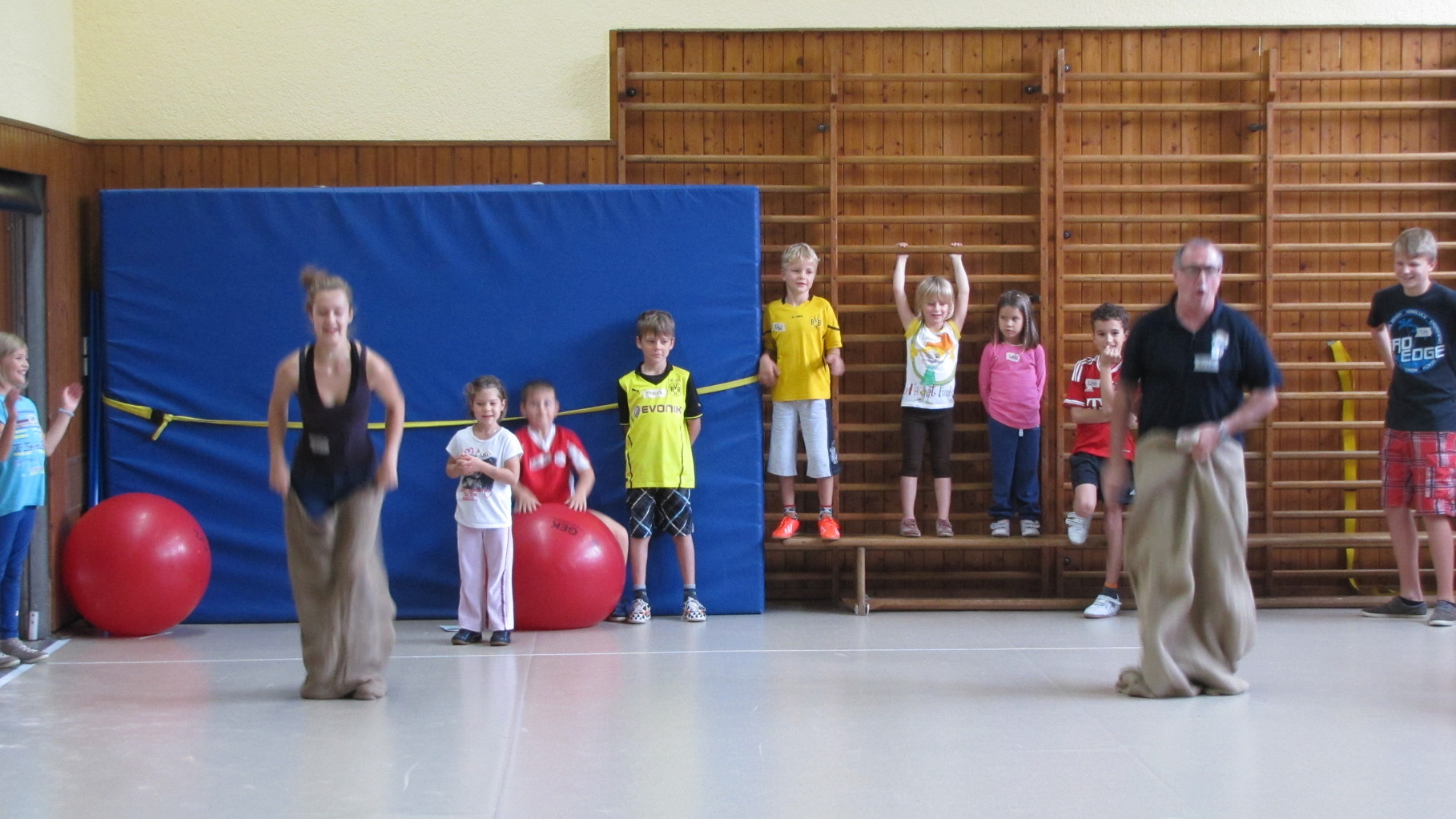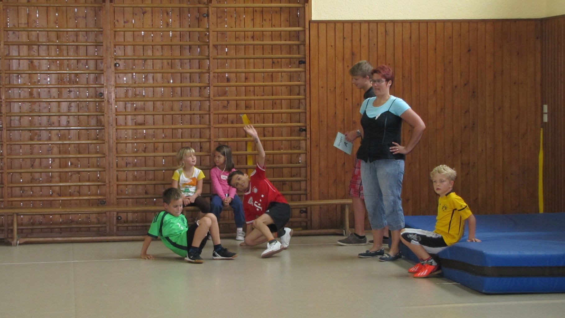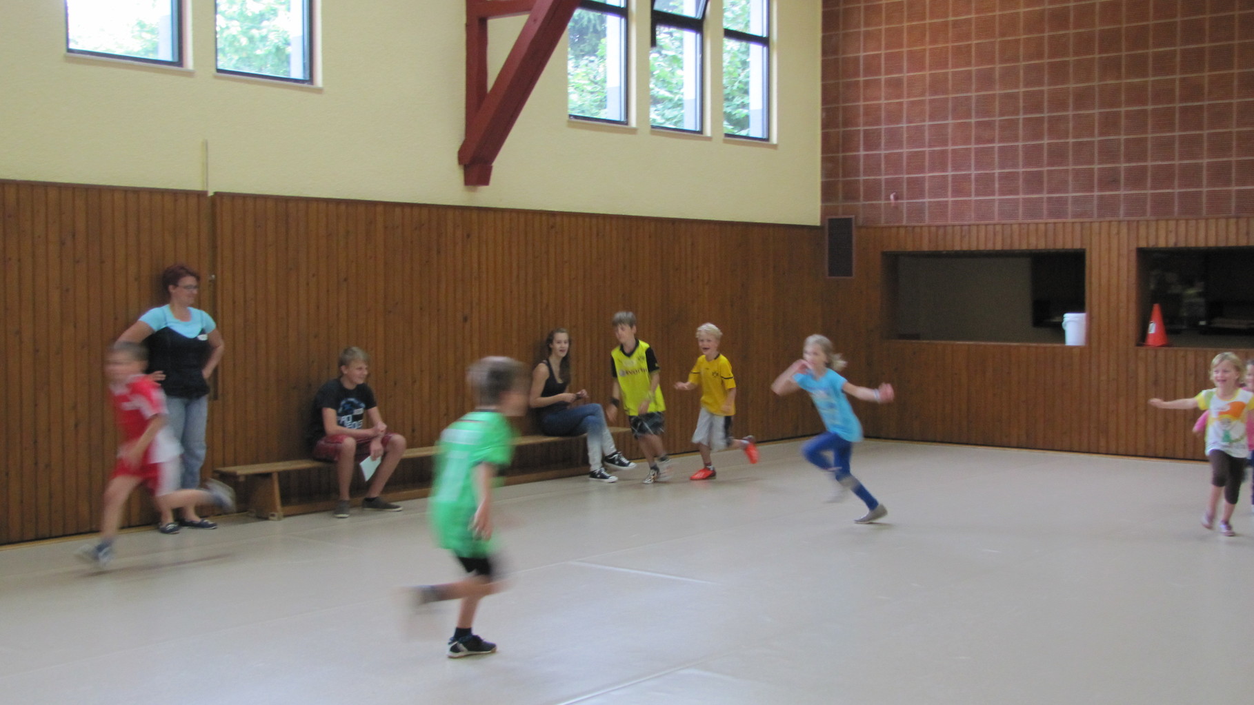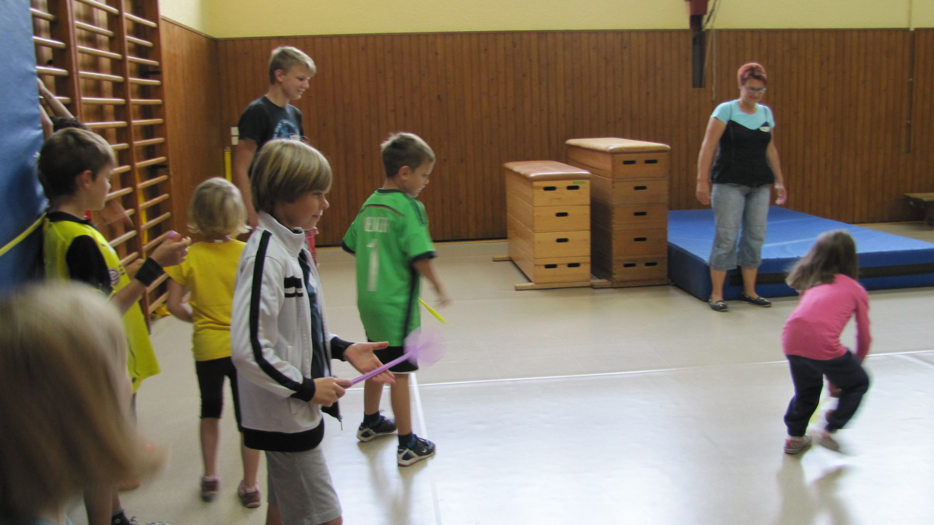 Insgesamt 10 voll motivierte Kinder im Alter zwischen 5 und 10 Jahren aus Laudenbach, Kleinheubach und Rüdenau kamen am 9. September 2014 zu den Ferienspielen in die Turnhalle. In der Halle und auf dem Außengelände hatten die freiwilligen Helfer schon viele Spielstationen aufgebaut. Zuerst ging es mit verschiedenen Gruppenspielen in der Halle hoch her. Bei verschiedenen Ballspielen, Hindernislauf, Sackhüpfen und Zitronenhockey hatten die Kinder viel Spaß und feuerten sich gegenseitig an.