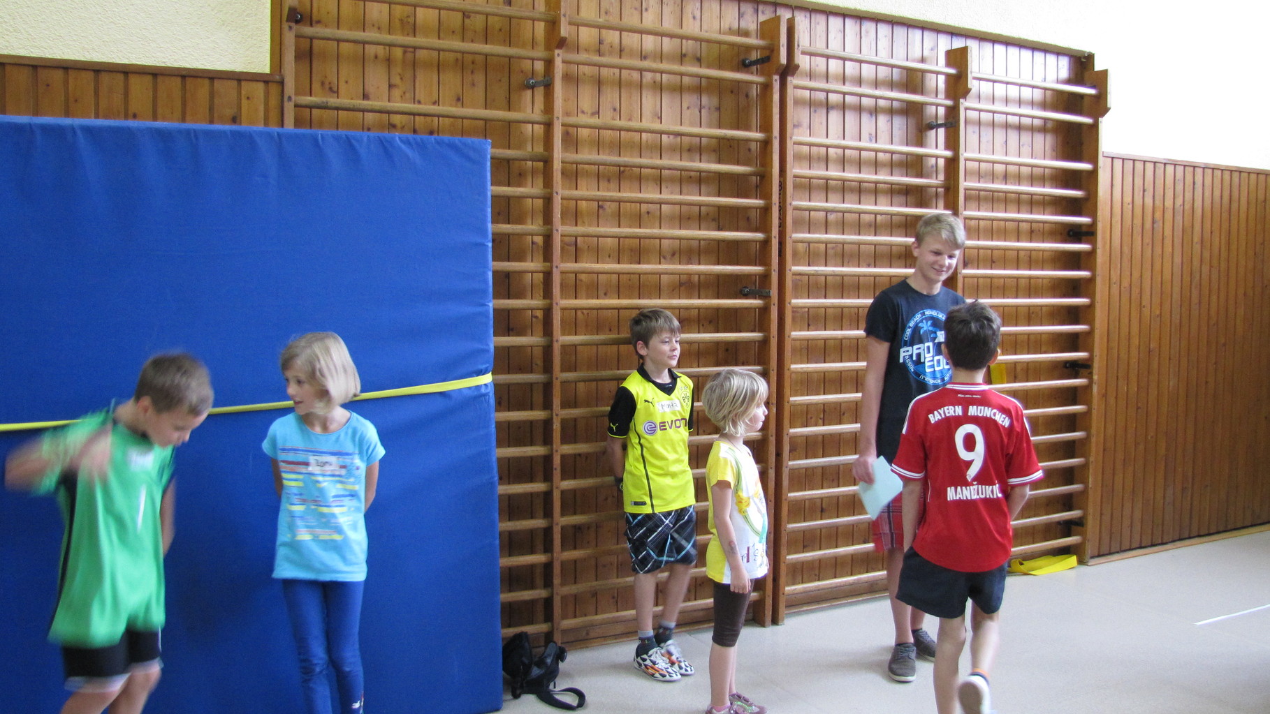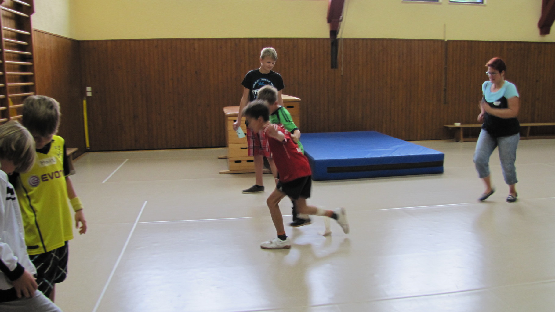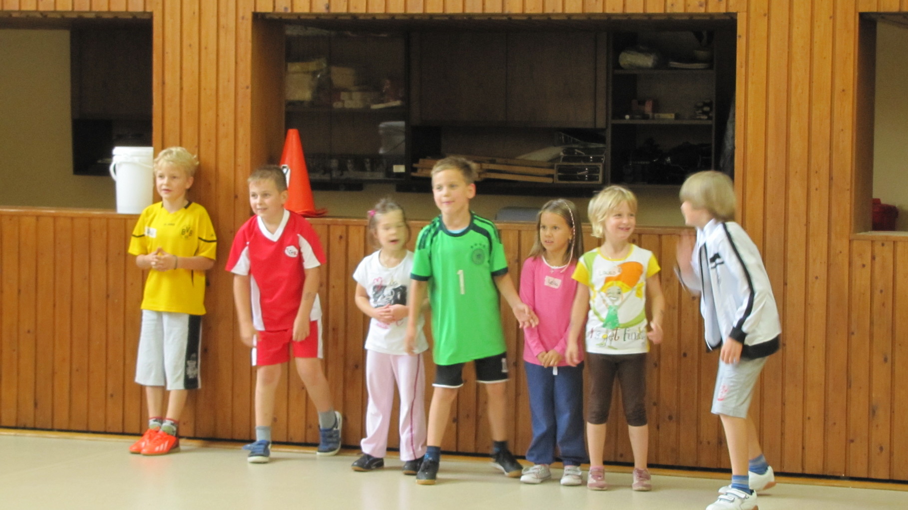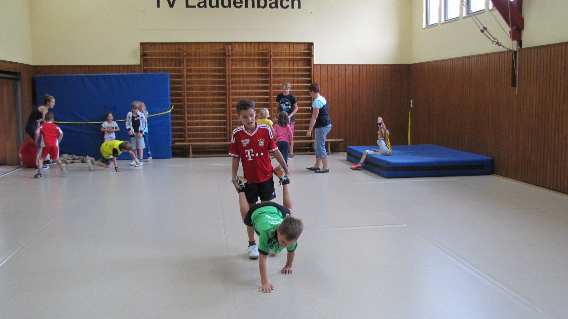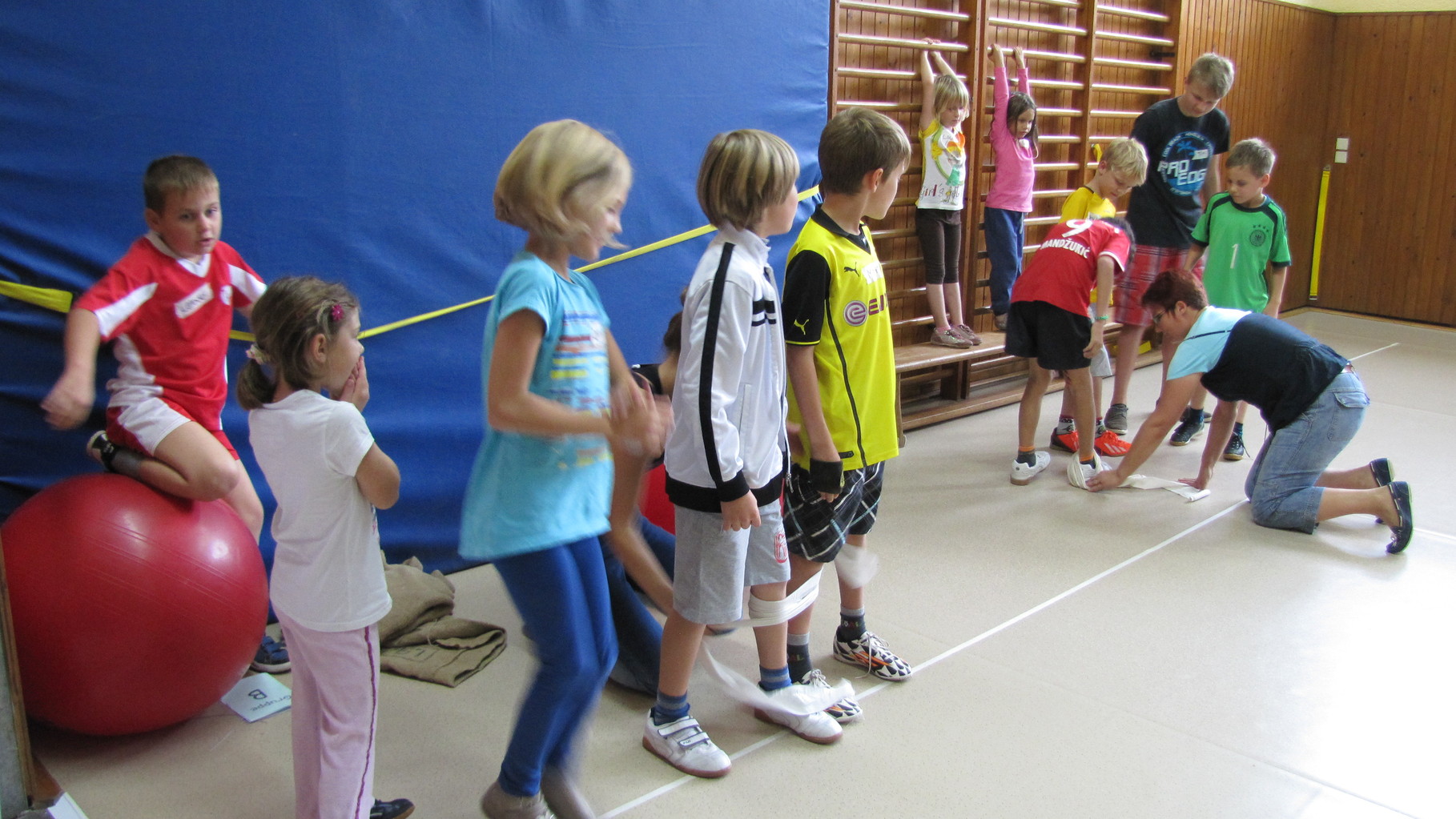 Insgesamt 10 voll motivierte Kinder im Alter zwischen 5 und 10 Jahren aus Laudenbach, Kleinheubach und Rüdenau kamen am 9. September 2014 zu den Ferienspielen in die Turnhalle. In der Halle und auf dem Außengelände hatten die freiwilligen Helfer schon viele Spielstationen aufgebaut. Zuerst ging es mit verschiedenen Gruppenspielen in der Halle hoch her. Bei verschiedenen Ballspielen, Hindernislauf, Sackhüpfen und Zitronenhockey hatten die Kinder viel Spaß und feuerten sich gegenseitig an.