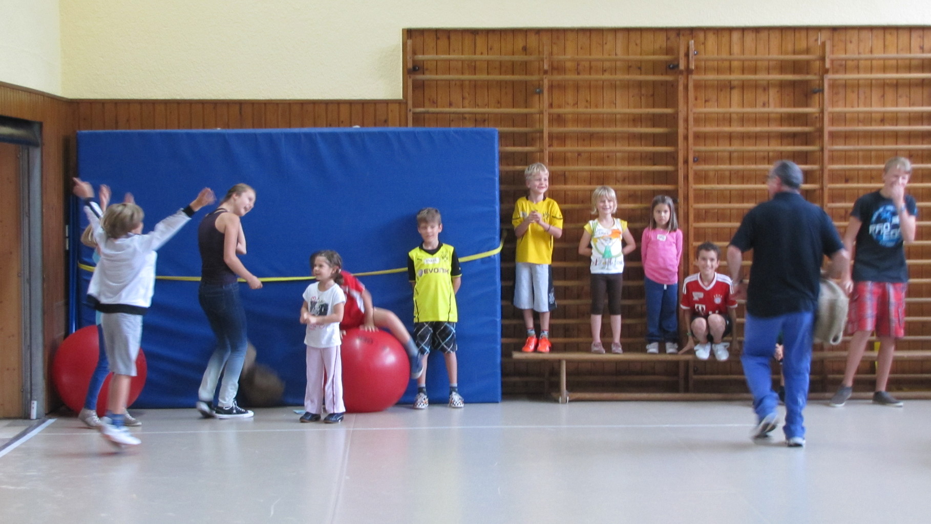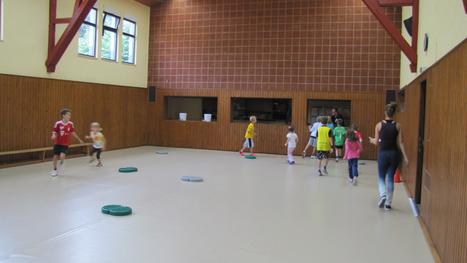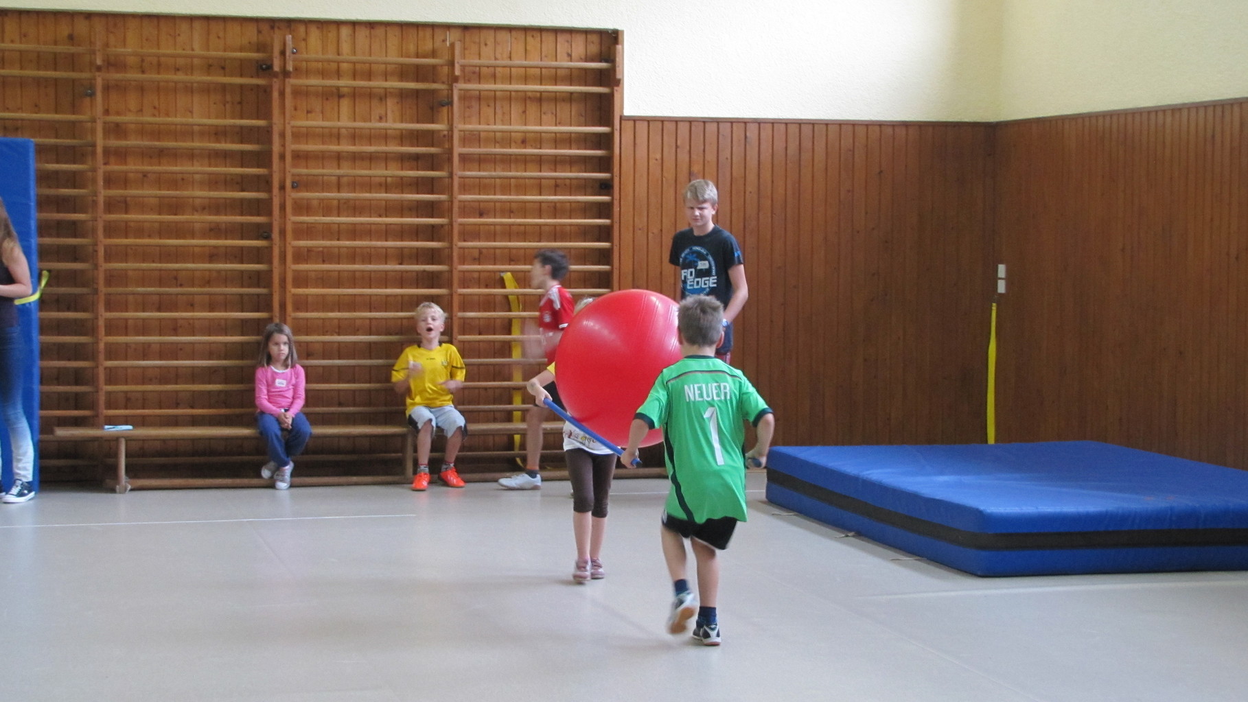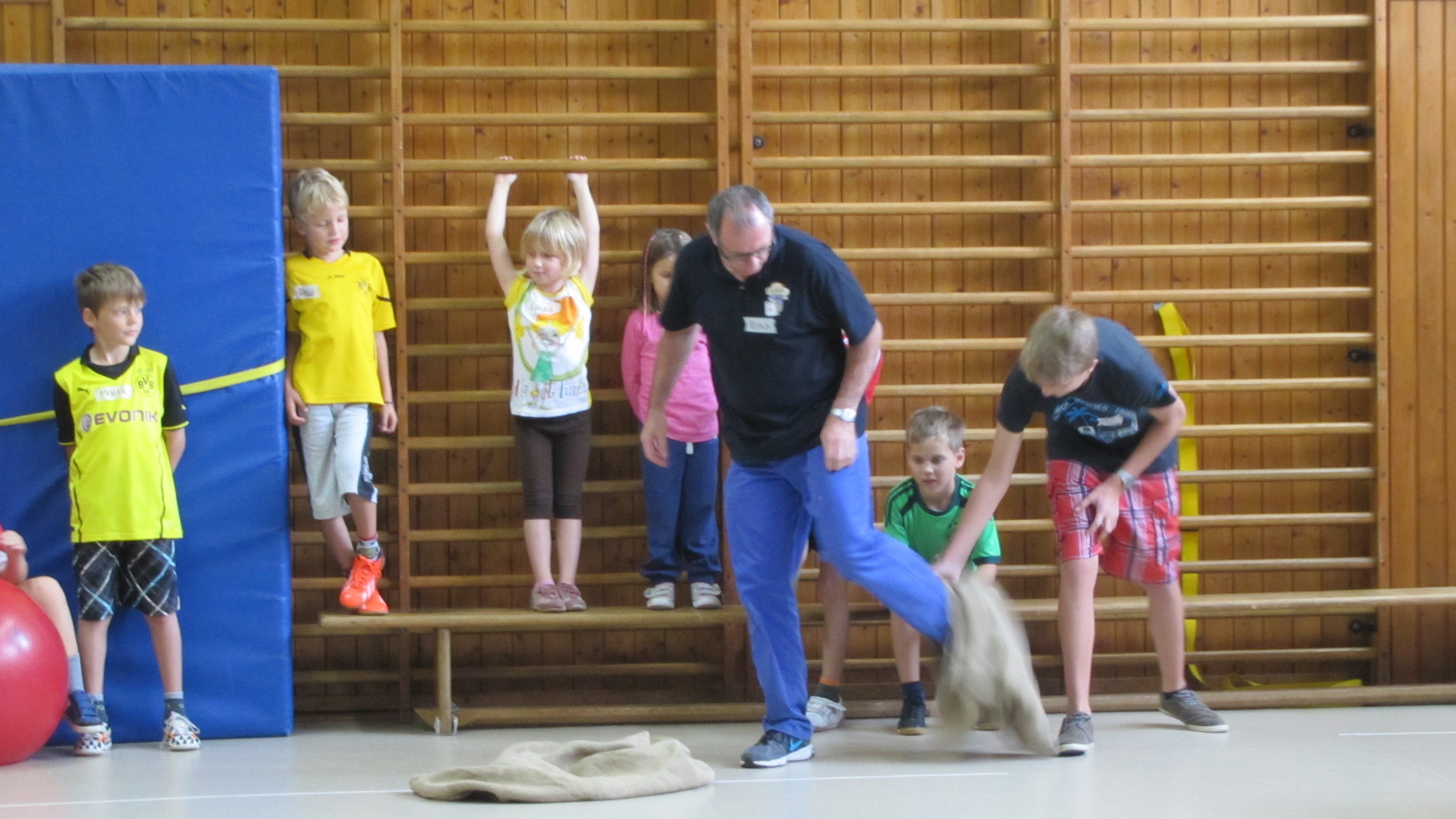 Insgesamt 10 voll motivierte Kinder im Alter zwischen 5 und 10 Jahren aus Laudenbach, Kleinheubach und Rüdenau kamen am 9. September 2014 zu den Ferienspielen in die Turnhalle. In der Halle und auf dem Außengelände hatten die freiwilligen Helfer schon viele Spielstationen aufgebaut. Zuerst ging es mit verschiedenen Gruppenspielen in der Halle hoch her. Bei verschiedenen Ballspielen, Hindernislauf, Sackhüpfen und Zitronenhockey hatten die Kinder viel Spaß und feuerten sich gegenseitig an.