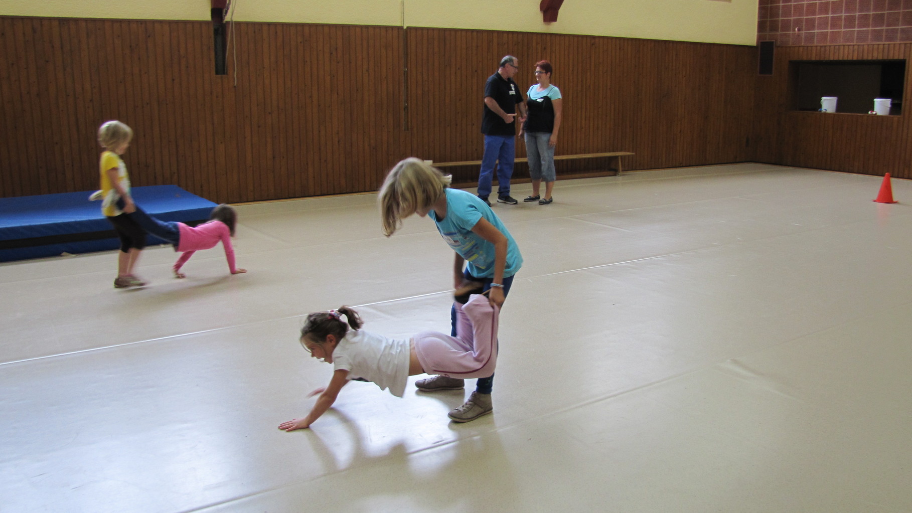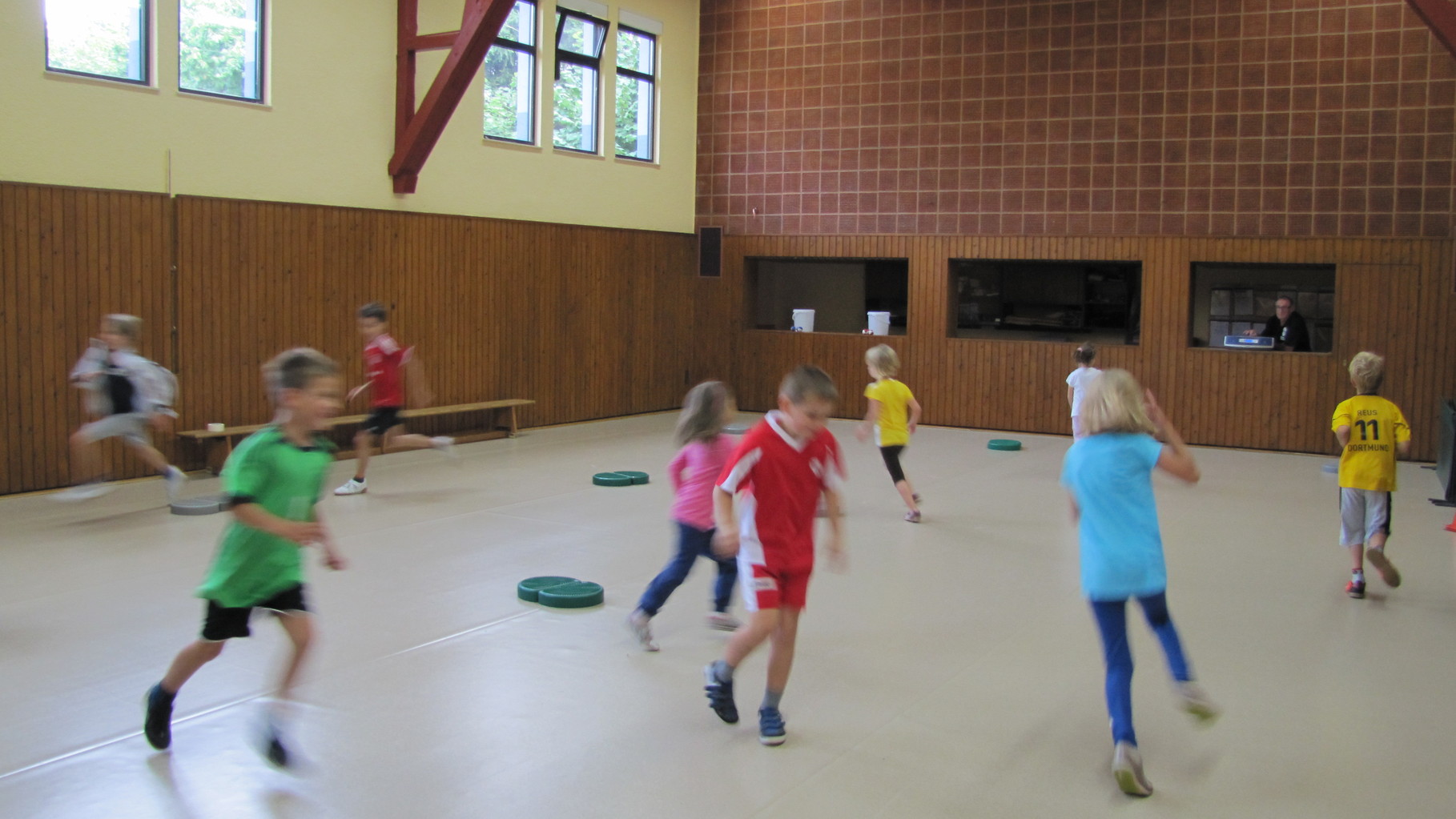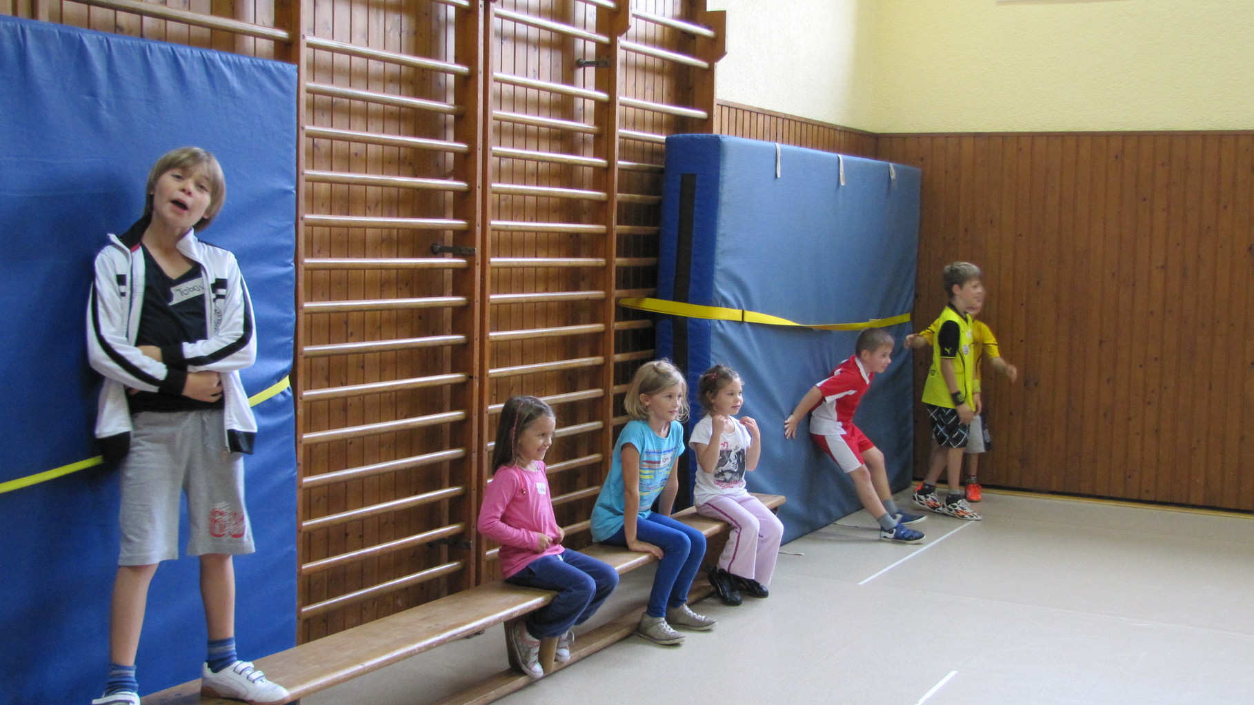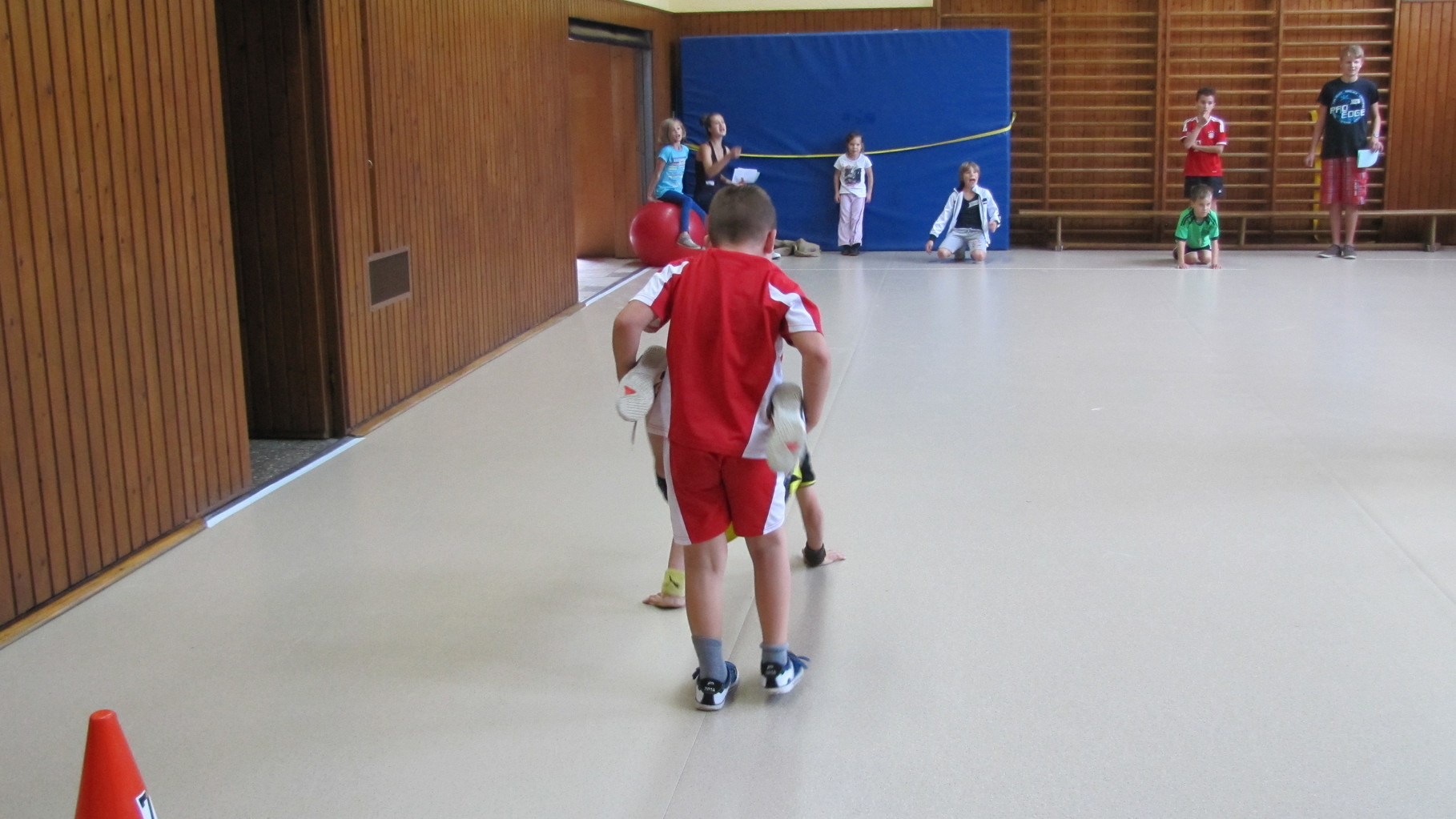 Insgesamt 10 voll motivierte Kinder im Alter zwischen 5 und 10 Jahren aus Laudenbach, Kleinheubach und Rüdenau kamen am 9. September 2014 zu den Ferienspielen in die Turnhalle. In der Halle und auf dem Außengelände hatten die freiwilligen Helfer schon viele Spielstationen aufgebaut. Zuerst ging es mit verschiedenen Gruppenspielen in der Halle hoch her. Bei verschiedenen Ballspielen, Hindernislauf, Sackhüpfen und Zitronenhockey hatten die Kinder viel Spaß und feuerten sich gegenseitig an.