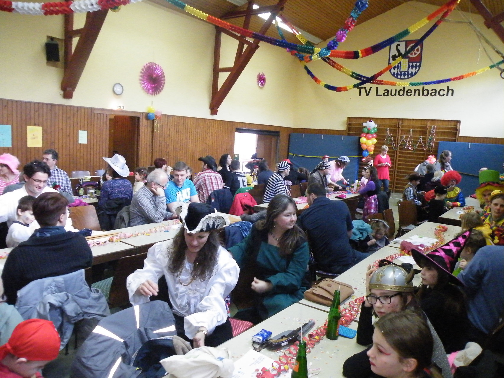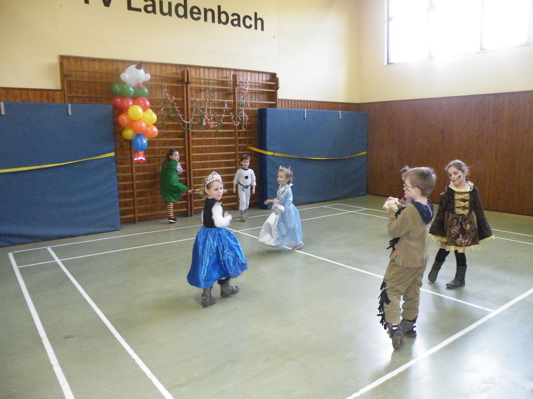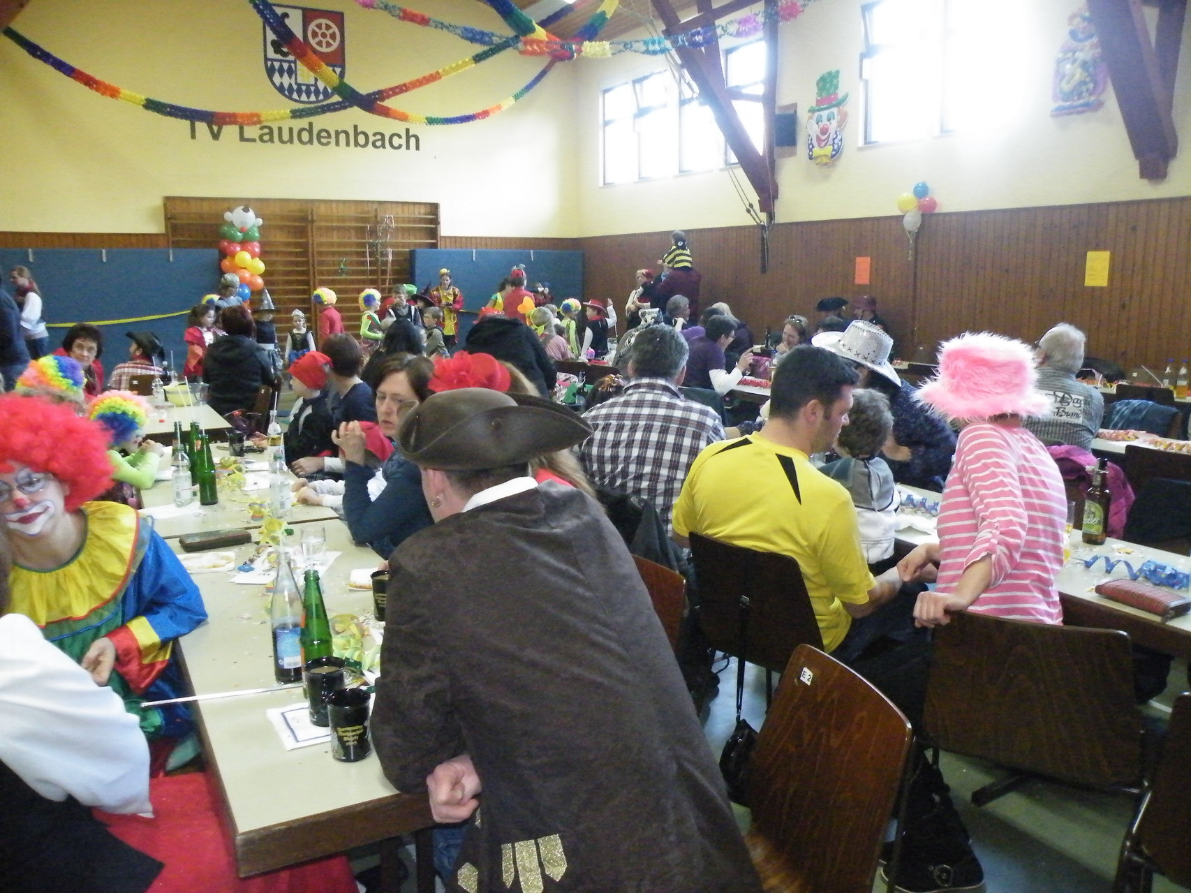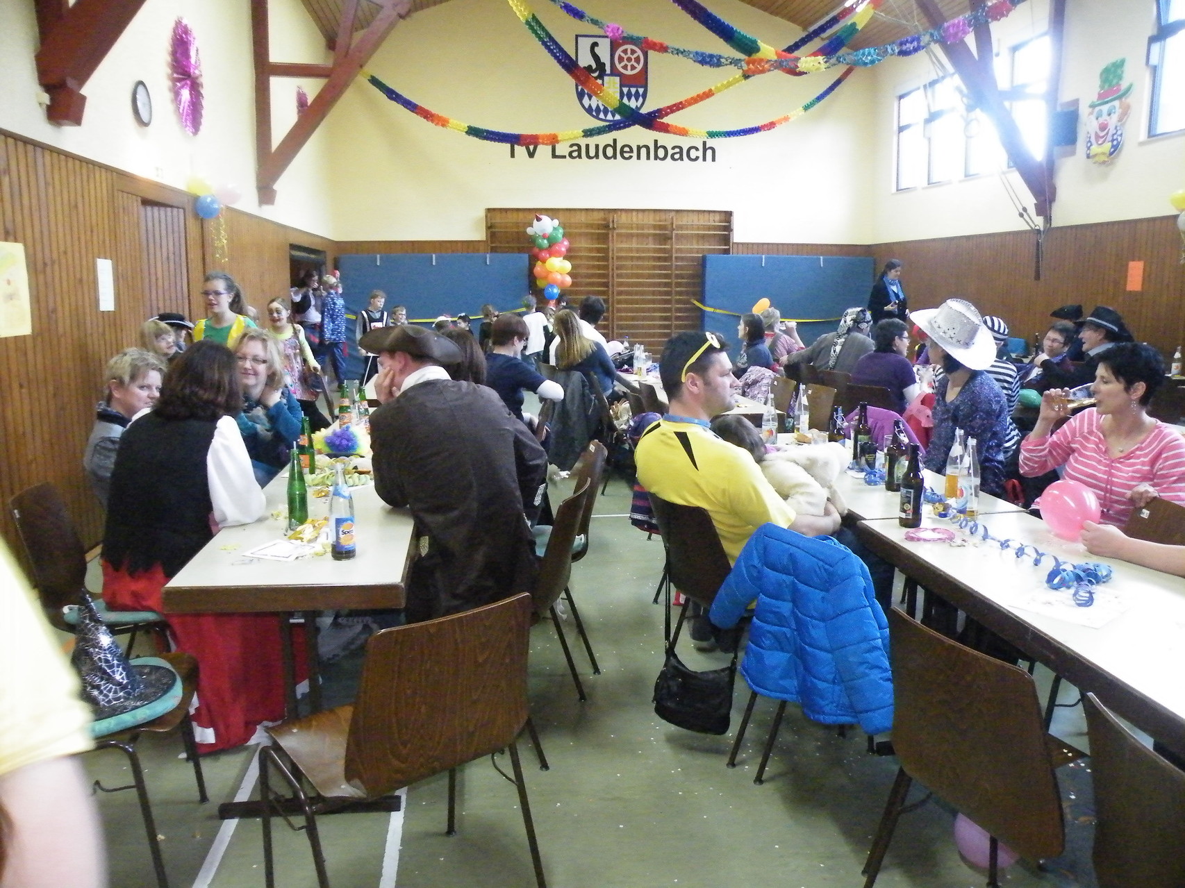 In der Turnhalle waren schnell alle Plätze belegt und es mussten sogar noch zusätzliche Tische aufgestellt werden. Die fleißigen Helferinnen hatten alle Hände voll zu tun, um alle mit Getränken zu versorgen. Kaum hatten alle ihren Platz gefunden und sich eingerichtet, begrüßte die 1. Vorsitzende Beate Picard die Faschingsnarren und kündigte den Auftritt der Minigarde des Karnevalclubs Rüdenau an, der schon Tradition beim Kinderfasching des TV Laudenbach hat. Wie schon so oft erfreuten die Kinder der Minigarde die Besucher des Kinderfaschings. Der diesjährige Tanz hieß „Coole Clowns“ und wurde von den Trainerinnen Jenny Zobel und Irene Seitz einstudiert. Mit fröhlichen Gesichtern und gute Laune verbreitend wirbelten die Clowns über die „Bühne“. Leider gab es keine Zugabe, da für manche schon die nächste Veranstaltung rief. Wir freuen uns aber alle schon auf nächstes Jahr und sagen der Minigarde und ihren Trainerinnen auf diesem Weg ein herzliches Dankeschön.