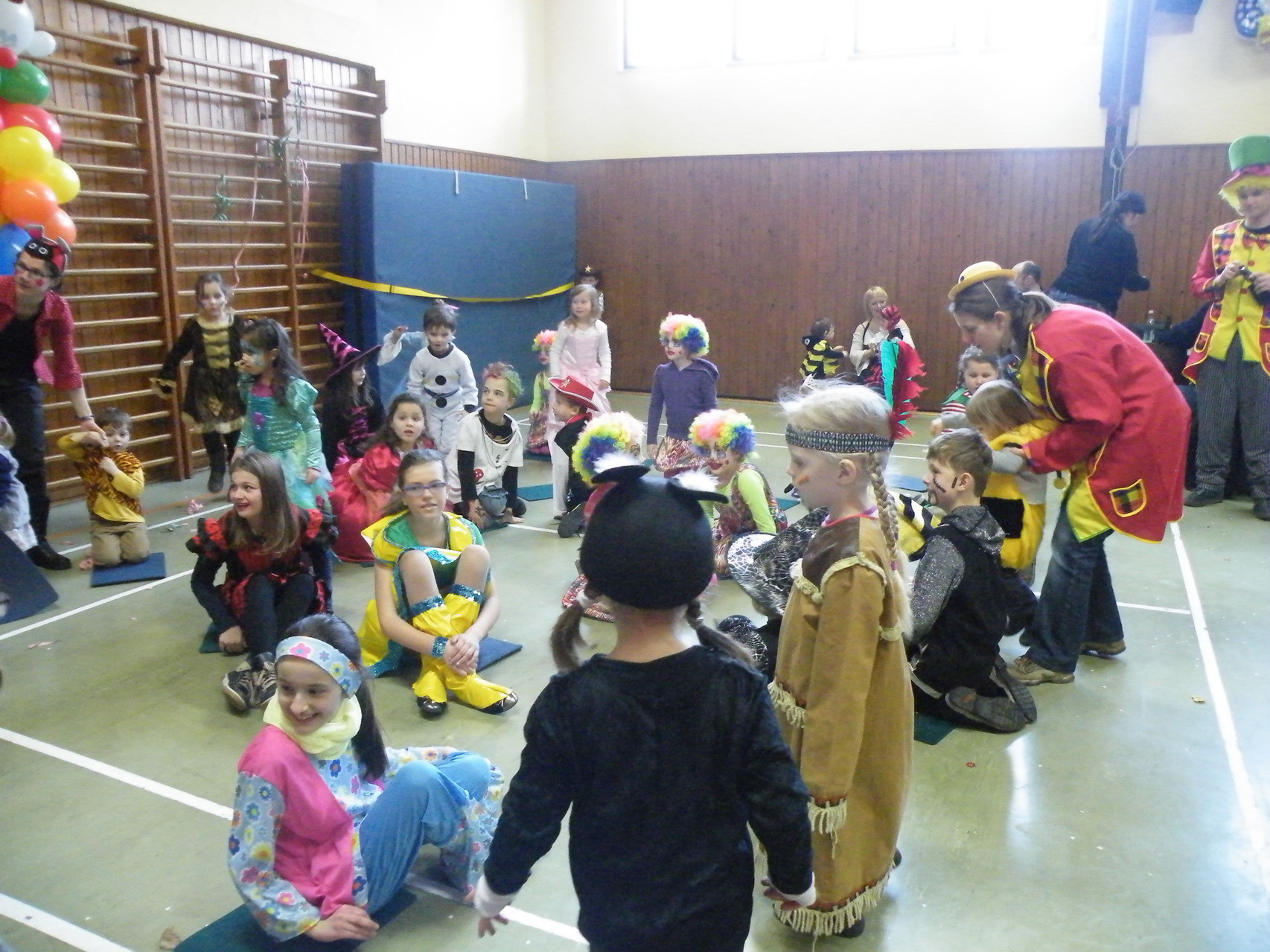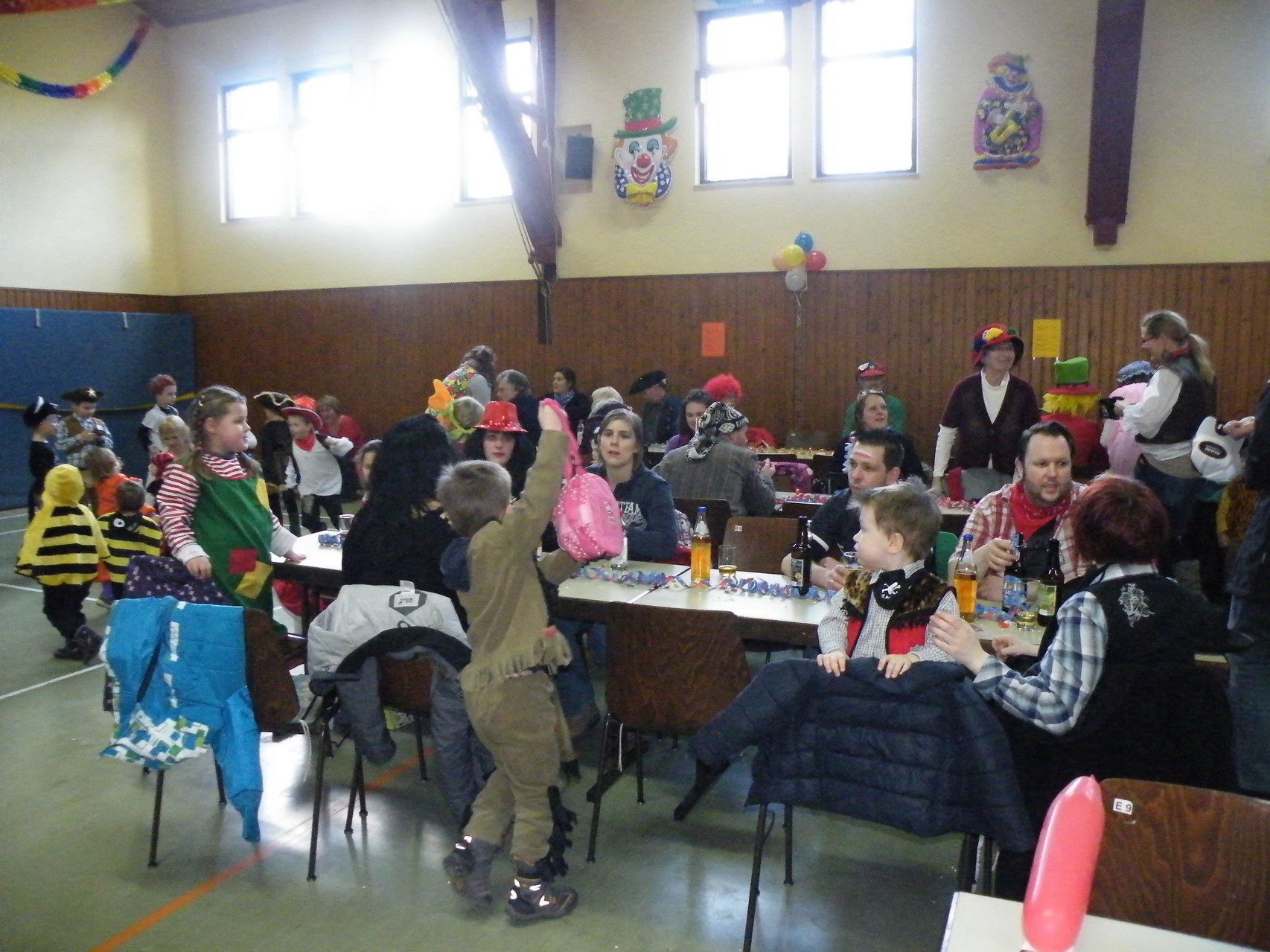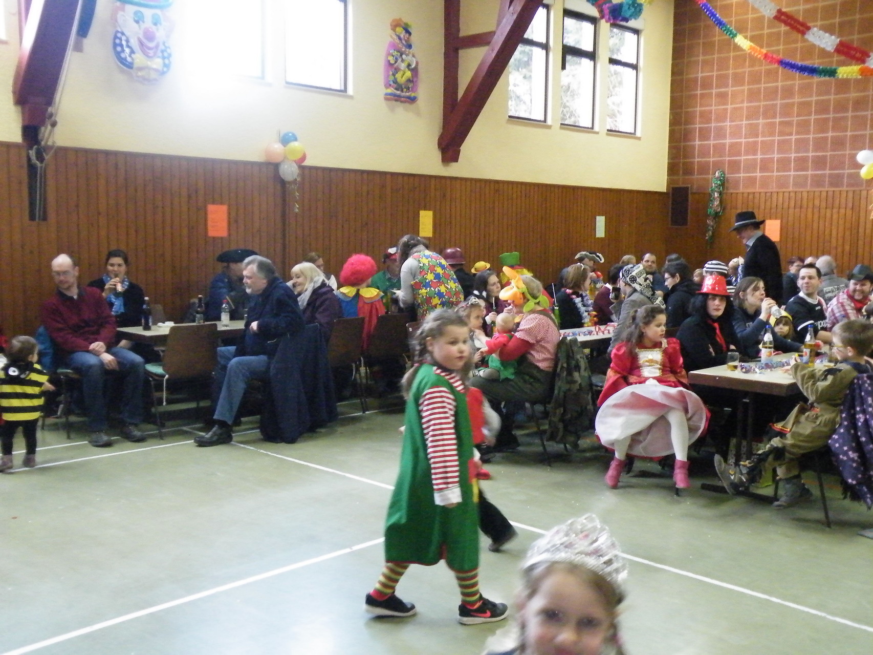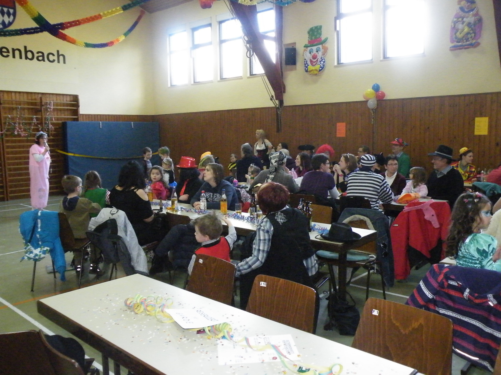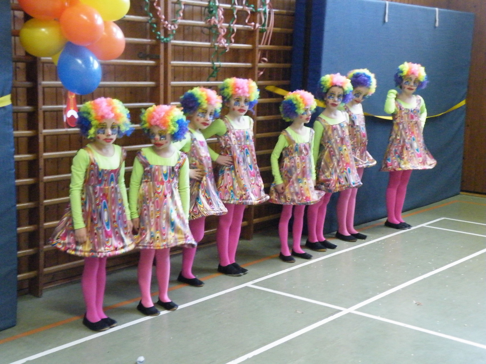 In der Turnhalle waren schnell alle Plätze belegt und es mussten sogar noch zusätzliche Tische aufgestellt werden. Die fleißigen Helferinnen hatten alle Hände voll zu tun, um alle mit Getränken zu versorgen. Kaum hatten alle ihren Platz gefunden und sich eingerichtet, begrüßte die 1. Vorsitzende Beate Picard die Faschingsnarren und kündigte den Auftritt der Minigarde des Karnevalclubs Rüdenau an, der schon Tradition beim Kinderfasching des TV Laudenbach hat. Wie schon so oft erfreuten die Kinder der Minigarde die Besucher des Kinderfaschings. Der diesjährige Tanz hieß „Coole Clowns“ und wurde von den Trainerinnen Jenny Zobel und Irene Seitz einstudiert. Mit fröhlichen Gesichtern und gute Laune verbreitend wirbelten die Clowns über die „Bühne“. Leider gab es keine Zugabe, da für manche schon die nächste Veranstaltung rief. Wir freuen uns aber alle schon auf nächstes Jahr und sagen der Minigarde und ihren Trainerinnen auf diesem Weg ein herzliches Dankeschön.