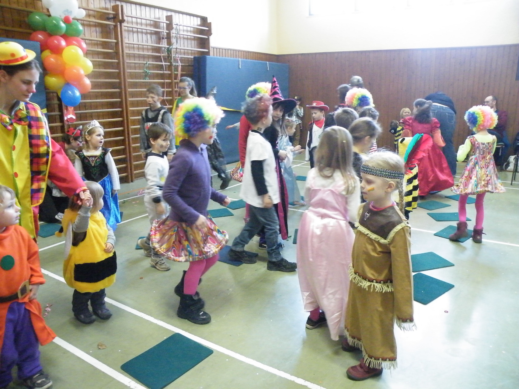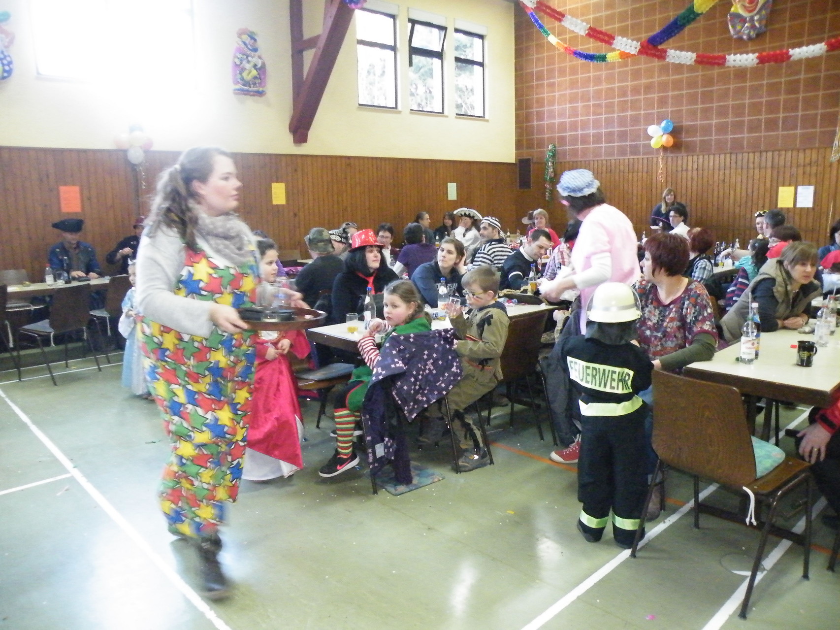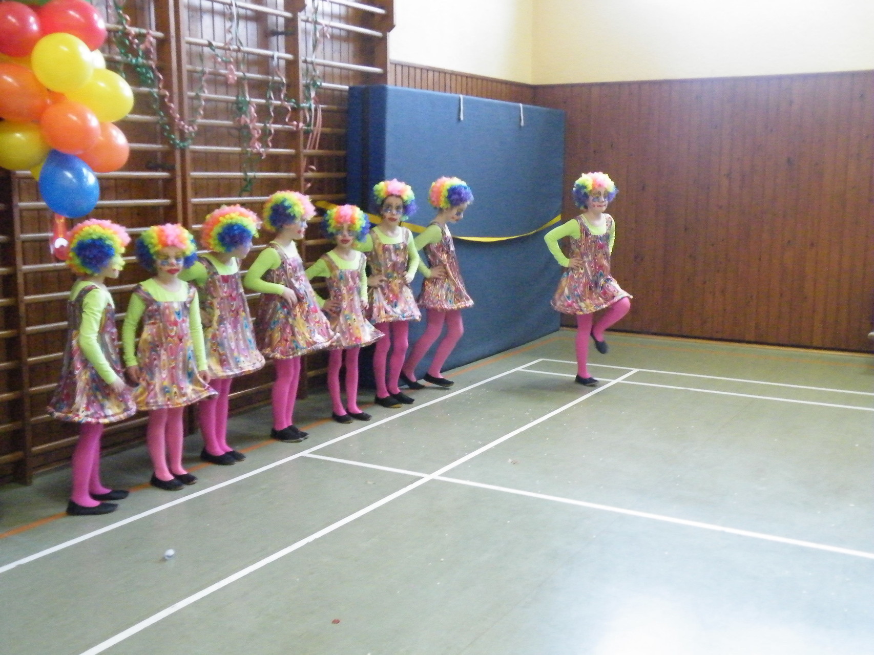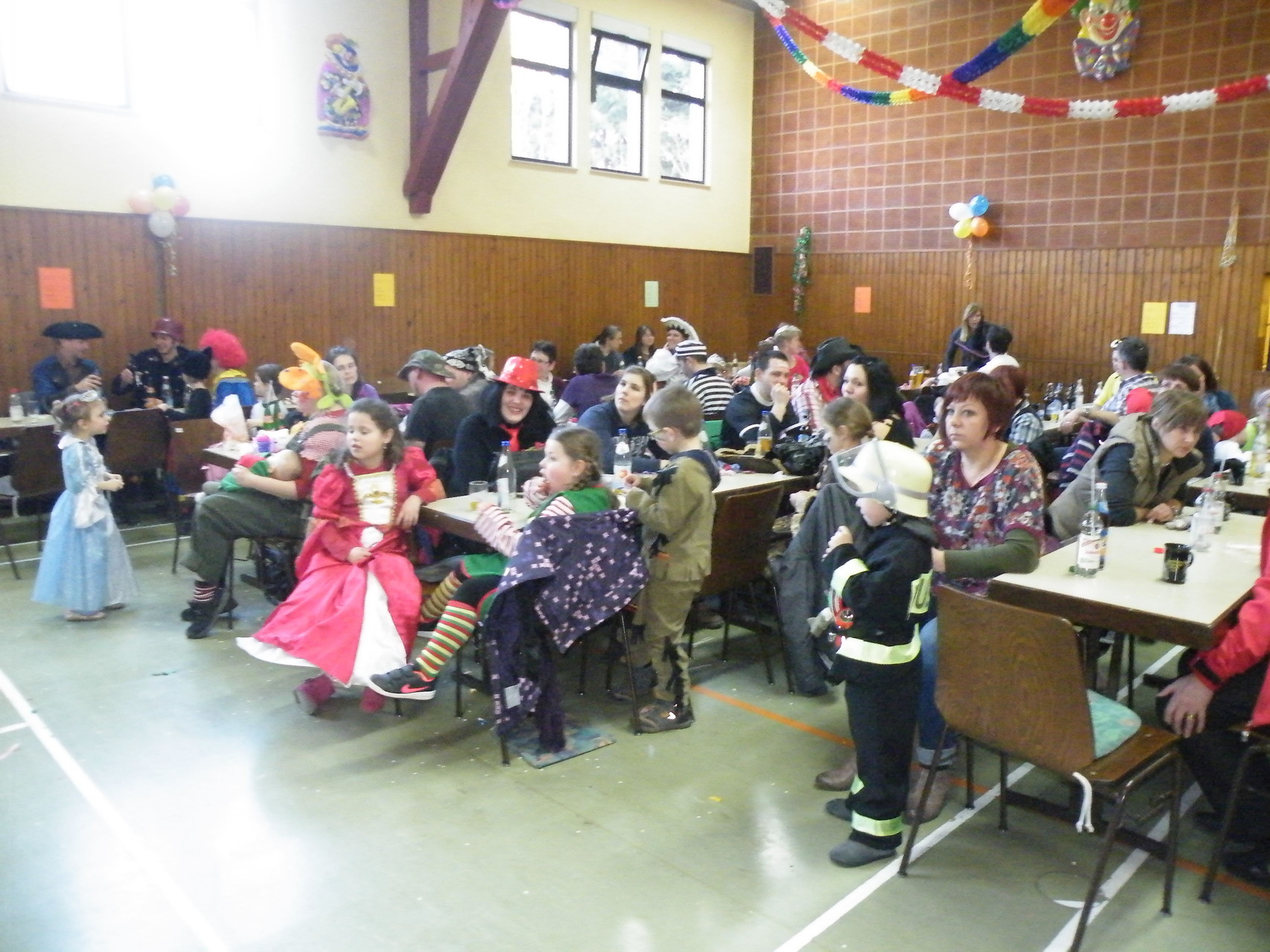 In der Turnhalle waren schnell alle Plätze belegt und es mussten sogar noch zusätzliche Tische aufgestellt werden. Die fleißigen Helferinnen hatten alle Hände voll zu tun, um alle mit Getränken zu versorgen. Kaum hatten alle ihren Platz gefunden und sich eingerichtet, begrüßte die 1. Vorsitzende Beate Picard die Faschingsnarren und kündigte den Auftritt der Minigarde des Karnevalclubs Rüdenau an, der schon Tradition beim Kinderfasching des TV Laudenbach hat. Wie schon so oft erfreuten die Kinder der Minigarde die Besucher des Kinderfaschings. Der diesjährige Tanz hieß „Coole Clowns“ und wurde von den Trainerinnen Jenny Zobel und Irene Seitz einstudiert. Mit fröhlichen Gesichtern und gute Laune verbreitend wirbelten die Clowns über die „Bühne“. Leider gab es keine Zugabe, da für manche schon die nächste Veranstaltung rief. Wir freuen uns aber alle schon auf nächstes Jahr und sagen der Minigarde und ihren Trainerinnen auf diesem Weg ein herzliches Dankeschön.