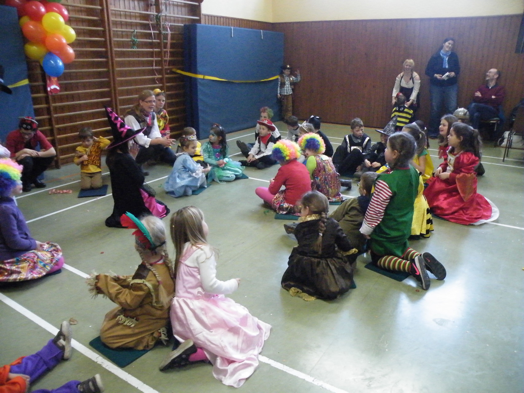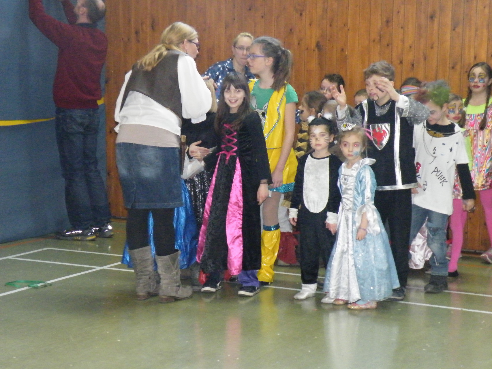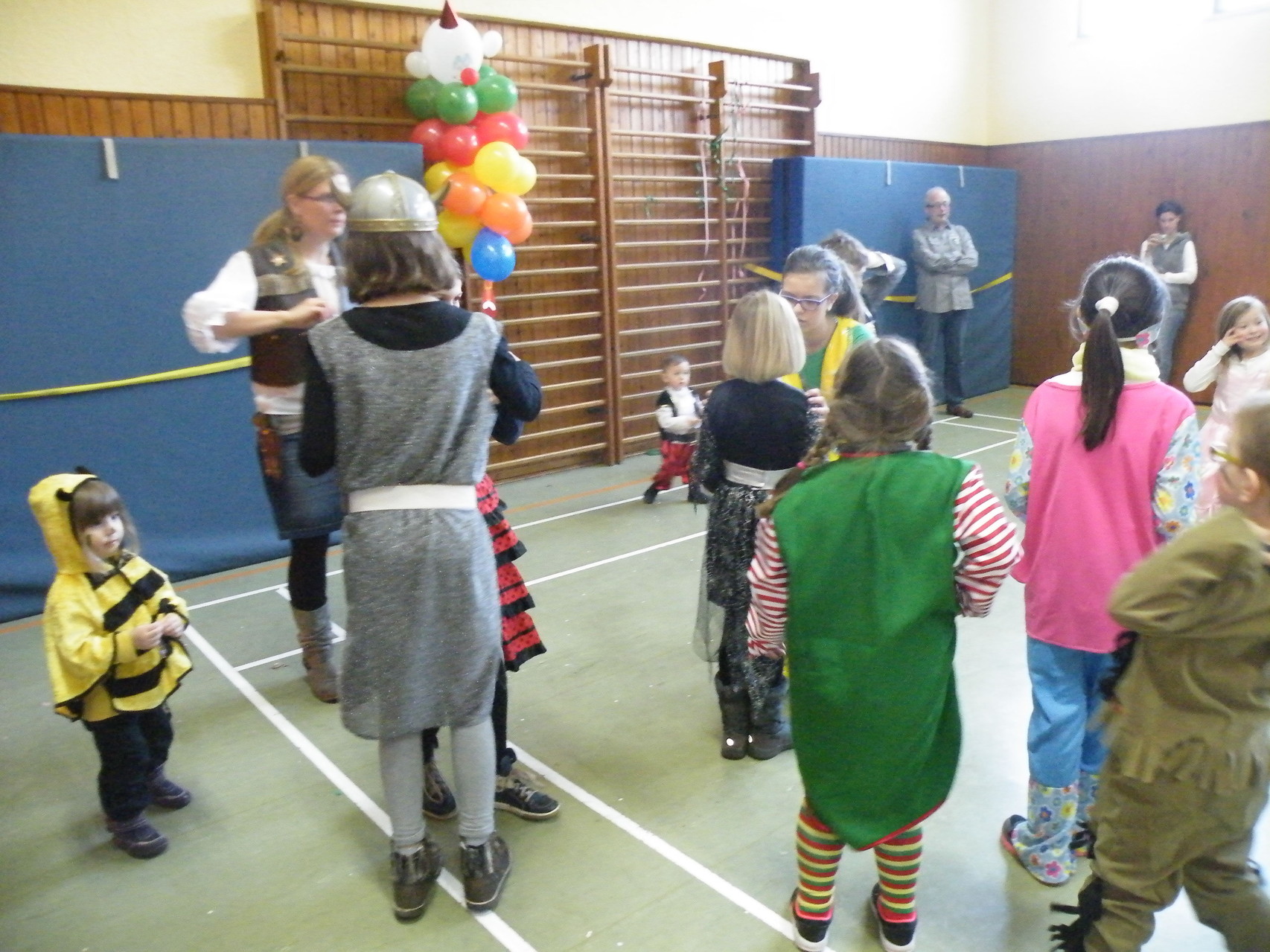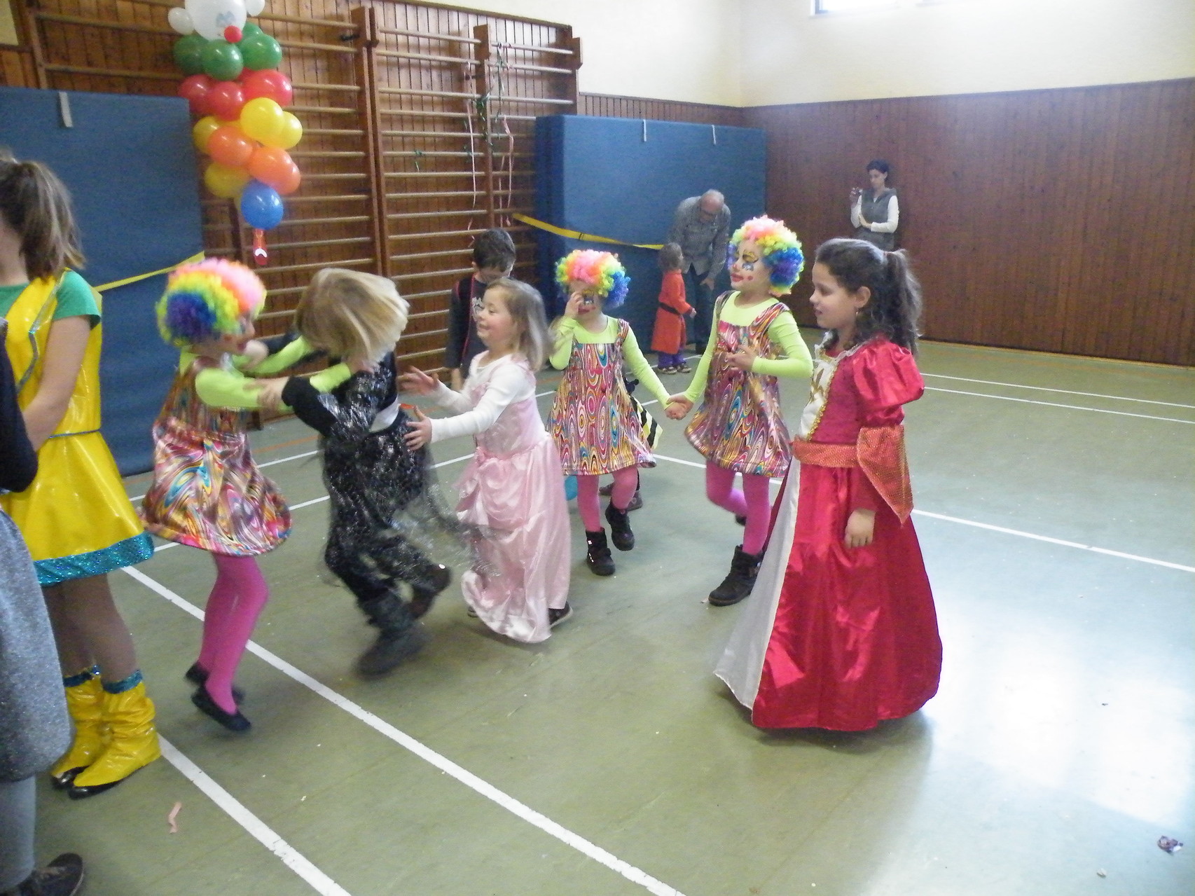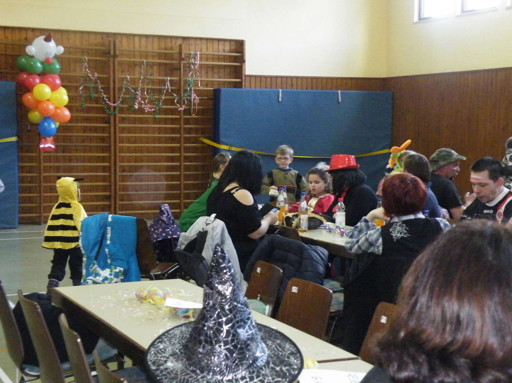 In der Turnhalle waren schnell alle Plätze belegt und es mussten sogar noch zusätzliche Tische aufgestellt werden. Die fleißigen Helferinnen hatten alle Hände voll zu tun, um alle mit Getränken zu versorgen. Kaum hatten alle ihren Platz gefunden und sich eingerichtet, begrüßte die 1. Vorsitzende Beate Picard die Faschingsnarren und kündigte den Auftritt der Minigarde des Karnevalclubs Rüdenau an, der schon Tradition beim Kinderfasching des TV Laudenbach hat. Wie schon so oft erfreuten die Kinder der Minigarde die Besucher des Kinderfaschings. Der diesjährige Tanz hieß „Coole Clowns“ und wurde von den Trainerinnen Jenny Zobel und Irene Seitz einstudiert. Mit fröhlichen Gesichtern und gute Laune verbreitend wirbelten die Clowns über die „Bühne“. Leider gab es keine Zugabe, da für manche schon die nächste Veranstaltung rief. Wir freuen uns aber alle schon auf nächstes Jahr und sagen der Minigarde und ihren Trainerinnen auf diesem Weg ein herzliches Dankeschön.