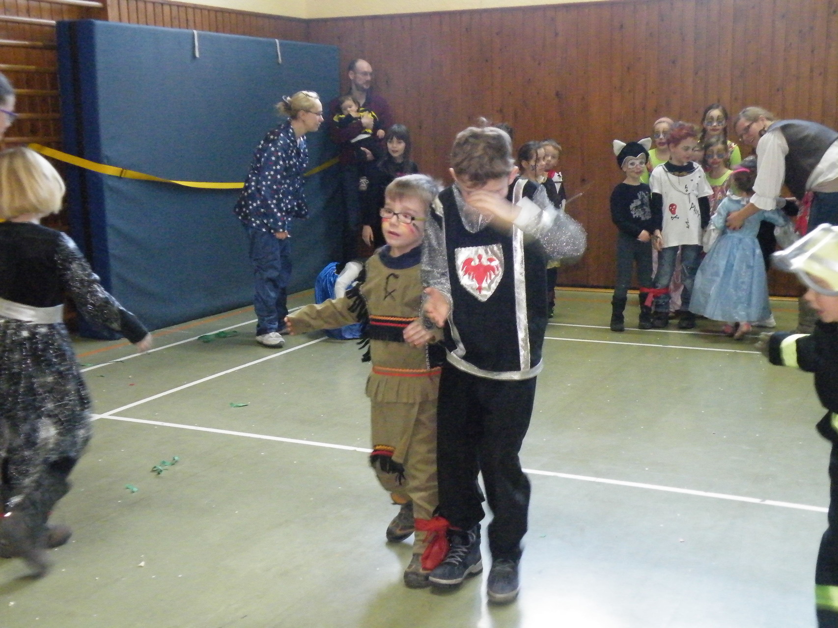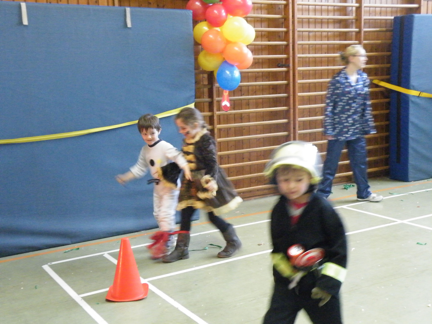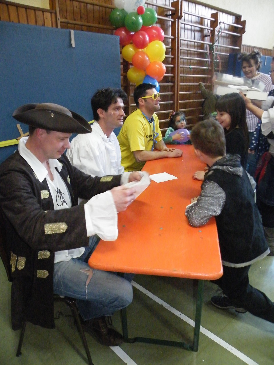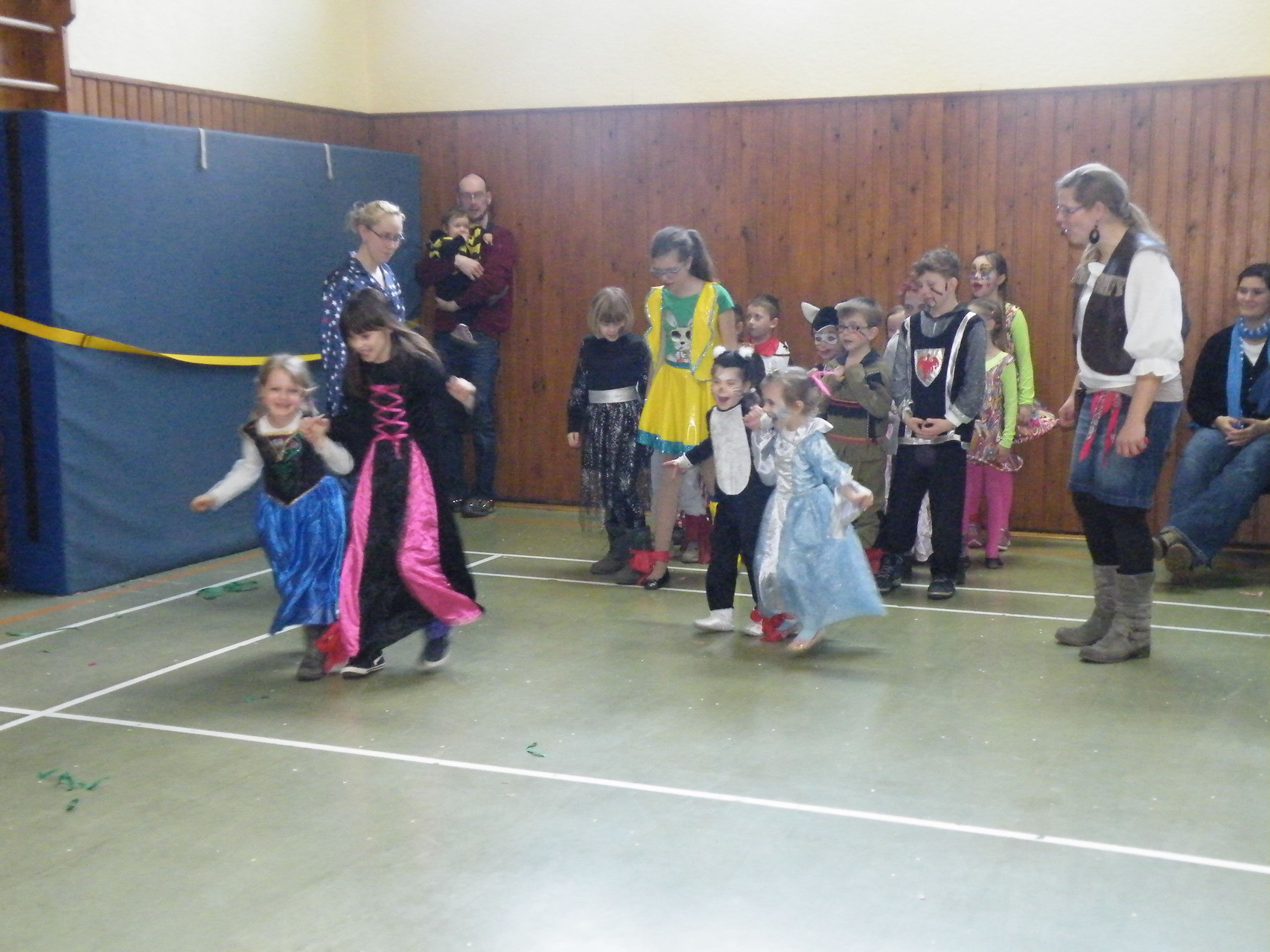In der Turnhalle waren schnell alle Plätze belegt und es mussten sogar noch zusätzliche Tische aufgestellt werden. Die fleißigen Helferinnen hatten alle Hände voll zu tun, um alle mit Getränken zu versorgen. Kaum hatten alle ihren Platz gefunden und sich eingerichtet, begrüßte die 1. Vorsitzende Beate Picard die Faschingsnarren und kündigte den Auftritt der Minigarde des Karnevalclubs Rüdenau an, der schon Tradition beim Kinderfasching des TV Laudenbach hat. Wie schon so oft erfreuten die Kinder der Minigarde die Besucher des Kinderfaschings. Der diesjährige Tanz hieß „Coole Clowns“ und wurde von den Trainerinnen Jenny Zobel und Irene Seitz einstudiert. Mit fröhlichen Gesichtern und gute Laune verbreitend wirbelten die Clowns über die „Bühne“. Leider gab es keine Zugabe, da für manche schon die nächste Veranstaltung rief. Wir freuen uns aber alle schon auf nächstes Jahr und sagen der Minigarde und ihren Trainerinnen auf diesem Weg ein herzliches Dankeschön.