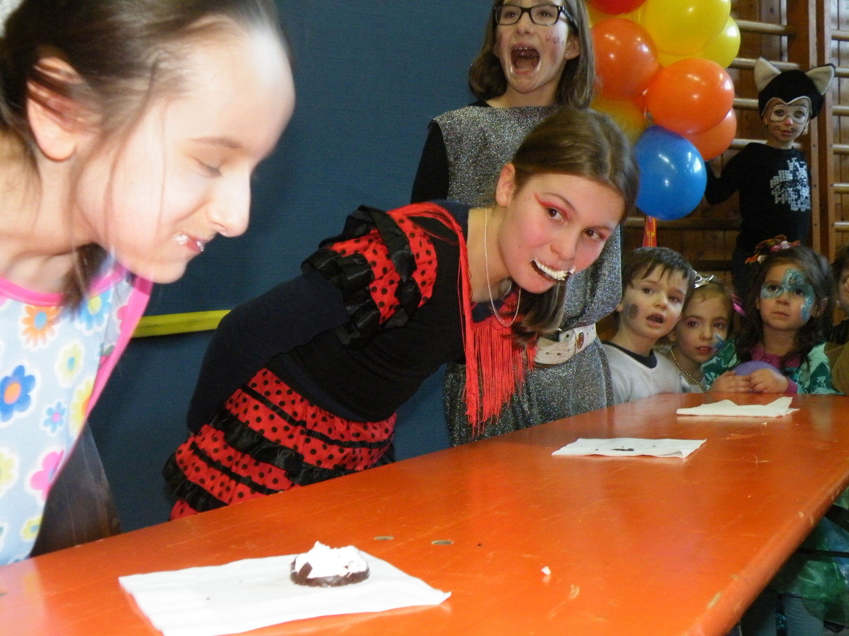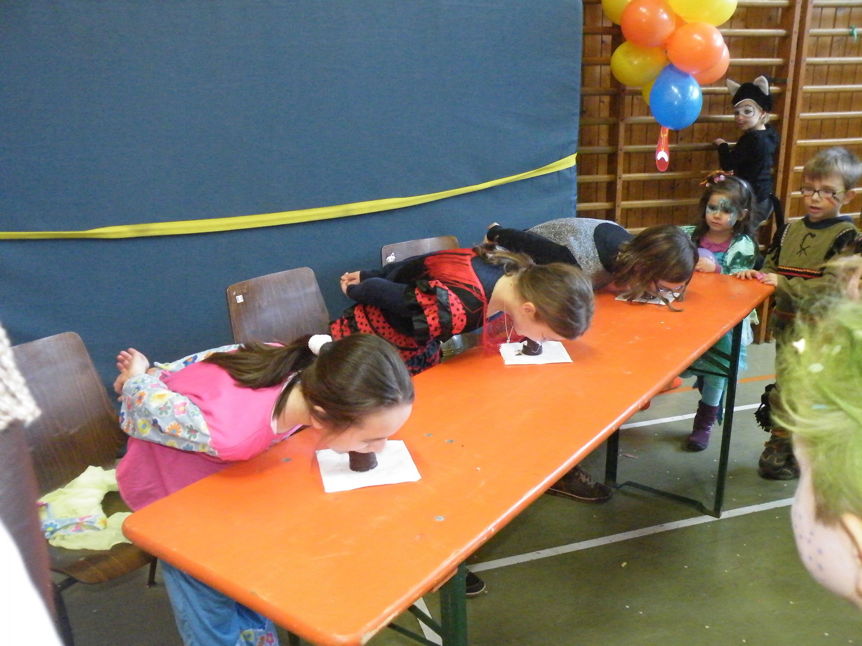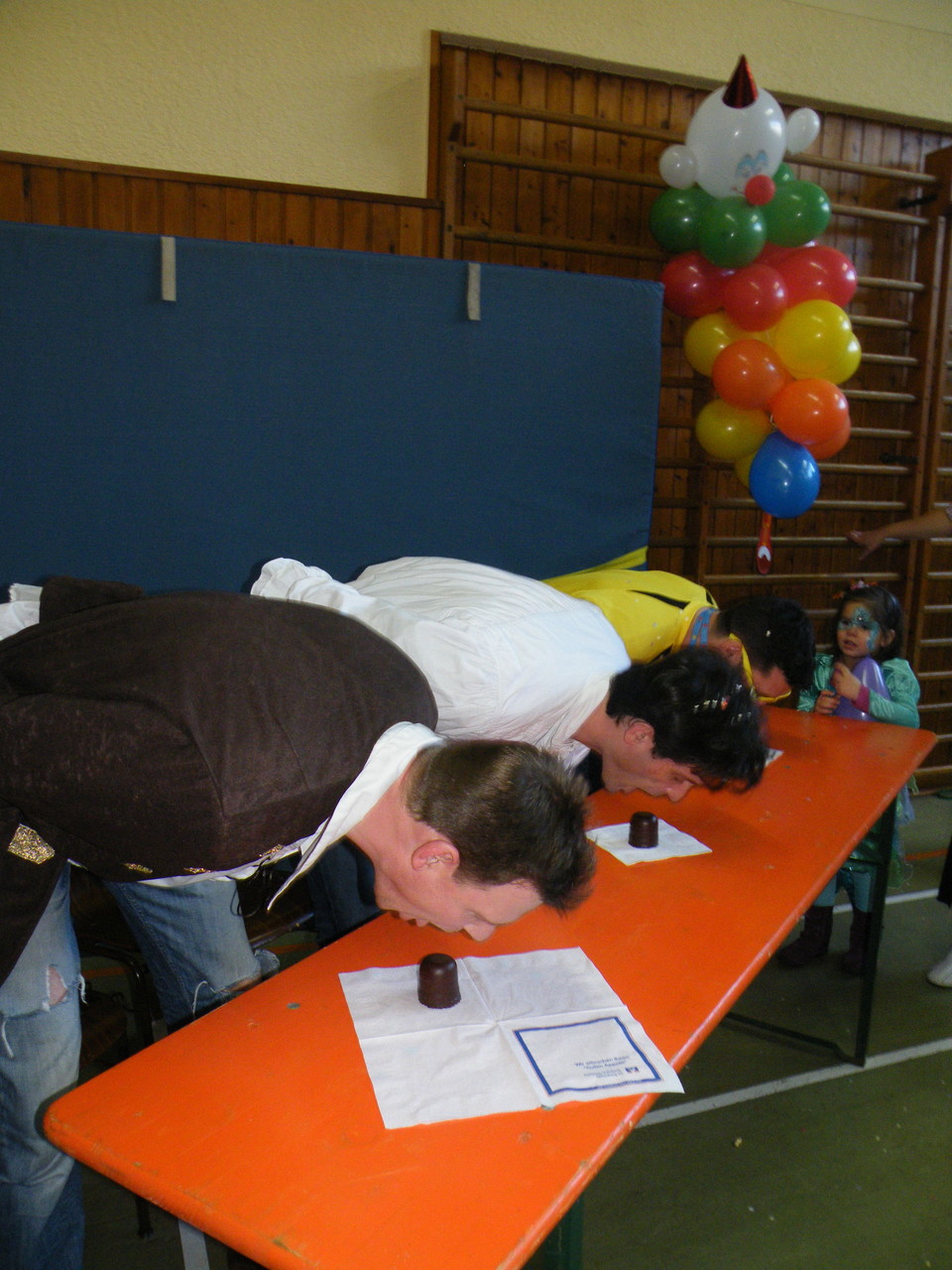 Weiter ging es mit Spielen für die kleinen Narren, wie z. B. Reise nach Jerusalem, Dreibein-Wettrennen, Mohrenkopf-Essen und Mandalas ausmalen. Auch die Eltern waren dieses Jahr gefragt und durften am Dreibein-Wettrennen und am Mohrenkopf-Essen teilnehmen. Bei beiden Wettkämpfen konnte man sehen, dass vieles nicht so einfach ist, wie es scheint. So ein Mohrenkopf kann schon eine ganz schön klebrige Angelegenheit sein. Mit Spiel und Spaß ging der Nachmittag schnell vorbei und die fleißigen Helfer konnten so gegen 17:00 Uhr mit dem Aufräumen beginnen.