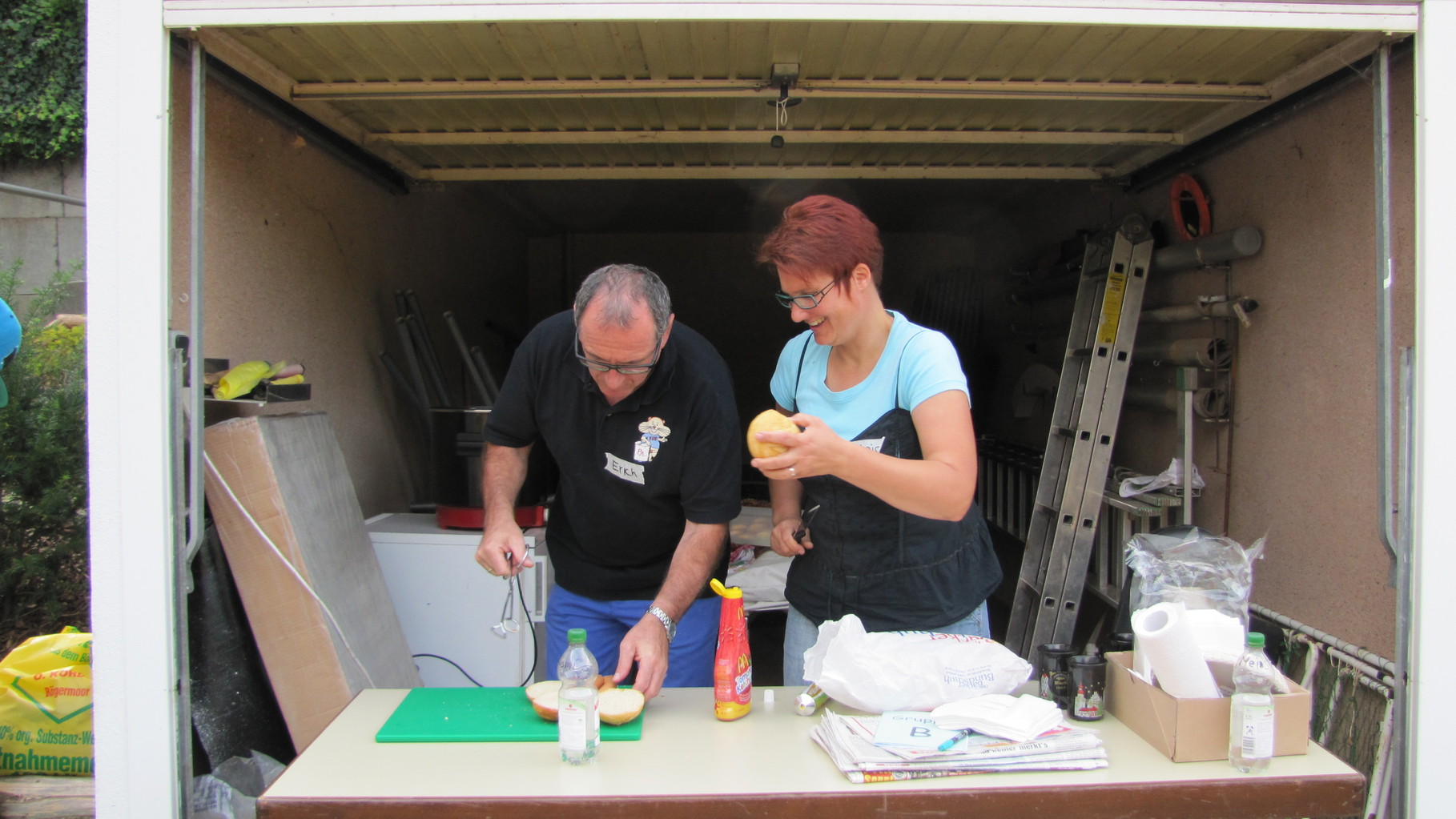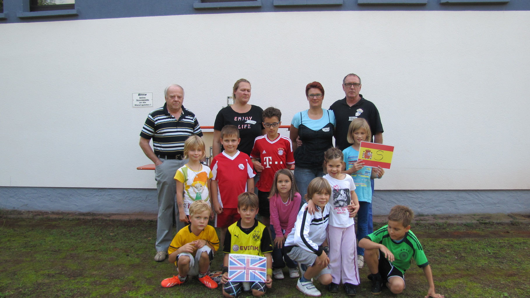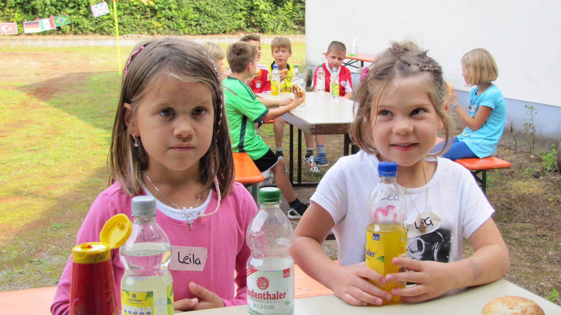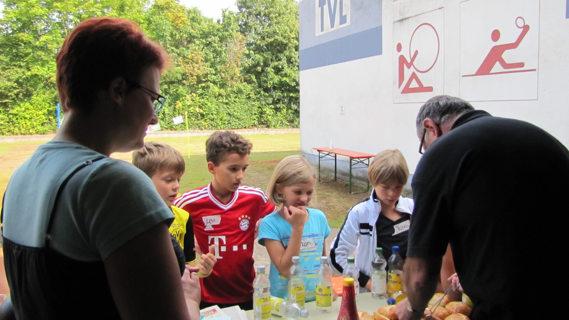 Nach einer kleinen Stärkung mit Wienerle im Brötchen wurden die Spiele bei wunderbarem Sonnenschein im Freien weitergeführt. Becherabschießen mit Wasserspritzpistolen, „Speerwerfen“, ein Länderspiel und Gesellschafts-Ballspiele standen auf dem Programm.