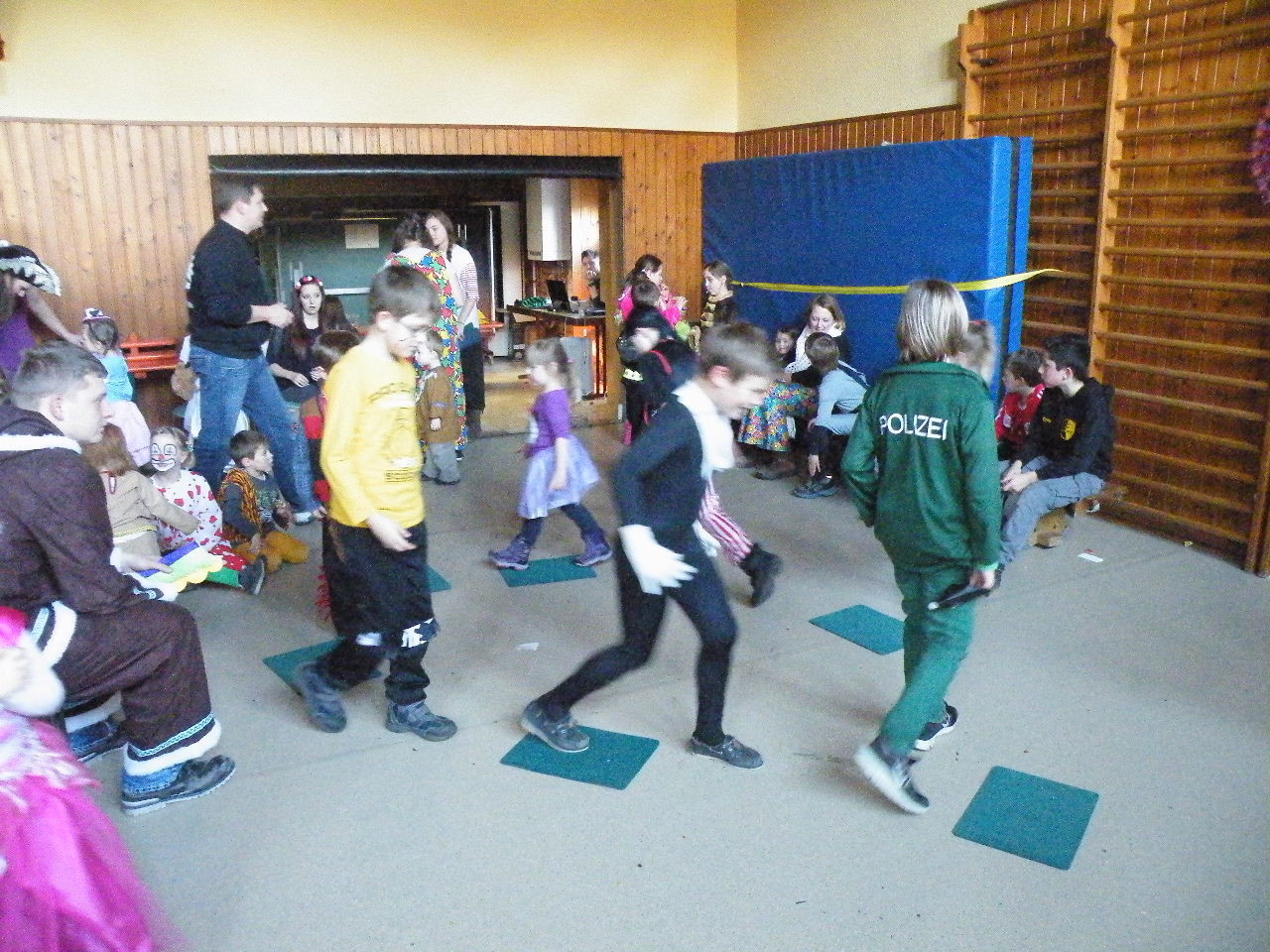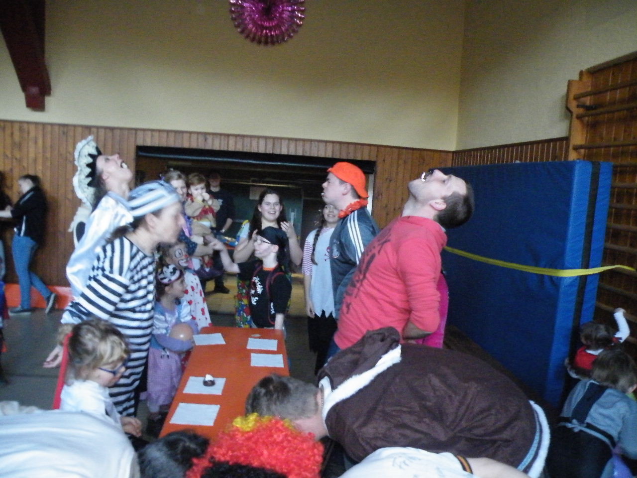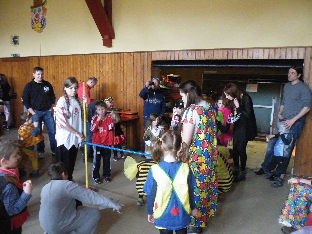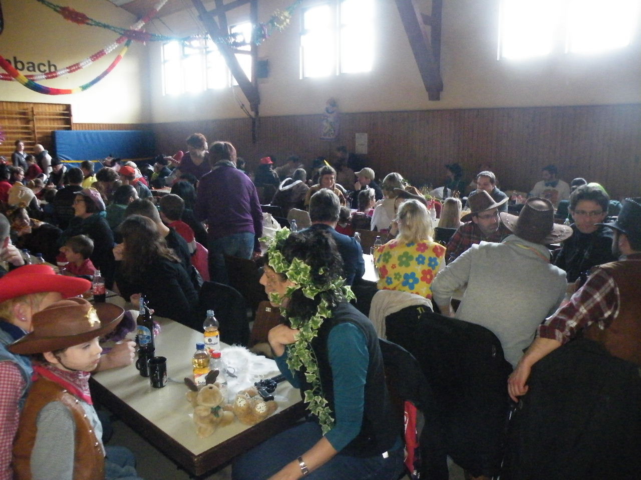 Wie immer gab es in der Turnhalle viel Gedränge und kleinere „Staus“ bis alle einen Platz gefunden hatten. Aufgrund der großen Besucherzahl mussten sogar Stühle aus dem Versammlungszimmer geholt werden und Brauereigarnituren aus der Garage. Kaum hatte jeder einen Platz ergattert, bildete sich die erste Schlange an der Essensausgabe und auch die beiden fleißigen Bedienungen konnten sich über Arbeitsmangel nicht beklagen. Wie jedes Jahr relativierte sich der Sitzplatzmangel spätestens dann, als die Kinder ihren ersten Durst gestillt hatten, durch die Halle tobten und die Spiele anfingen: Limbo, Reise nach Jerusalem (für Mamas, Papas und Kinder getrennt) und Mohrenkopfessen. Besonders Mohrenkopfessen musste insgesamt in vier Durchgängen gespielt werden (davon auch eine Mama/Papa-Runde), was natürlich dazu führte, dass die Anzahl an verschiedenen Spielen gering war. Zeitgleich mit der Reise nach Jerusalem für Papas und Mamas gab es eine kleine Polonaise, die aber nicht so ganz in Schwung kam. Es lag vielleicht daran, dass sie immer dann stehen blieb, wenn die Musik bei der Jerusalem-Reise stoppte. Fehlen durfte natürlich nicht das Schätzspiel, das schon Tradition beim Kinderfasching hat. Dieses Jahr waren die Hausfrauen bzw. Hausmänner gefragt. Wie viele Wäscheklammern passen in ein Wäschenetz? Die ersten Fünf erhielten jeweils einen Gutschein – gestiftet von der Pizzeria Dalla Casa in Laudenbach – für eine Pizza nach Wahl. Auf eine Pizza bei Pappu freuen können sich: Romi Seitz, Katharina Ziegler, Hannah Becker, Mia Rohleder und Jule Rohleder. Von hier aus jetzt schon mal guten Appetit und ein großes Dankeschön an Pappu für die Spende.