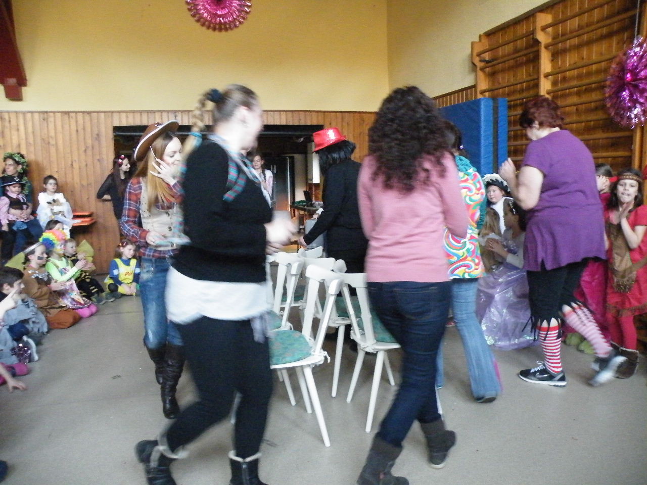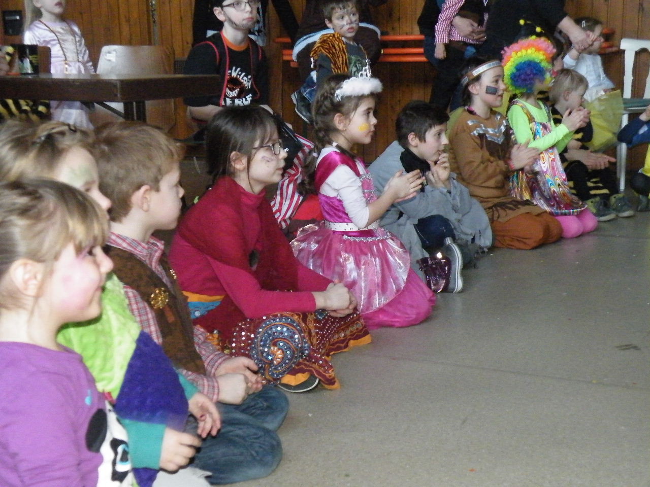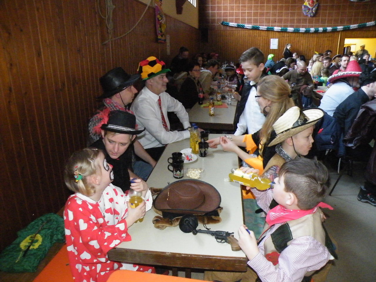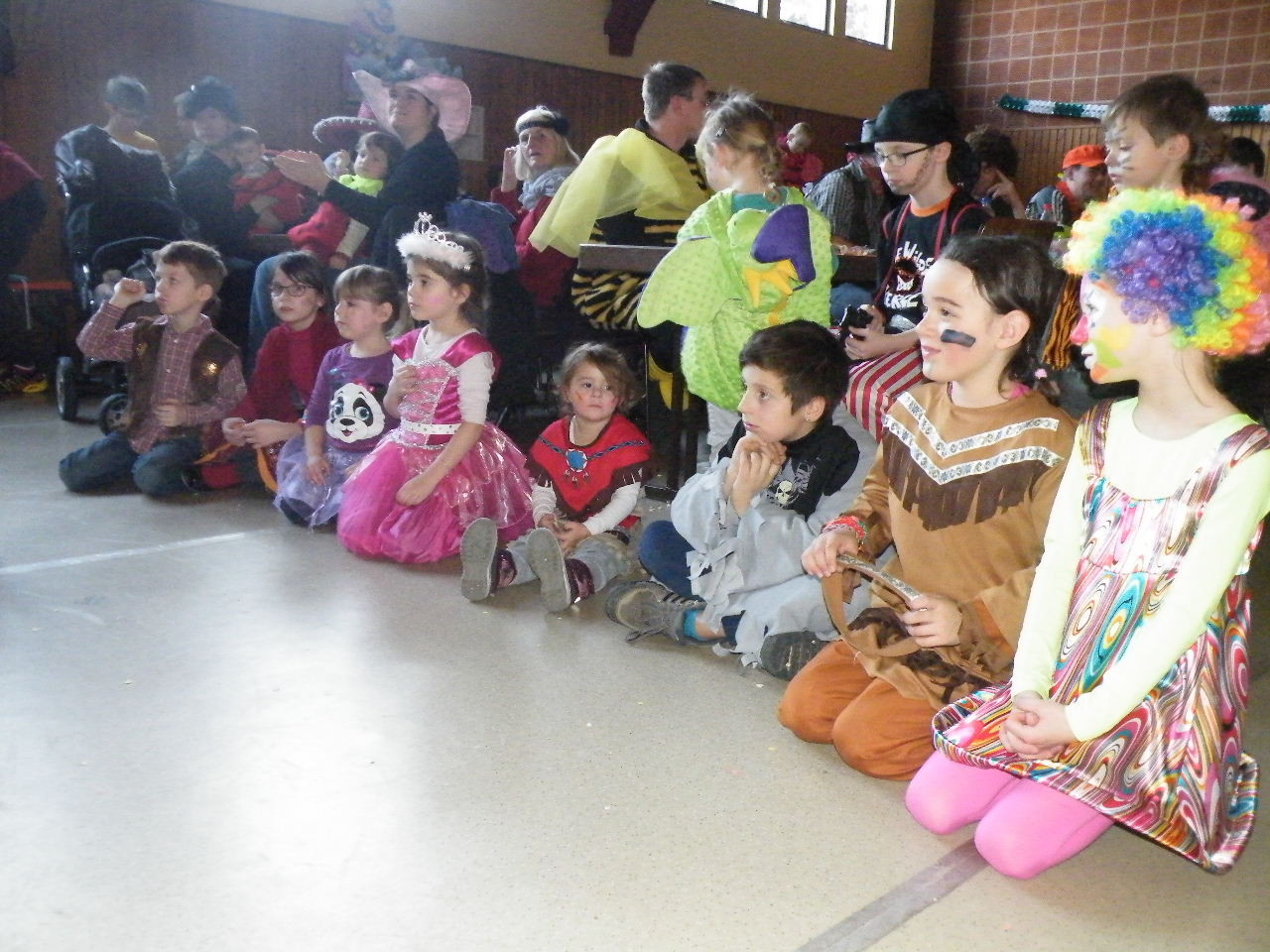 Wie immer gab es in der Turnhalle viel Gedränge und kleinere „Staus“ bis alle einen Platz gefunden hatten. Aufgrund der großen Besucherzahl mussten sogar Stühle aus dem Versammlungszimmer geholt werden und Brauereigarnituren aus der Garage. Kaum hatte jeder einen Platz ergattert, bildete sich die erste Schlange an der Essensausgabe und auch die beiden fleißigen Bedienungen konnten sich über Arbeitsmangel nicht beklagen. Wie jedes Jahr relativierte sich der Sitzplatzmangel spätestens dann, als die Kinder ihren ersten Durst gestillt hatten, durch die Halle tobten und die Spiele anfingen: Limbo, Reise nach Jerusalem (für Mamas, Papas und Kinder getrennt) und Mohrenkopfessen. Besonders Mohrenkopfessen musste insgesamt in vier Durchgängen gespielt werden (davon auch eine Mama/Papa-Runde), was natürlich dazu führte, dass die Anzahl an verschiedenen Spielen gering war. Zeitgleich mit der Reise nach Jerusalem für Papas und Mamas gab es eine kleine Polonaise, die aber nicht so ganz in Schwung kam. Es lag vielleicht daran, dass sie immer dann stehen blieb, wenn die Musik bei der Jerusalem-Reise stoppte. Fehlen durfte natürlich nicht das Schätzspiel, das schon Tradition beim Kinderfasching hat. Dieses Jahr waren die Hausfrauen bzw. Hausmänner gefragt. Wie viele Wäscheklammern passen in ein Wäschenetz? Die ersten Fünf erhielten jeweils einen Gutschein – gestiftet von der Pizzeria Dalla Casa in Laudenbach – für eine Pizza nach Wahl. Auf eine Pizza bei Pappu freuen können sich: Romi Seitz, Katharina Ziegler, Hannah Becker, Mia Rohleder und Jule Rohleder. Von hier aus jetzt schon mal guten Appetit und ein großes Dankeschön an Pappu für die Spende.