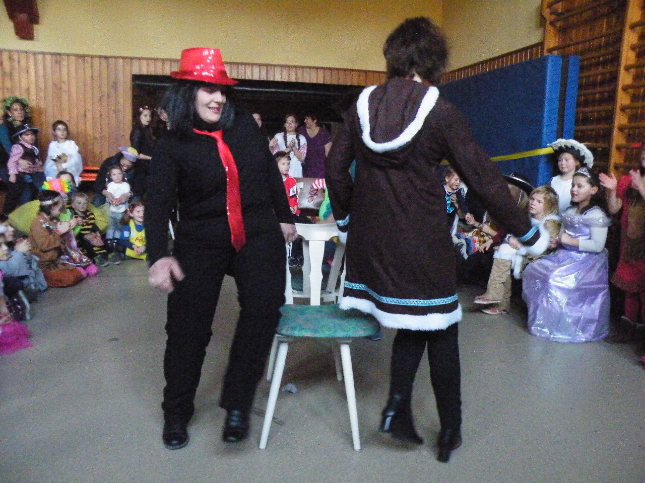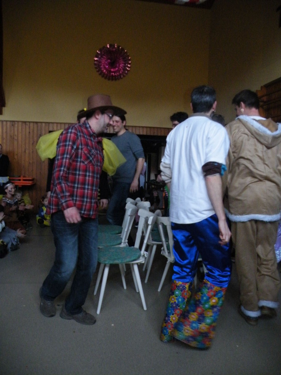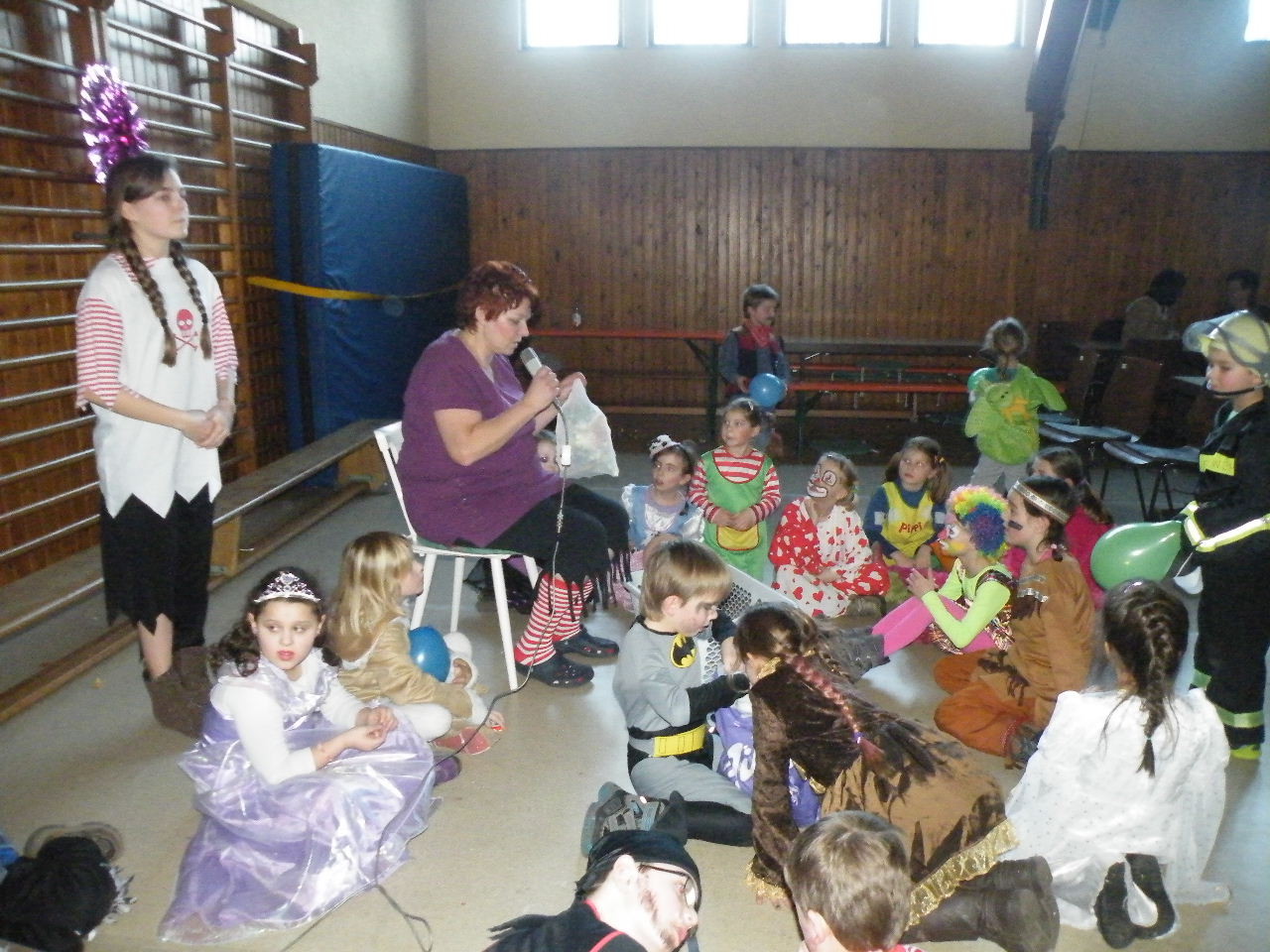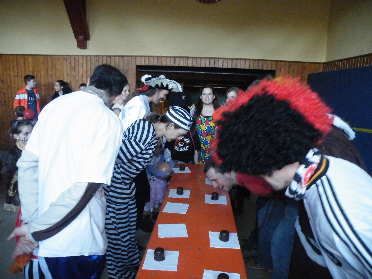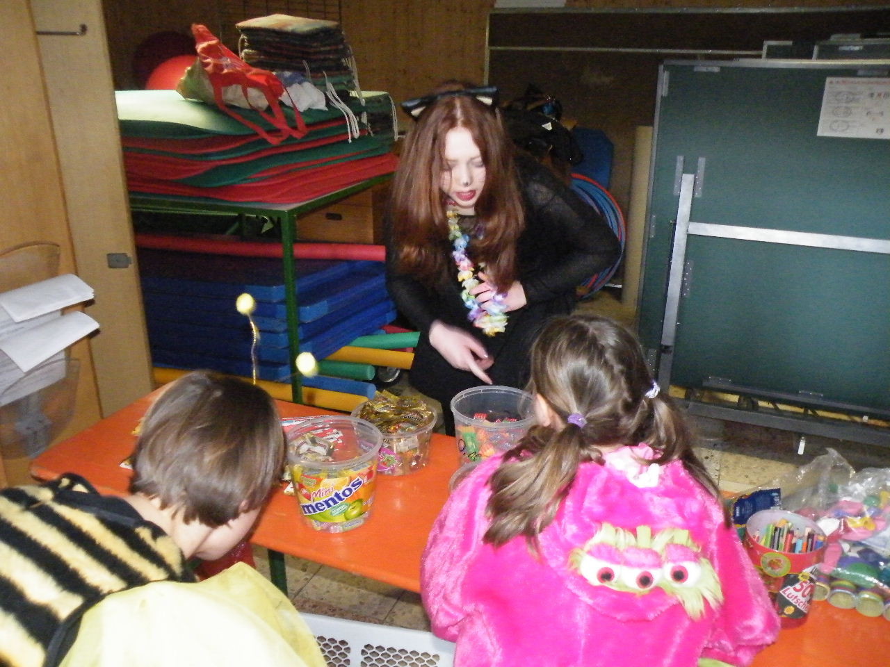 Wie immer gab es in der Turnhalle viel Gedränge und kleinere „Staus“ bis alle einen Platz gefunden hatten. Aufgrund der großen Besucherzahl mussten sogar Stühle aus dem Versammlungszimmer geholt werden und Brauereigarnituren aus der Garage. Kaum hatte jeder einen Platz ergattert, bildete sich die erste Schlange an der Essensausgabe und auch die beiden fleißigen Bedienungen konnten sich über Arbeitsmangel nicht beklagen. Wie jedes Jahr relativierte sich der Sitzplatzmangel spätestens dann, als die Kinder ihren ersten Durst gestillt hatten, durch die Halle tobten und die Spiele anfingen: Limbo, Reise nach Jerusalem (für Mamas, Papas und Kinder getrennt) und Mohrenkopfessen. Besonders Mohrenkopfessen musste insgesamt in vier Durchgängen gespielt werden (davon auch eine Mama/Papa-Runde), was natürlich dazu führte, dass die Anzahl an verschiedenen Spielen gering war. Zeitgleich mit der Reise nach Jerusalem für Papas und Mamas gab es eine kleine Polonaise, die aber nicht so ganz in Schwung kam. Es lag vielleicht daran, dass sie immer dann stehen blieb, wenn die Musik bei der Jerusalem-Reise stoppte. Fehlen durfte natürlich nicht das Schätzspiel, das schon Tradition beim Kinderfasching hat. Dieses Jahr waren die Hausfrauen bzw. Hausmänner gefragt. Wie viele Wäscheklammern passen in ein Wäschenetz? Die ersten Fünf erhielten jeweils einen Gutschein – gestiftet von der Pizzeria Dalla Casa in Laudenbach – für eine Pizza nach Wahl. Auf eine Pizza bei Pappu freuen können sich: Romi Seitz, Katharina Ziegler, Hannah Becker, Mia Rohleder und Jule Rohleder. Von hier aus jetzt schon mal guten Appetit und ein großes Dankeschön an Pappu für die Spende.
