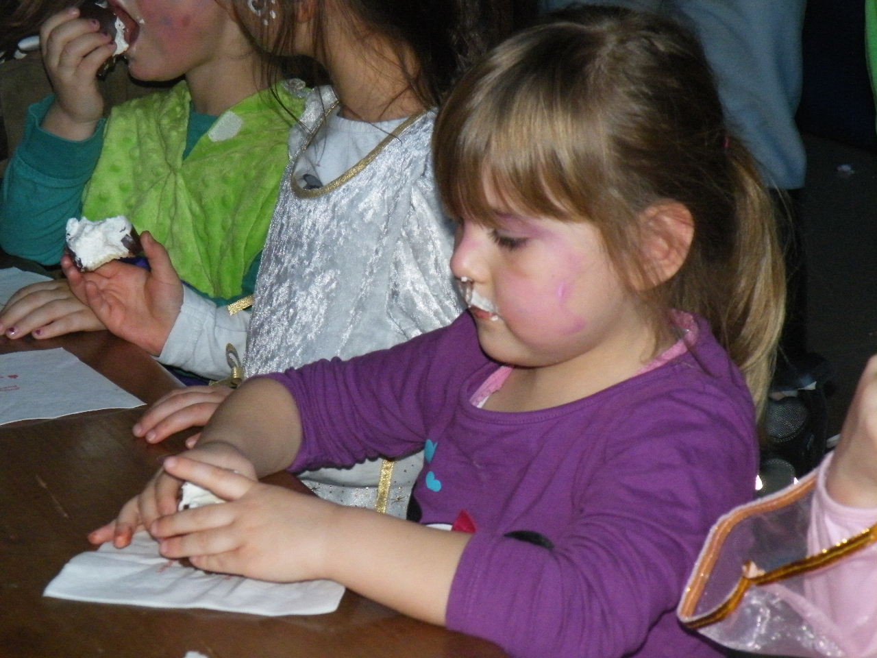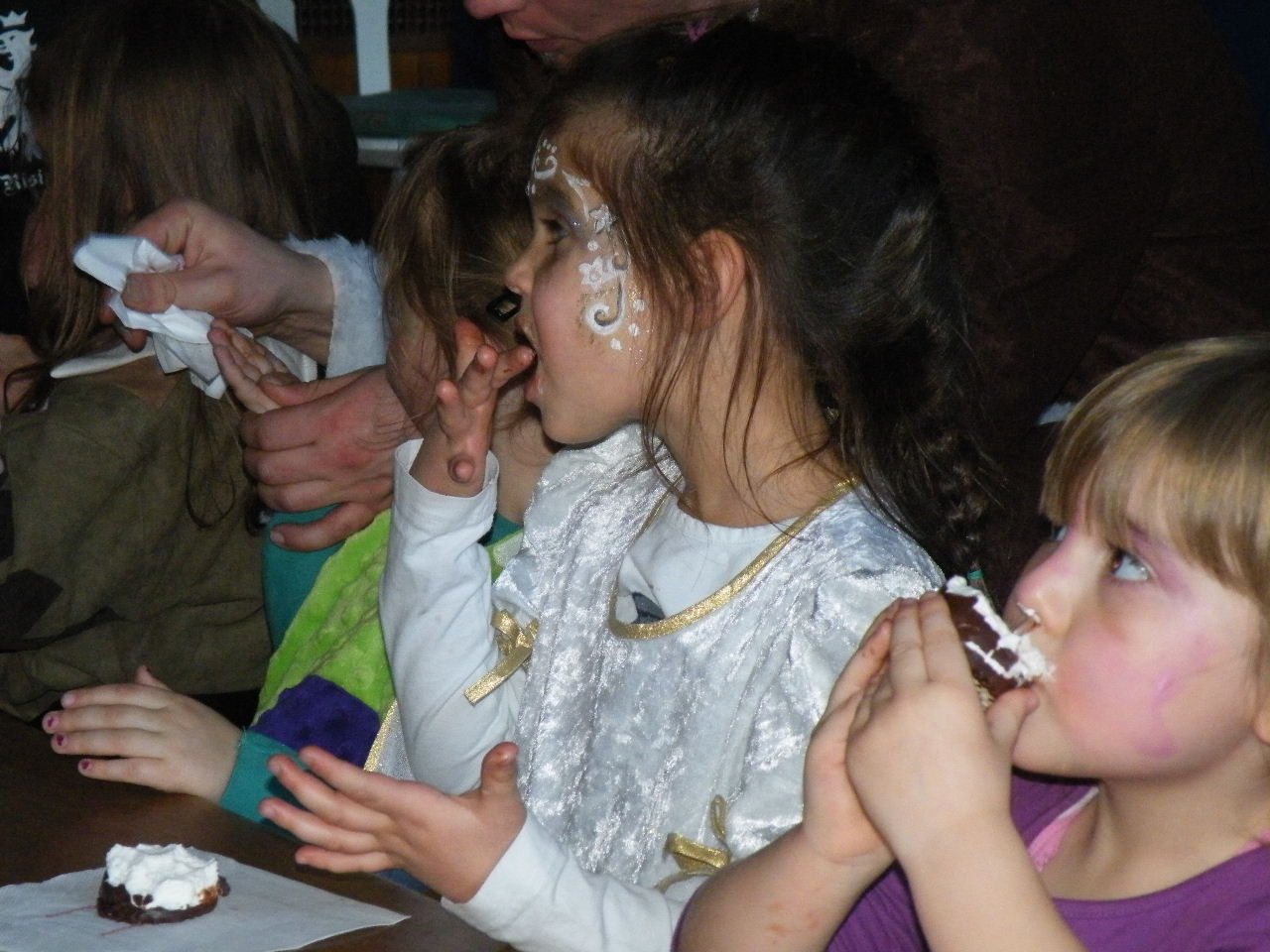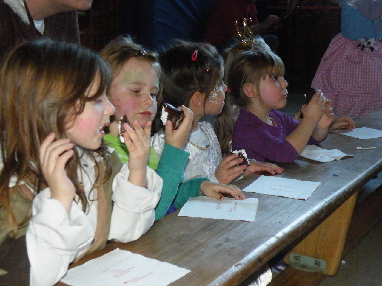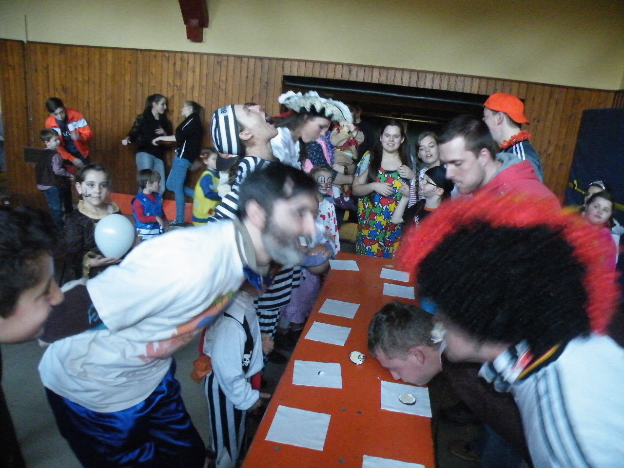 Wie immer gab es in der Turnhalle viel Gedränge und kleinere „Staus“ bis alle einen Platz gefunden hatten. Aufgrund der großen Besucherzahl mussten sogar Stühle aus dem Versammlungszimmer geholt werden und Brauereigarnituren aus der Garage. Kaum hatte jeder einen Platz ergattert, bildete sich die erste Schlange an der Essensausgabe und auch die beiden fleißigen Bedienungen konnten sich über Arbeitsmangel nicht beklagen. Wie jedes Jahr relativierte sich der Sitzplatzmangel spätestens dann, als die Kinder ihren ersten Durst gestillt hatten, durch die Halle tobten und die Spiele anfingen: Limbo, Reise nach Jerusalem (für Mamas, Papas und Kinder getrennt) und Mohrenkopfessen. Besonders Mohrenkopfessen musste insgesamt in vier Durchgängen gespielt werden (davon auch eine Mama/Papa-Runde), was natürlich dazu führte, dass die Anzahl an verschiedenen Spielen gering war. Zeitgleich mit der Reise nach Jerusalem für Papas und Mamas gab es eine kleine Polonaise, die aber nicht so ganz in Schwung kam. Es lag vielleicht daran, dass sie immer dann stehen blieb, wenn die Musik bei der Jerusalem-Reise stoppte. Fehlen durfte natürlich nicht das Schätzspiel, das schon Tradition beim Kinderfasching hat. Dieses Jahr waren die Hausfrauen bzw. Hausmänner gefragt. Wie viele Wäscheklammern passen in ein Wäschenetz? Die ersten Fünf erhielten jeweils einen Gutschein – gestiftet von der Pizzeria Dalla Casa in Laudenbach – für eine Pizza nach Wahl. Auf eine Pizza bei Pappu freuen können sich: Romi Seitz, Katharina Ziegler, Hannah Becker, Mia Rohleder und Jule Rohleder. Von hier aus jetzt schon mal guten Appetit und ein großes Dankeschön an Pappu für die Spende.