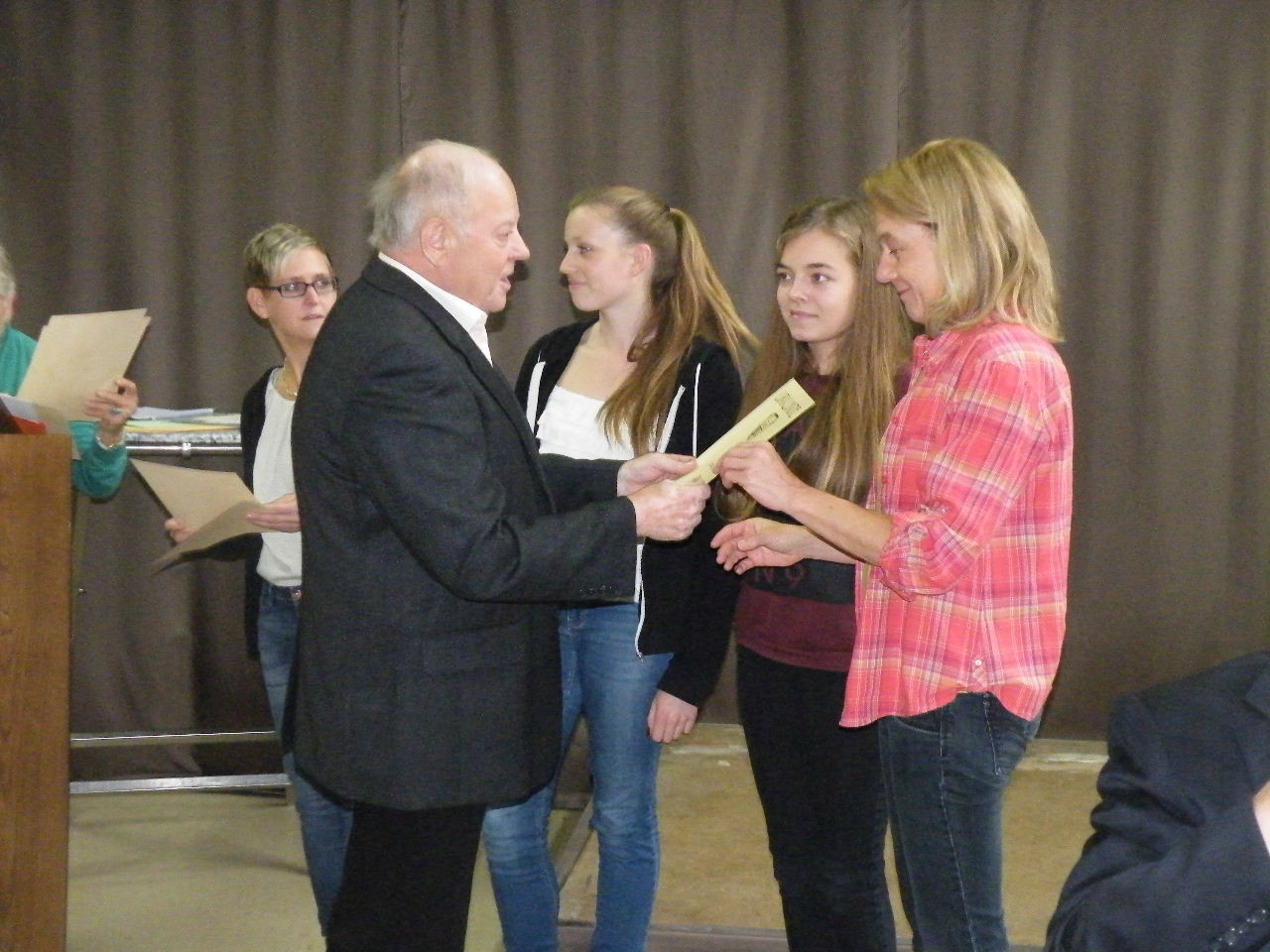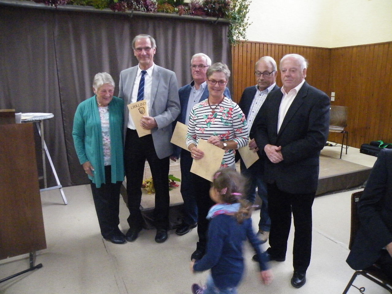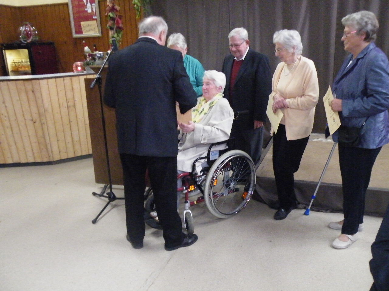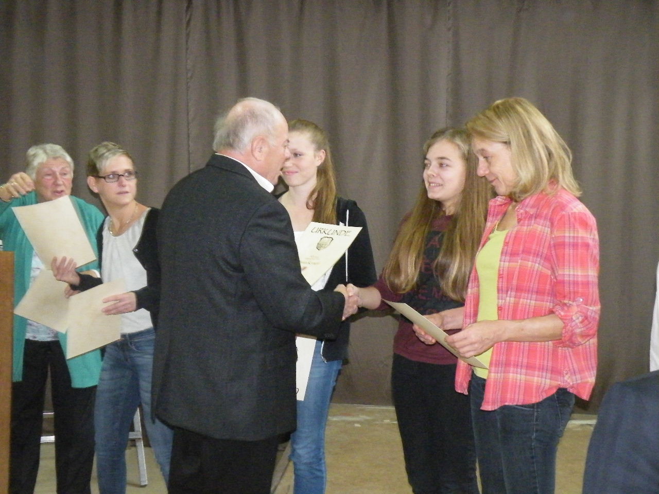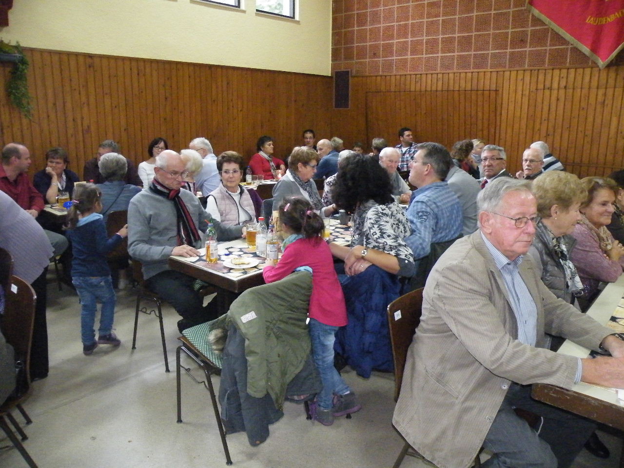 Mit Spannung wurde der Sonntag erwartet, da in diesem Jahr das Sonntagsprogramm auf den ganzen Tag erweitert wurde. Trotz des vollen Programms war zur Mittagszeit die Halle wie gewohnt besetzt und aus den Fehlern des letzten Jahres haben die Verantwortlichen gelernt. Wohl niemand musste in diesem Jahr ohne Mittagessen wieder gehen. Im Anschluss an das Mittagessen war Zeit für einen gemütlichen Plausch bei Kaffee und Kuchen, bis der Laudenbacher Kinderchor „Lollipops“ die anwesenden Gäste unterhielt. Danach begann der – durch Familie Schlowak musikalisch umrahmte - Ehrennachmittag mit der Begrüßungsrede durch den 1. Vorsitzenden Bernd Rohleder. Alfred Zenger gab einen kurzen Überblick über die Geschichte des Vereins und erinnerte an Vorstände, Übungsleiter und Familien, die den Verein über 90 Jahre begleitet haben. Turngauvorsitzender Horst Heuß sprach in seiner Rede von Freud und Leid des Ehrenamtes, ließ aber durchklingen, dass die Freude dabei überwiegt. Ebenfalls Grußworte und Geschenke für den Verein überbrachten Bürgermeister Bernd Klein und der diesjährige Sprecher der Ortsvereine, Michael Breitenbach (Musikverein Harmonie). Auch im Hinblick auf die bevorstehenden Neuwahlen im nächsten Jahr ermunterten die Redner vor allem die Jugend, sich für den Verein zu engagieren, um den Fortbestand zu sichern.