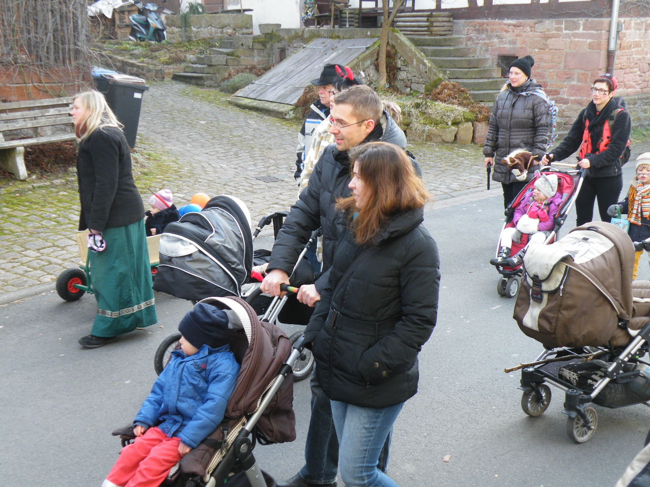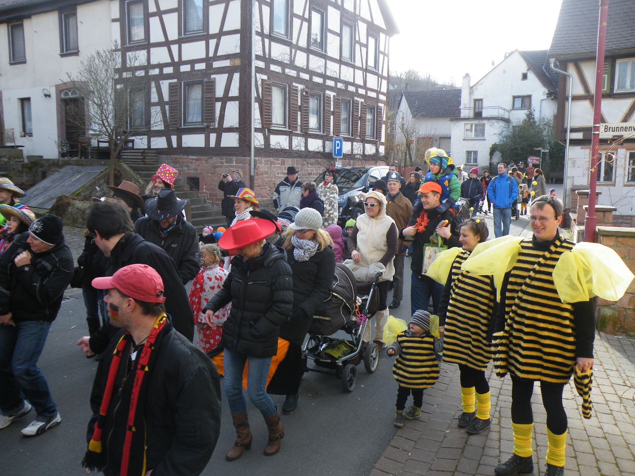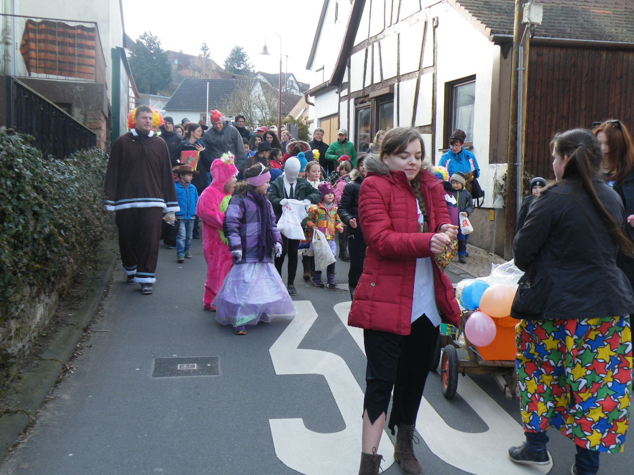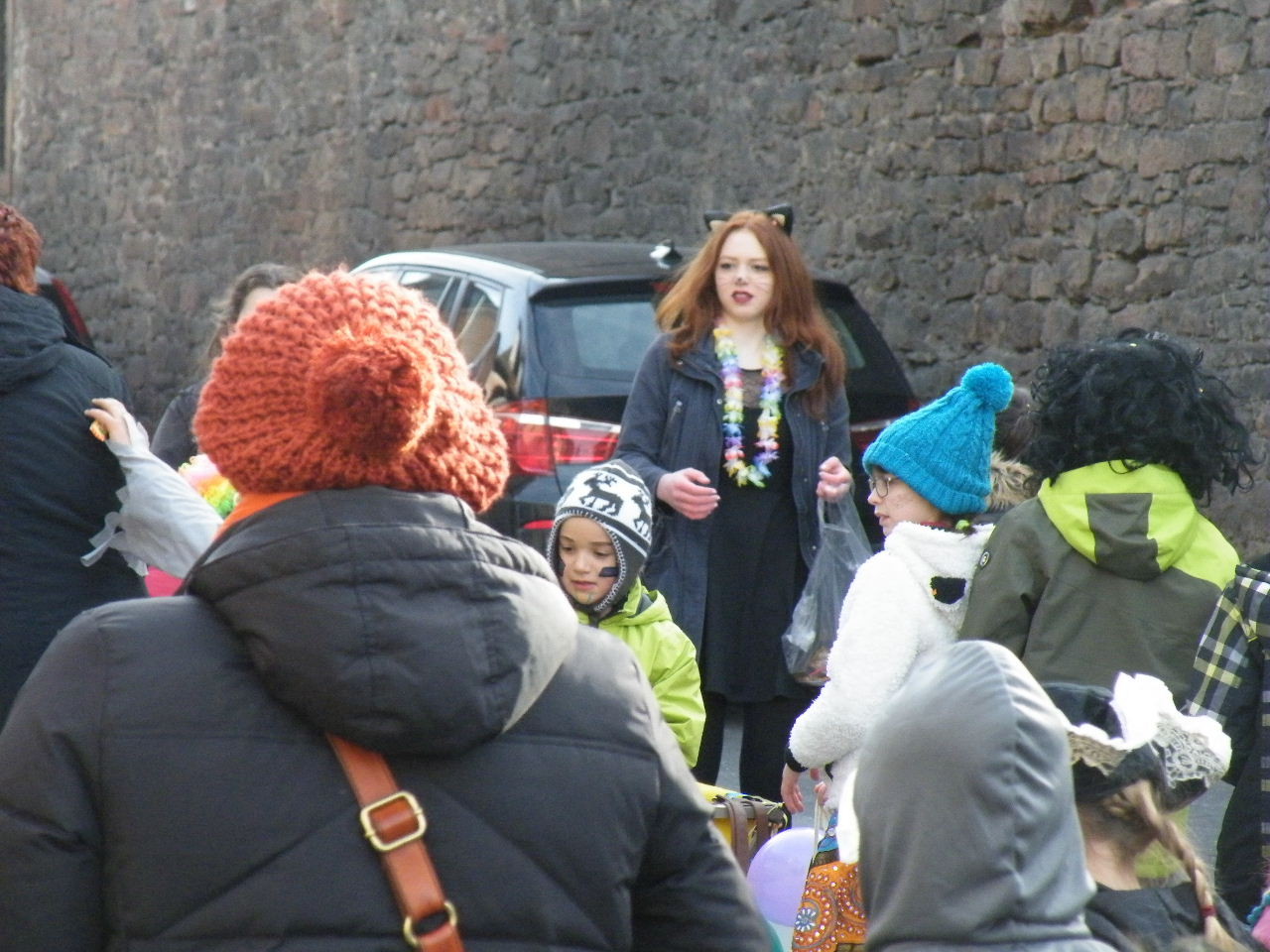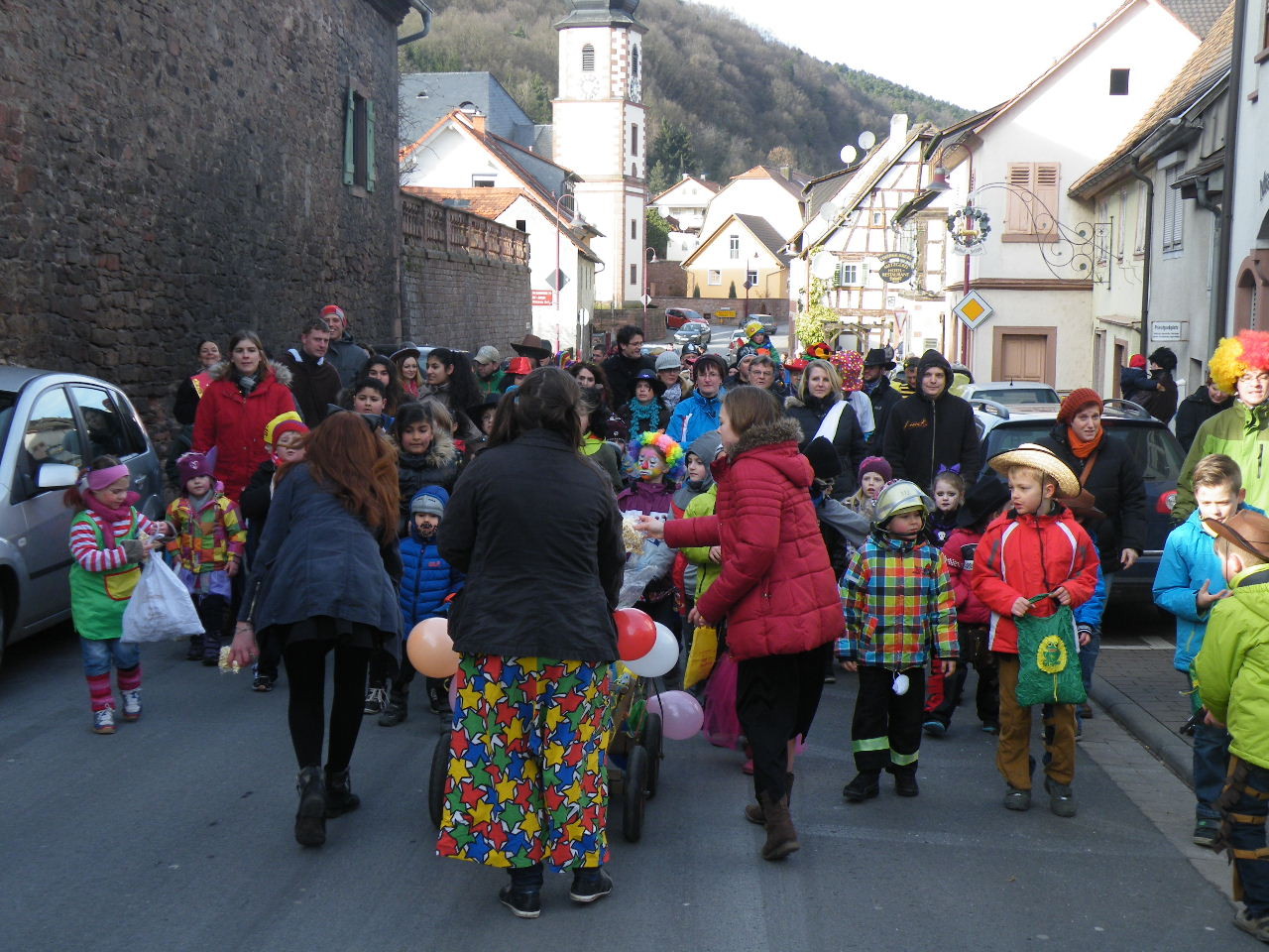 Trübe sah es aus am Morgen des 08.02.2015. Wolken, Wind und vereinzelte Schneeflocken ließen keine rechte Freude auf den Gaudiwurm aufkommen. Doch der Wettergott meinte es gut und bei Sonnenschein, blauem Himmel und angenehmer Temperatur startete der Gaudiwurm. Viele große und kleine Narren waren unterwegs von der Pötzl-Mühle zur Turnhalle. Auf dem Weg dorthin ging es nicht ganz so laut zu wie in den letzten Jahren, da leider die Technik streikte und auch Helau-Rufe nur vereinzelt zu hören waren. Aber Hauptsache, die Kinder hatten ihren Spaß beim Einsammeln der ausgeworfenen Süßigkeiten - auch von Zuschauern am Straßenrand.