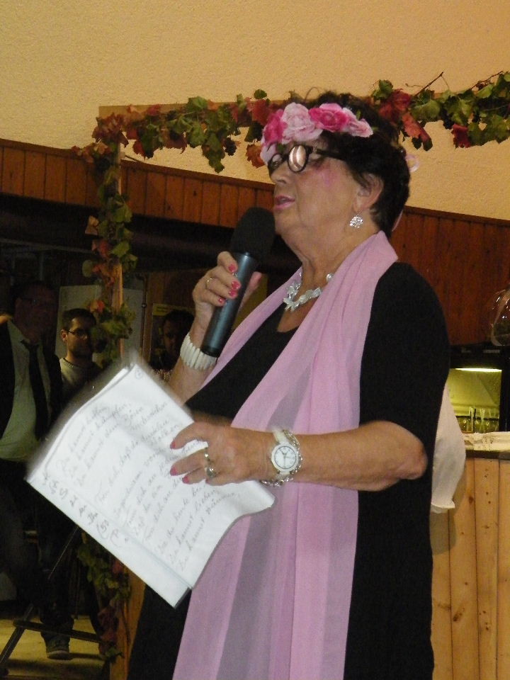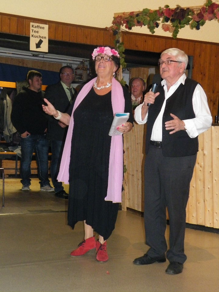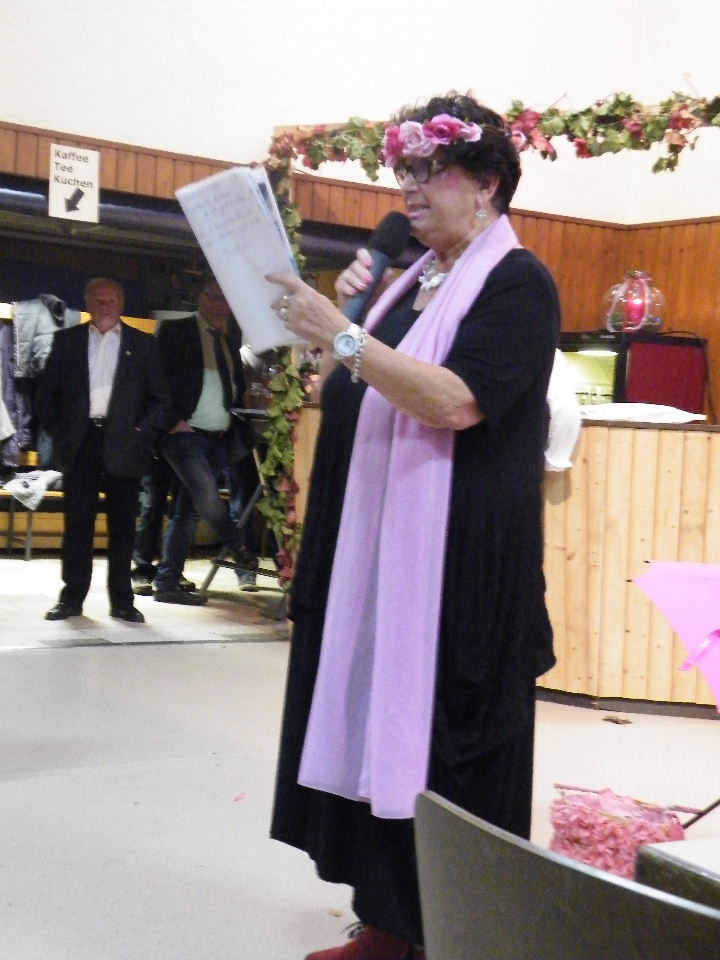 Zum Abschluss des Kerbwochenendes und Ehrennachmittags nahm die Kabarettistin Lore Hock die Besucher mit auf Reisen. Unterwegs mit Bus, Bahn und "Fliescher" unterhielt sie die Gäste im gemäßigten Waldaschaffer Dialekt mit Anekdoten aus ihrem Leben und ihren Reisen und hatte insbesondere für die anwesenden jungen Männer Tipps für eine erfolgreiche Ehe.
