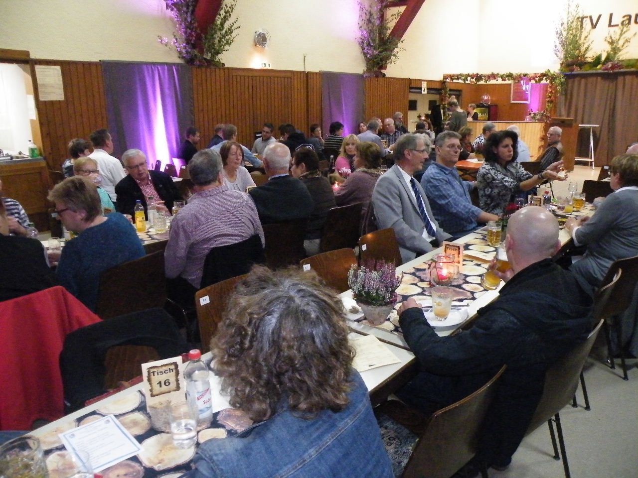 Die Idee, das 90jährige Bestehen des Turnvereins Laudenbach im Rahmen des Kerbwochenendes zu feiern hat sich bewährt. Der Außenbereich der Turnhalle war auch in diesem Jahr wieder mit Fackeln, Kerzenlicht und Lagerfeuer sehr stimmungsvoll und über den roten Teppich fanden viele Besucher den Weg in die herbstlich geschmückte Turnhalle.