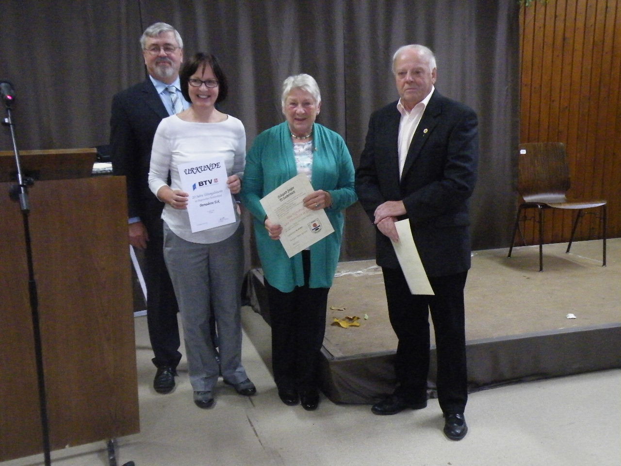 Für besondere Verdienste und lange Jahre Vereinsarbeit erhielten Bernd Rohleder und Hildegard Ziegler die Gau-Ehrennadel in Gold, Bernadette Eck wurde für 20 Jahre Übungsleitertätigkeit gewürdigt.